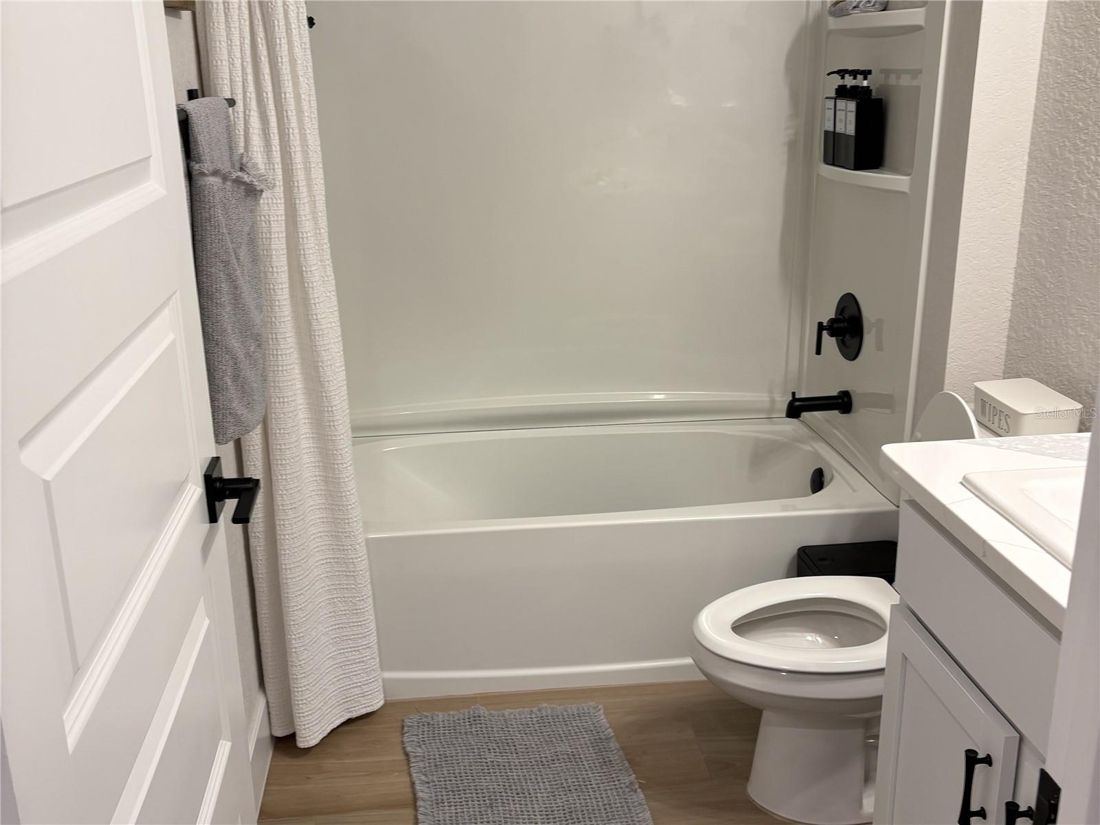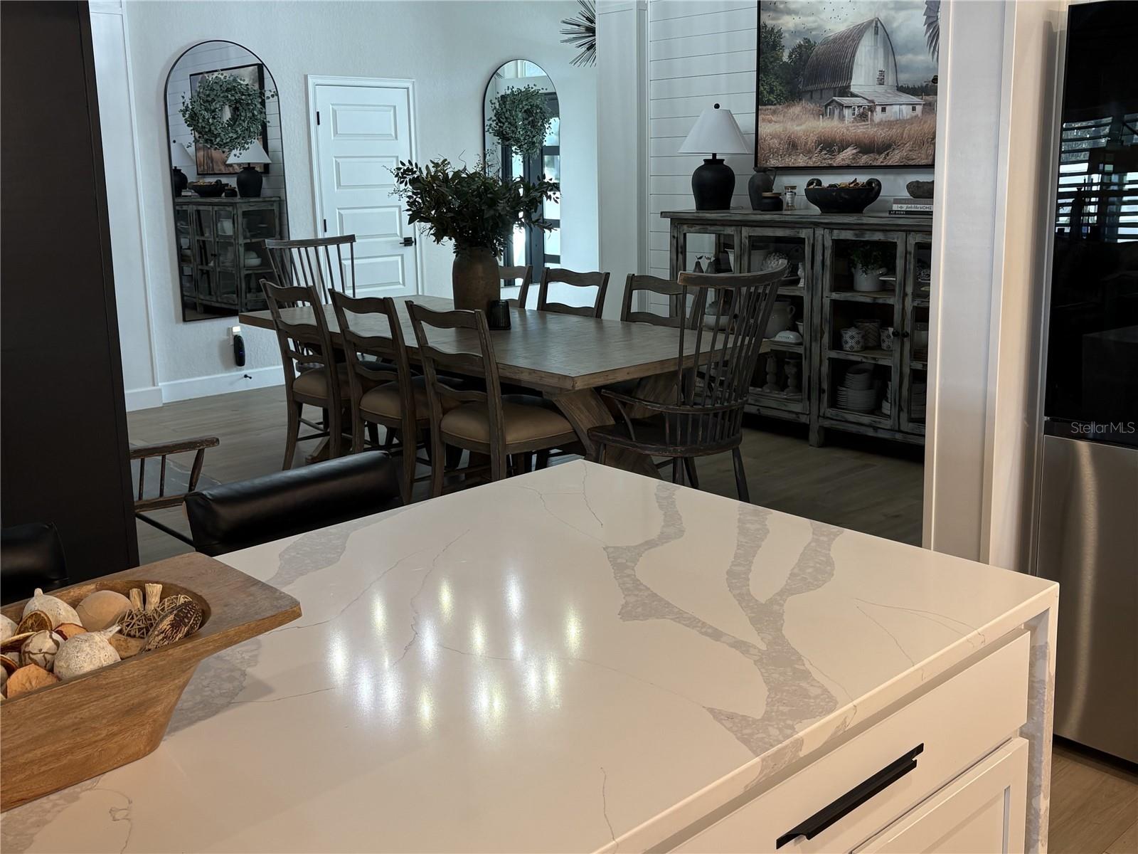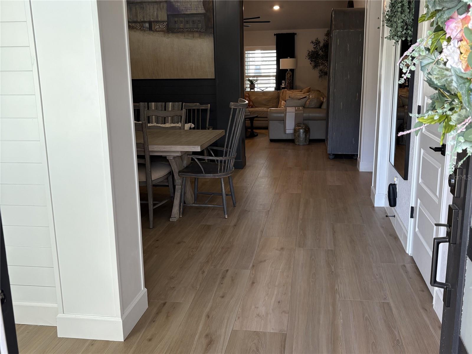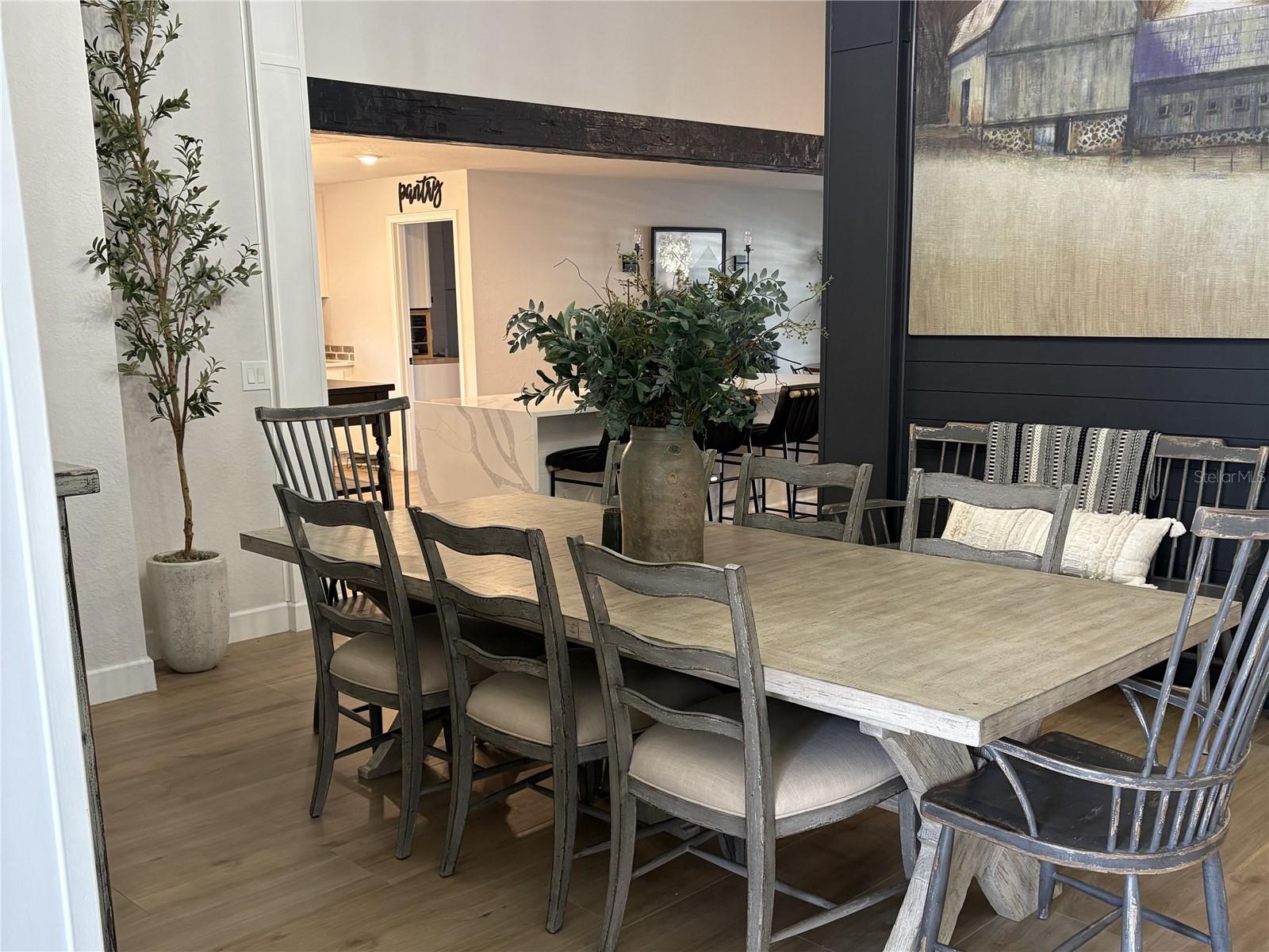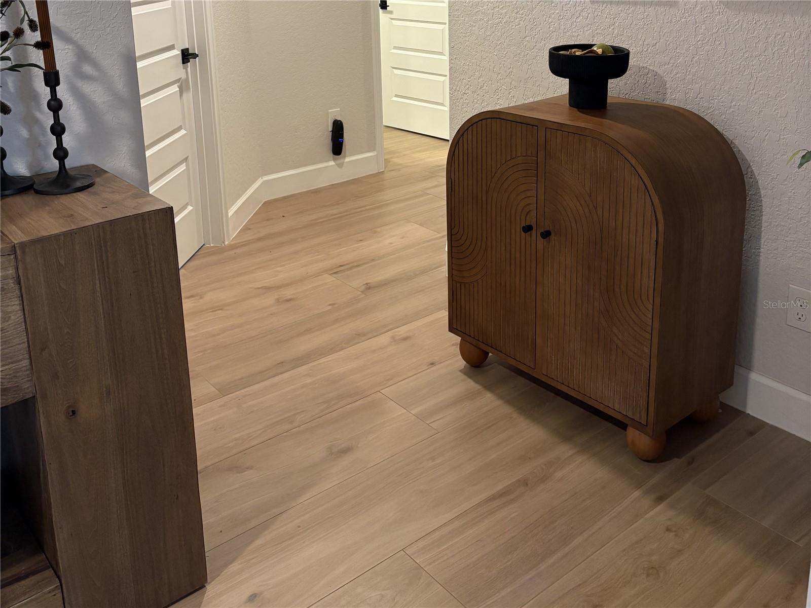 Absolutely spectacular 2-year-new pool home with extensive custom upgrades! This stunning residence offers approximately 3,000 sq ft of living space with 4 bedrooms plus an office, 3 full bathrooms, and a 2-car garage, all situated on over a half-acre lot with NO HOA or CDD fees. Luxury finishes abound, including 12x60 wood-look tile flooring throughout and custom window treatments on every window. The family and dining rooms feature soaring 13-foot vaulted ceilings and an electric fireplace, creating a dramatic yet inviting living space. The open-concept kitchen is a showstopper, showcasing quartz countertops, black hardware, brick backsplash, floating shelves, a 36” freestanding stove, and a pot filler. Adjacent to the kitchen is a large walk-in pantry with added cabinetry, providing additional storage. The spacious primary suite offers a true retreat with multiple walk-in closets, an electric fireplace, and a coffered ceiling. The ensuite bathroom features a soaking tub, separate shower, dual sinks, and a dedicated vanity area. The office boasts 10-foot ceilings and beautiful green cabinetry, perfect for working from home. Three additional generously sized bedrooms and two additional full bathrooms complete the interior. Outdoor living is just as impressive, featuring a 15x30 screened-in pool surrounded by pavers and a covered lanai ideal for outdoor dining and entertaining. The fully fenced and landscaped backyard, offering privacy and tranquility. This exceptional home combines modern luxury, thoughtful design, and outdoor living - a rare opportunity with no HOA or CDD.