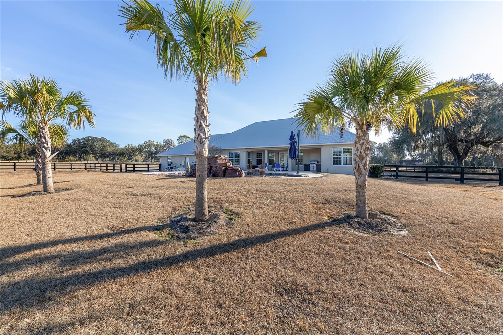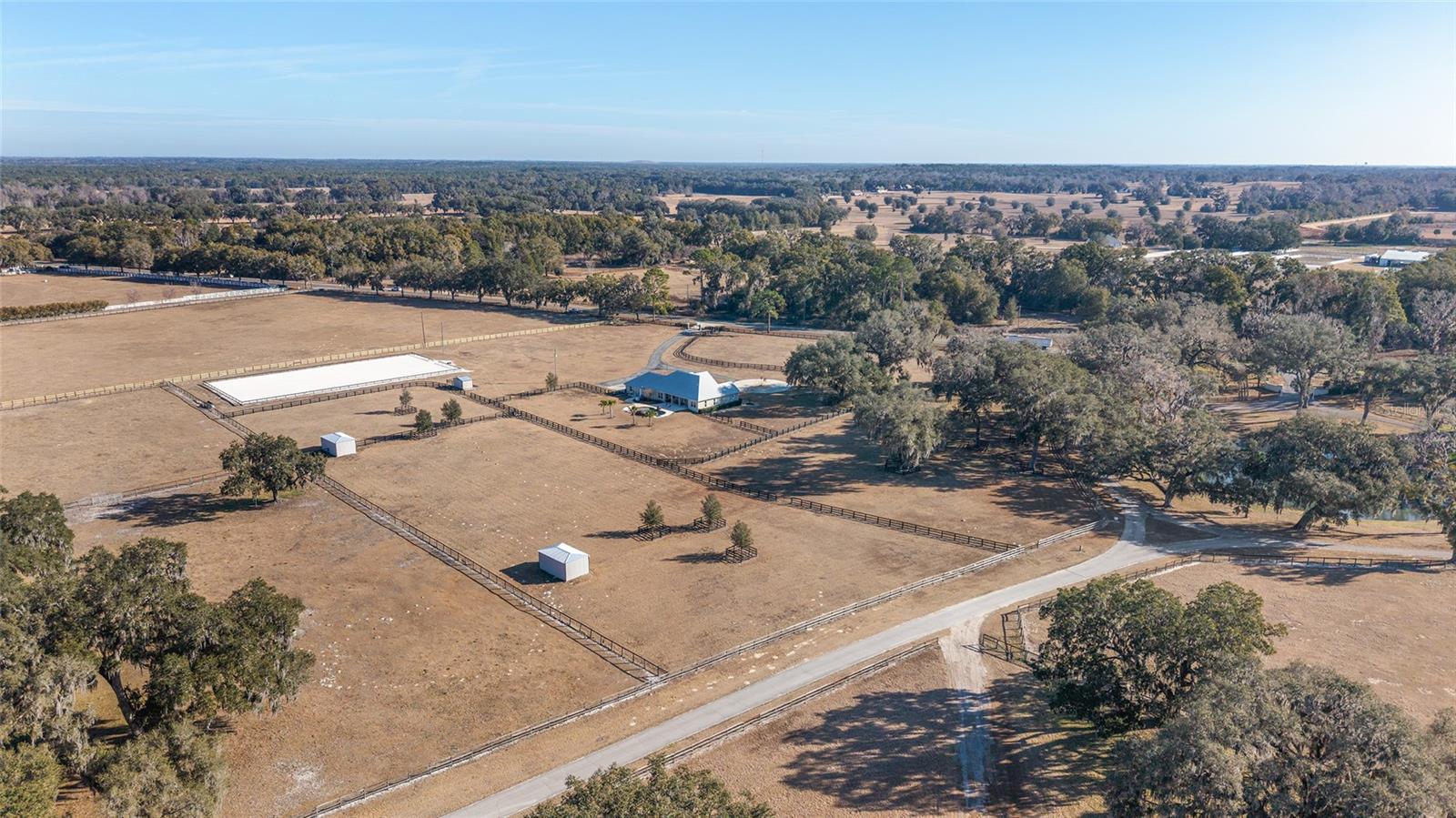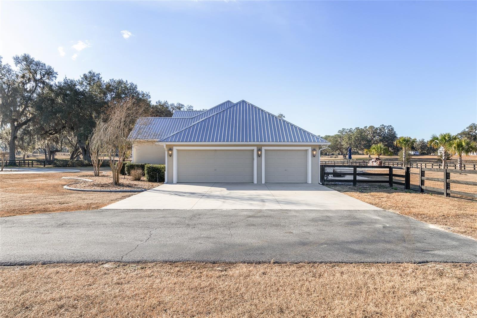 One or more photo(s) has been virtually staged. DEEDED ACCESS TO THE FLORIDA GREENWAYS & TRAILS — Ride directly to the Florida Horse Park from your own backyard! Welcome to over 10 pristine acres in the heart of Ocala’s premier horse country, where luxury living meets exceptional equestrian functionality. Privately tucked behind a custom electric gate and winding drive, this stunning 2016 custom-built estate offers privacy, beauty, and purpose at every turn. A circular driveway and side-entry 3-car garage create an impressive arrival and provide ample space for vehicles, equipment, or recreational storage. Inside the 4-bedroom, 3.5-bath home (2,804 SF), soaring cathedral ceilings, exposed wood beams, hardwood floors, and a dramatic floor-to-ceiling stacked stone gas fireplace anchor the open split-bedroom floor plan. Expansive windows flood the home with natural light and frame sweeping views of your countryside. The chef’s kitchen features stainless steel appliances, custom wood cabinetry, generous counter space, a center island, pantry, and breakfast nook — designed for both entertaining and everyday comfort. The primary suite is a private retreat with two large walk-in closets and a spa-inspired bath offering dual vanities, walk-in shower, and soaking garden tub. Outdoor living shines with a covered lanai complete with summer kitchen and built-in fire pit — perfect for gatherings after a day of riding. The heated saltwater pool and spa with waterfall and self-cleaning system (installed 2024) create a true resort-style setting overlooking the farm. Recent Equestrian Improvements: • 100’ x 200’ all-weather arena with perimeter rails and irrigation system (installed 2022) • Two run-in barns with a total of four stalls (with corner feeders) leading out to the pastors (constructed 2022) • Three separate paddocks/pastures (established 2023) • Three-rail no-climb fencing (installed 2023) • Wash rack with storage barn (installed 2024) With recorded deeded access to the Florida Greenways trail system, enjoy miles of scenic riding and convenient access to the Florida Horse Park — a rare and highly sought-after feature. Additional highlights include a metal roof, Generac whole-house generator and two large buried propane tanks to provide power if needed for long power outages, Starlink internet, Ring security system, well & septic, and thoughtful upgrades throughout. This exceptional estate offers the perfect balance of privacy, luxury design, and recently enhanced turnkey equestrian infrastructure — ideal for those who want to live, ride, and entertain in one of Ocala’s most desirable equestrian corridors.