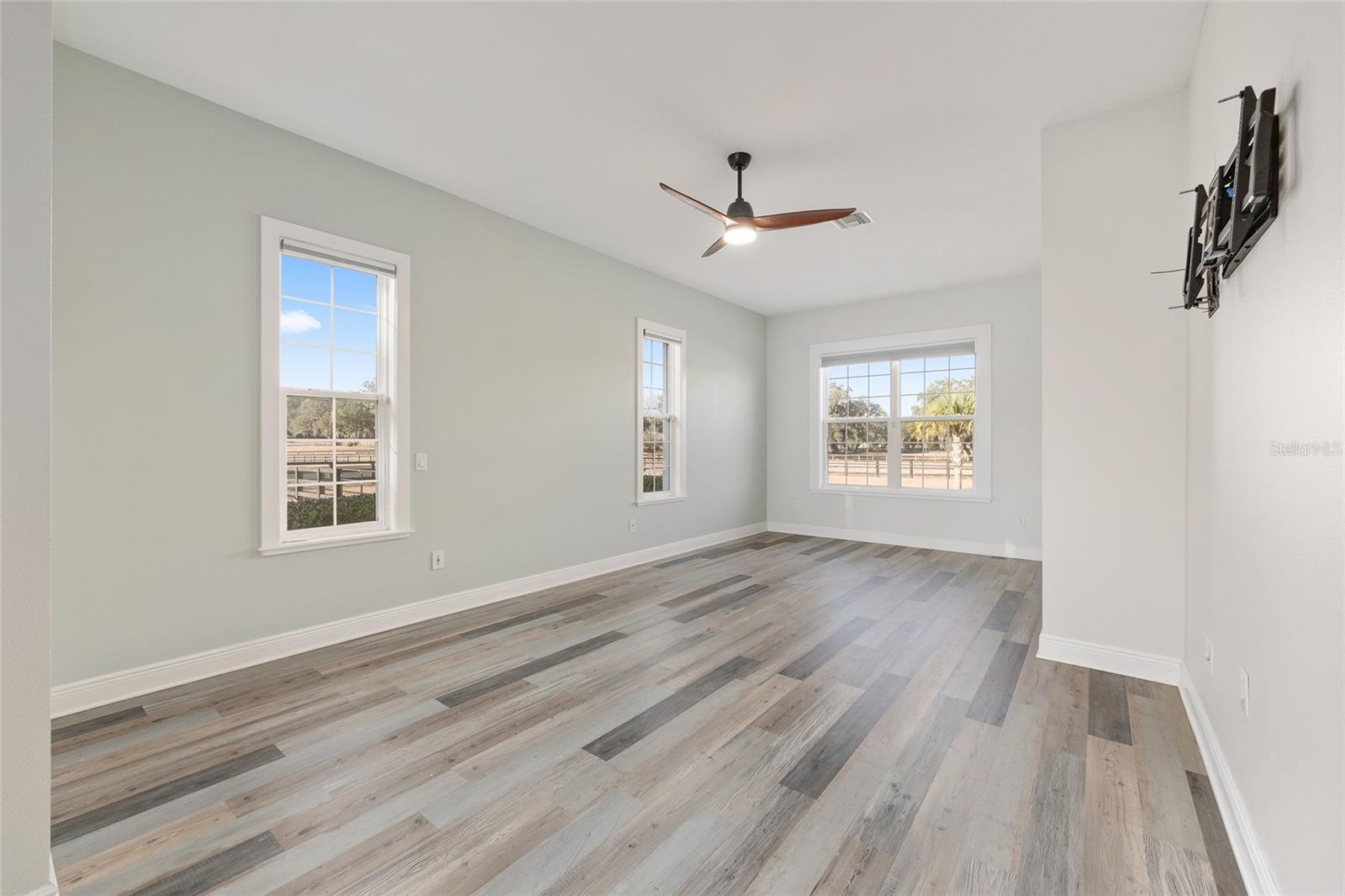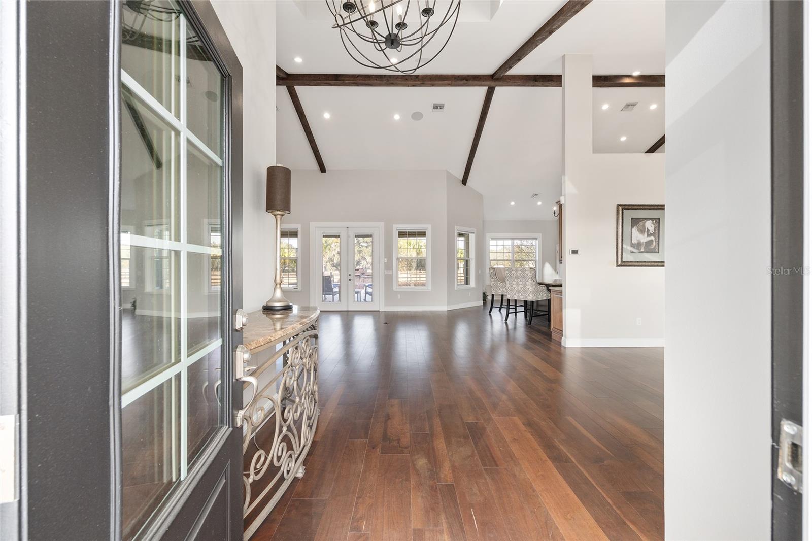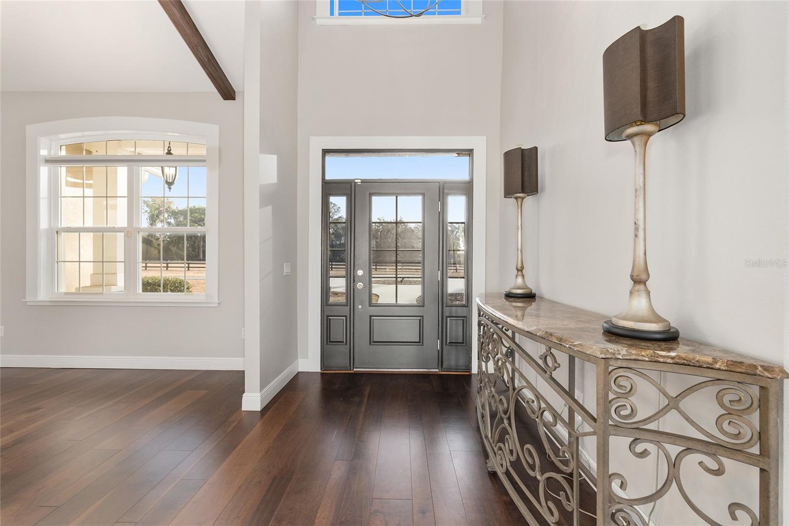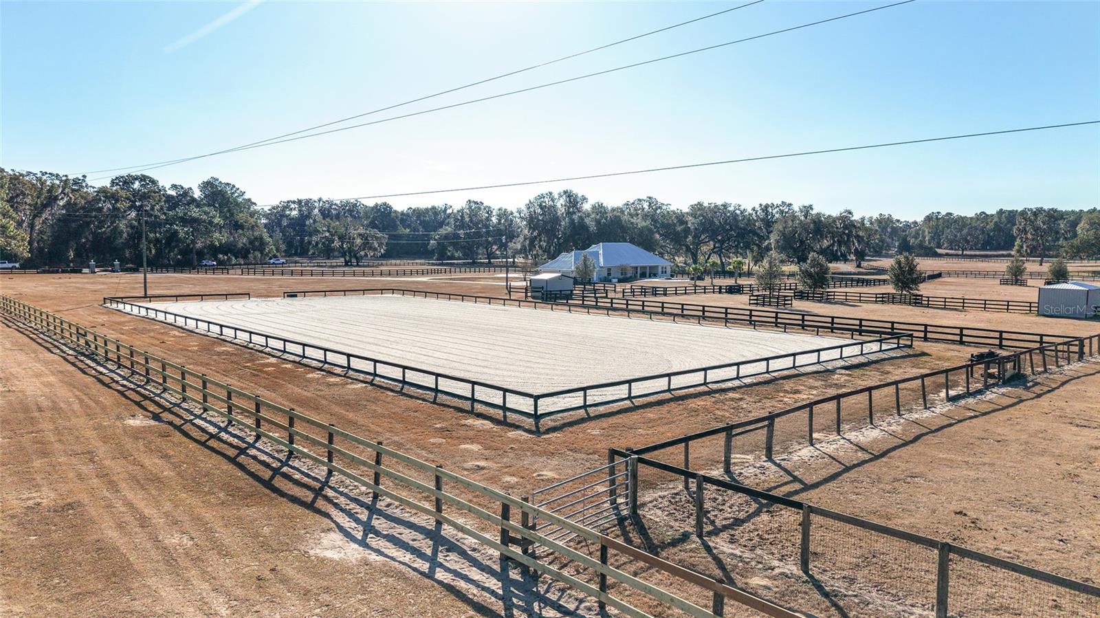 One or more photo(s) has been virtually staged. DEEDED ACCESS TO THE FLORIDA GREENWAYS & TRAILS — Ride directly to the Florida Horse Park from your own backyard! Welcome to over 10 pristine acres in the heart of Ocala’s premier horse country, where luxury living meets exceptional equestrian functionality. Privately tucked behind a custom electric gate and winding drive, this stunning 2016 custom-built estate offers privacy, beauty, and purpose at every turn. A circular driveway and side-entry 3-car garage create an impressive arrival and provide ample space for vehicles, equipment, or recreational storage. Inside the 4-bedroom, 3.5-bath home (2,804 SF), soaring cathedral ceilings, exposed wood beams, hardwood floors, and a dramatic floor-to-ceiling stacked stone gas fireplace anchor the open split-bedroom floor plan. Expansive windows flood the home with natural light and frame sweeping views of your countryside. The chef’s kitchen features stainless steel appliances, custom wood cabinetry, generous counter space, a center island, pantry, and breakfast nook — designed for both entertaining and everyday comfort. The primary suite is a private retreat with two large walk-in closets and a spa-inspired bath offering dual vanities, walk-in shower, and soaking garden tub. Outdoor living shines with a covered lanai complete with summer kitchen and built-in fire pit — perfect for gatherings after a day of riding. The heated saltwater pool and spa with waterfall and self-cleaning system (installed 2024) create a true resort-style setting overlooking the farm. Recent Equestrian Improvements: • 100’ x 200’ all-weather arena with perimeter rails and irrigation system (installed 2022) • Two run-in barns with a total of four stalls (with corner feeders) leading out to the pastors (constructed 2022) • Three separate paddocks/pastures (established 2023) • Three-rail no-climb fencing (installed 2023) • Wash rack with storage barn (installed 2024) With recorded deeded access to the Florida Greenways trail system, enjoy miles of scenic riding and convenient access to the Florida Horse Park — a rare and highly sought-after feature. Additional highlights include a metal roof, Generac whole-house generator and two large buried propane tanks to provide power if needed for long power outages, Starlink internet, Ring security system, well & septic, and thoughtful upgrades throughout. This exceptional estate offers the perfect balance of privacy, luxury design, and recently enhanced turnkey equestrian infrastructure — ideal for those who want to live, ride, and entertain in one of Ocala’s most desirable equestrian corridors.