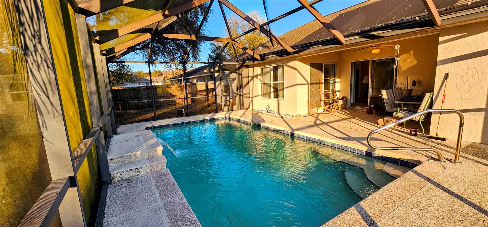 82 Juniper Trail Loop, Ocala, FL 34480 3 BR | 2 BA | 2-Car Garage | 1,526 Sq Ft Living Area | Solar-Heated Saltwater Pool Well-built concrete block and stucco home offering an open floor plan, high ceilings, and 1,526 sq ft of comfortable living space. This 3-bedroom, 2-bath home features a master suite with an ensuite bath and a large walk-in closet. Enjoy Florida living with a solar-heated saltwater pool and screened enclosure. Recent updates include a new AC system and new water heater. Additional features include a 2-car garage with screen, wood privacy-fenced backyard, storage shed, and gutters. Conveniently located between Ocala and The Villages, offering easy access to shopping, dining, and major roadways. Home needs some TLC but has excellent potential with strong structural features and desirable amenities.