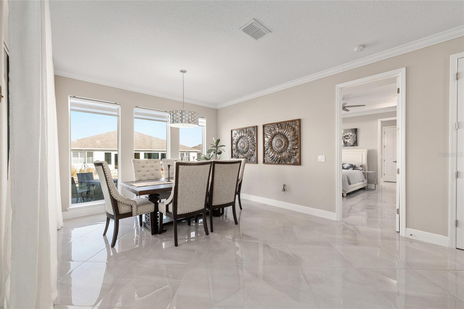 Candler Hills West – Ashford & Balfour in On Top of the World! Welcome to this beautifully upgraded BRIGHTON model offering style, comfort, and the resort lifestyle you’ve been waiting for. Situated on a corner lot with attractive landscaping and paver accents, the inviting front porch sets the tone for relaxed Florida living. Step inside to a welcoming foyer with a flex room on one side and a guest suite on the other—ideal for visitors, hobbies, or a home office. The open-concept floor plan features crown molding, tray ceilings, and an easy flow for both everyday living and entertaining. The gourmet kitchen is a standout with granite countertops, espresso custom cabinetry, and a breakfast bar, while the adjacent dining area easily accommodates a large table for gatherings. The living room overlooks a screen-enclosed lanai and paver patio, perfect for grilling and enjoying the outdoors year-round. The spacious primary suite offers a walk-in closet and convenient access to the laundry room. The primary bath features dual sinks, a large zero-entry shower with bench, and a rainfall showerhead for a spa-like feel. Car enthusiasts and hobbyists will appreciate the 3.5-car garage complete with built-in cabinets, epoxy-coated floor, and wash tub. A full list of upgrades is available for review. Enjoy all the amenities that On Top of the World is known for, including The Lodge, pools, fitness centers, golf, clubs, and endless activities in this sought-after active adult community.