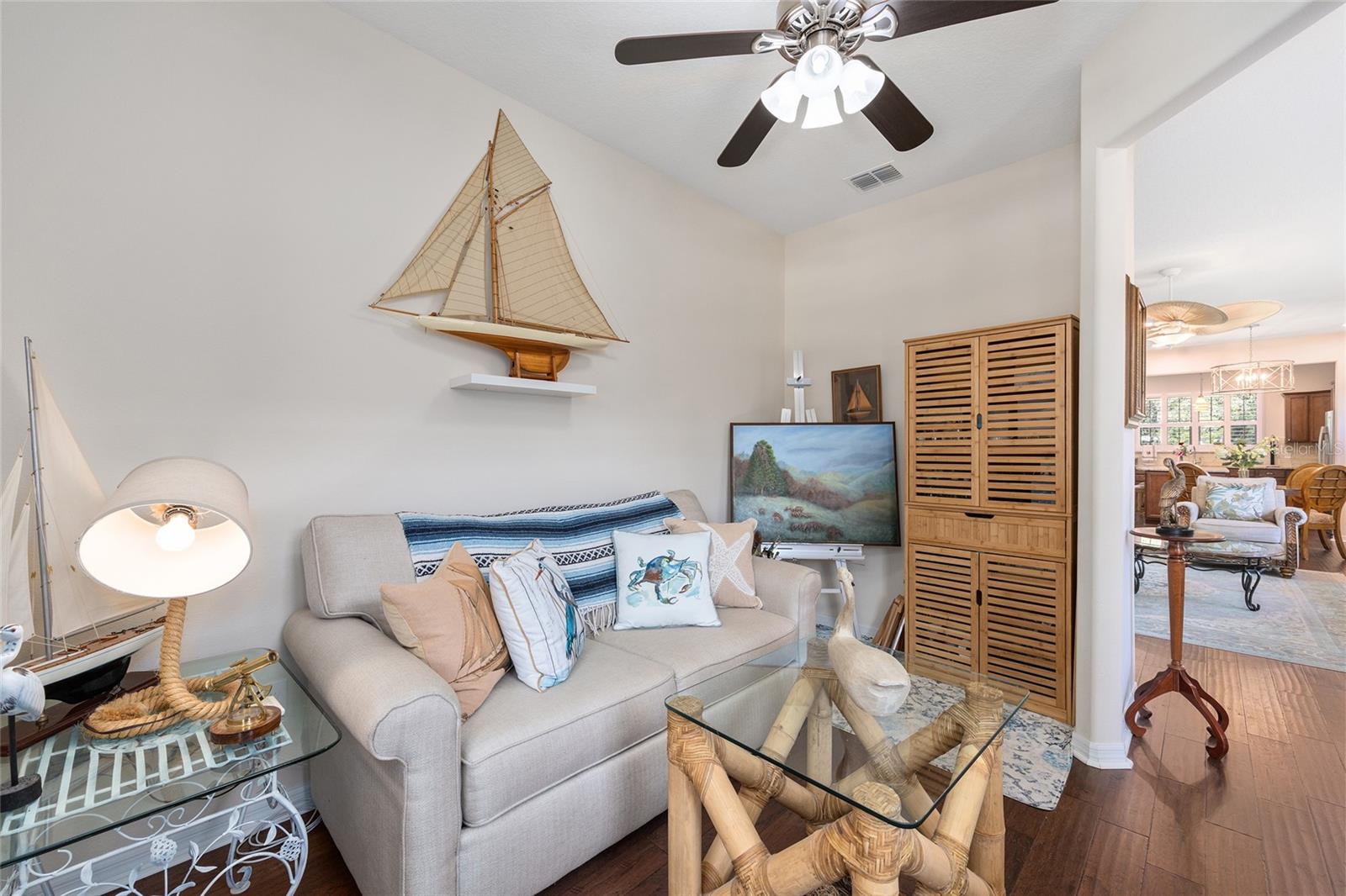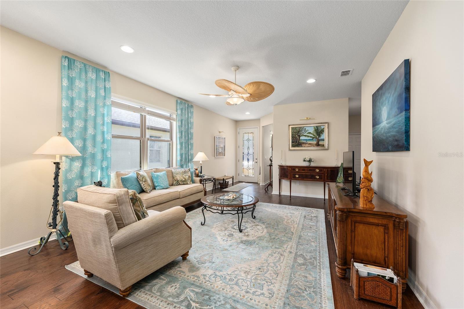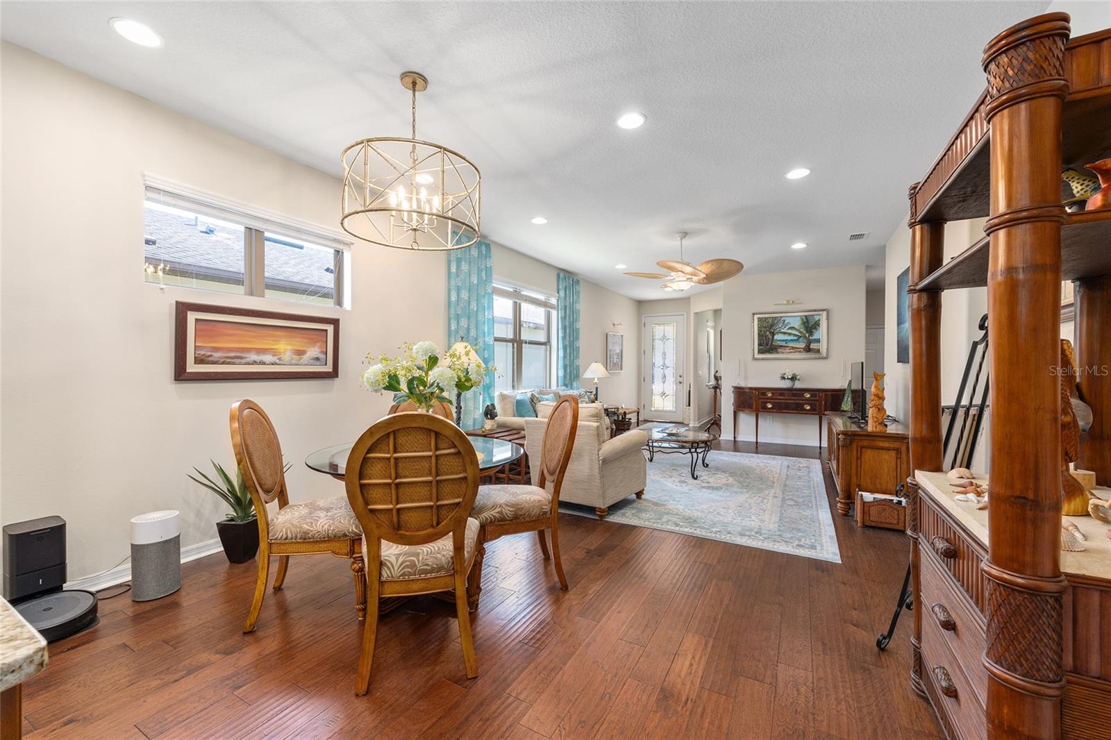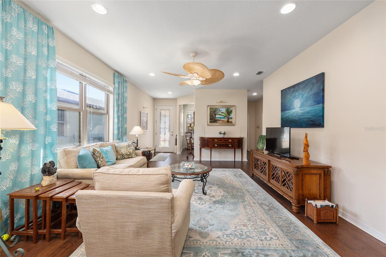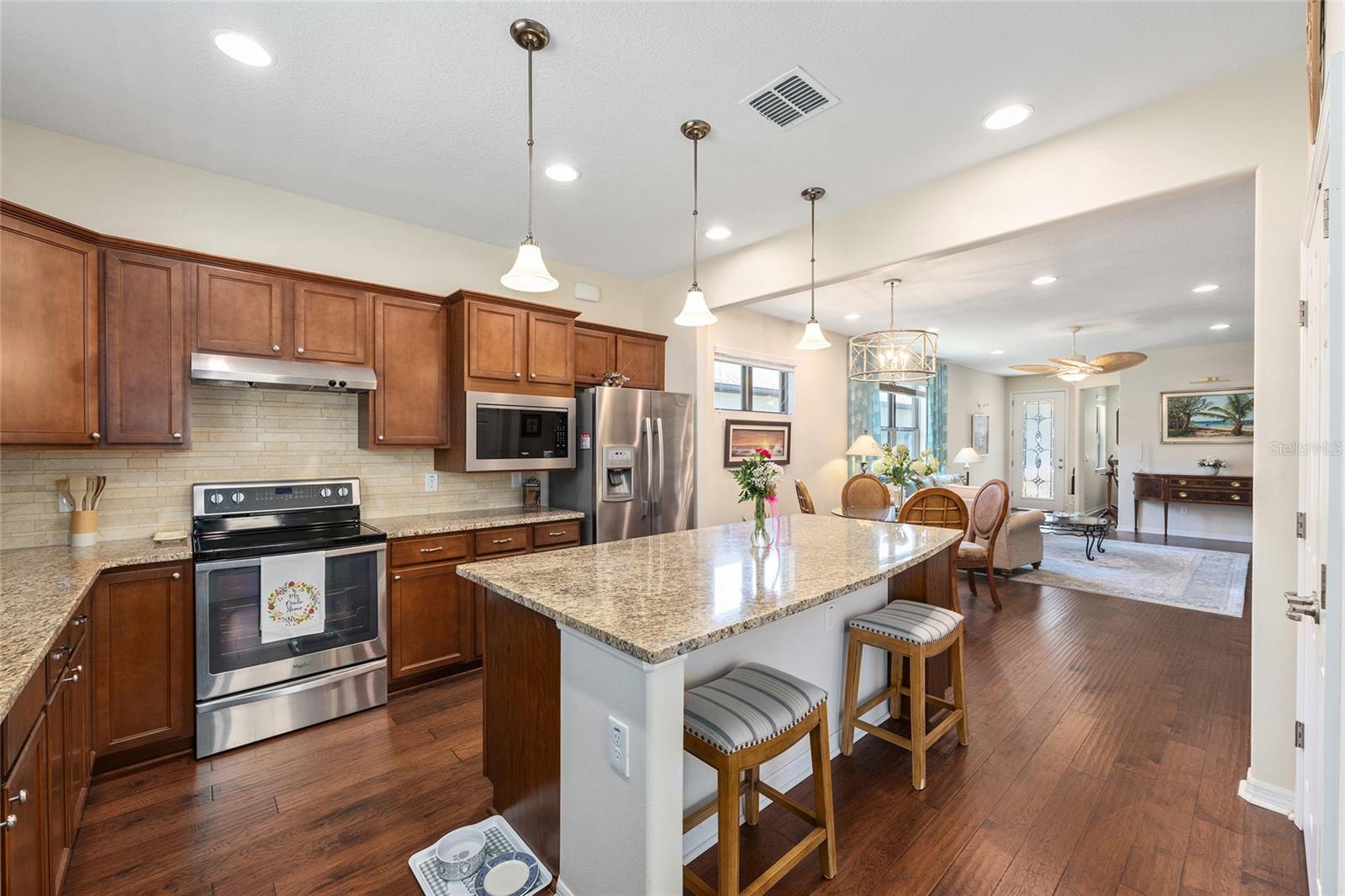 There are homes that are lived in and homes that are felt. From the moment you step through the glass entry door, this one welcomes you with a quiet, creative energy—light pouring in, warm hardwood floors underfoot, and a sense of calm that makes you instinctively slow down and breathe a little deeper. Lovingly cared for by an artist, every space feels intentional and inspired. The kitchen is the natural heart of the home—open, expansive, and designed for connection—with granite counters, a generous island, and room for conversations to linger long after meals are finished. But it’s the view that truly captures you. Beyond the screened porch and extended paver patio, the home opens to a wide stretch of protected green space and trees—a living backdrop that changes with the light of day. Private. Peaceful. Alive. It’s the kind of setting that invites morning coffee, quiet reflection, and evenings where time simply slips away. The primary suite continues the experience, with a beautifully reimagined custom closet and the same sense of thoughtful care found throughout. A flex room offers space to create, work, or simply be, while practical touches like the upgraded garage flooring, wash station, and water softener make daily living effortless. As a Garden Home in Stone Creek, the yard is maintained for you—landscaping, irrigation, and lawn care—freeing you to fully embrace the lifestyle that makes this community so special. This is a home for someone who values light. Privacy. Inspiration. And the quiet luxury of living in harmony with their surroundings.