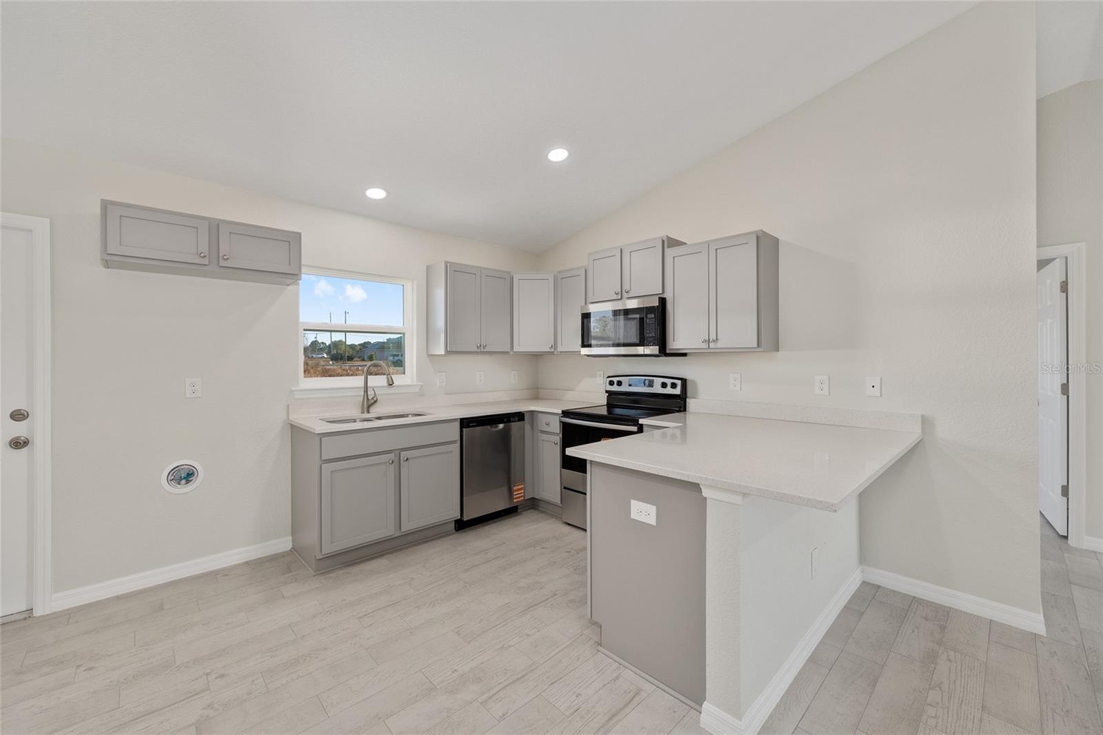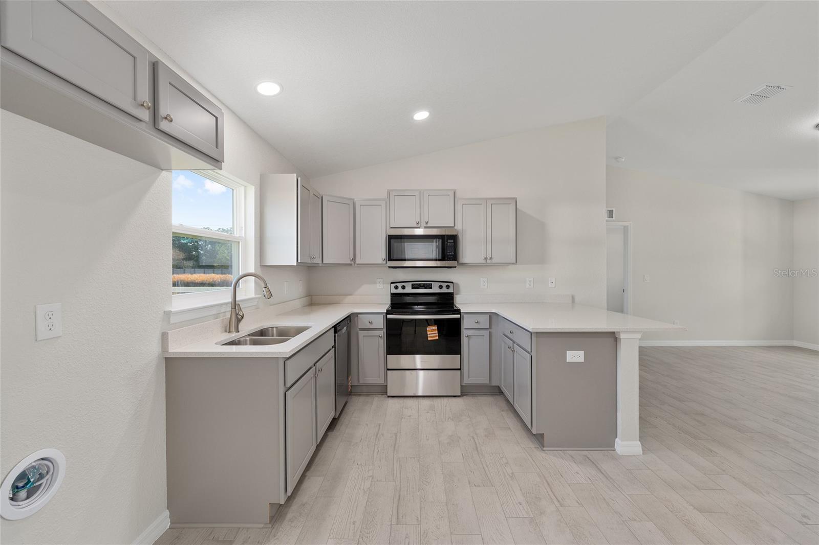 NEW, NEW, NEW! New Construction! New ENHANCED FLOOR PLAN! New REIMAGINED FEATURES! This home blends a timeless design with modern living. From the moment you walk through the front door you will feel the openness with the cathedral ceiling in the foyer, living room, and dining room! Durable ceramic tile flooring flows seamlessly throughout the home. The kitchen boasts stainless steel appliances, sleek quartz countertops, ample cabinetry, breakfast bar and a spacious pantry. Do laundry with ease in the air-conditioned laundry room. The bedrooms have all been expanded to maximize living space. An impressive, attached garage provides convenience and ample storage. This home rests on just over a 1/4 acre lot ~ enough room for the family & pets to play, but not too much yard work. Silver Springs Shores offers easy access to restaurants, shops, healthcare facilities, art galleries and local events, plus outdoor recreation opportunities like parks, lakes, biking, swimming, hiking, kayaking and much more. The Builder is including a 1 year full warranty and a 2-10 home warranty! Any dimensions listed are approximate. Photos/Virtual Tour are to show interior and exterior colors and finishes and may or may not be of this actual listing. Garage orientation and floor plan may vary for actual home.BUILDER WILL PAY UP TO $5000.00 TOWARDS BUYERS CLOSING COSTS WITH FULL PRICE OFFER!