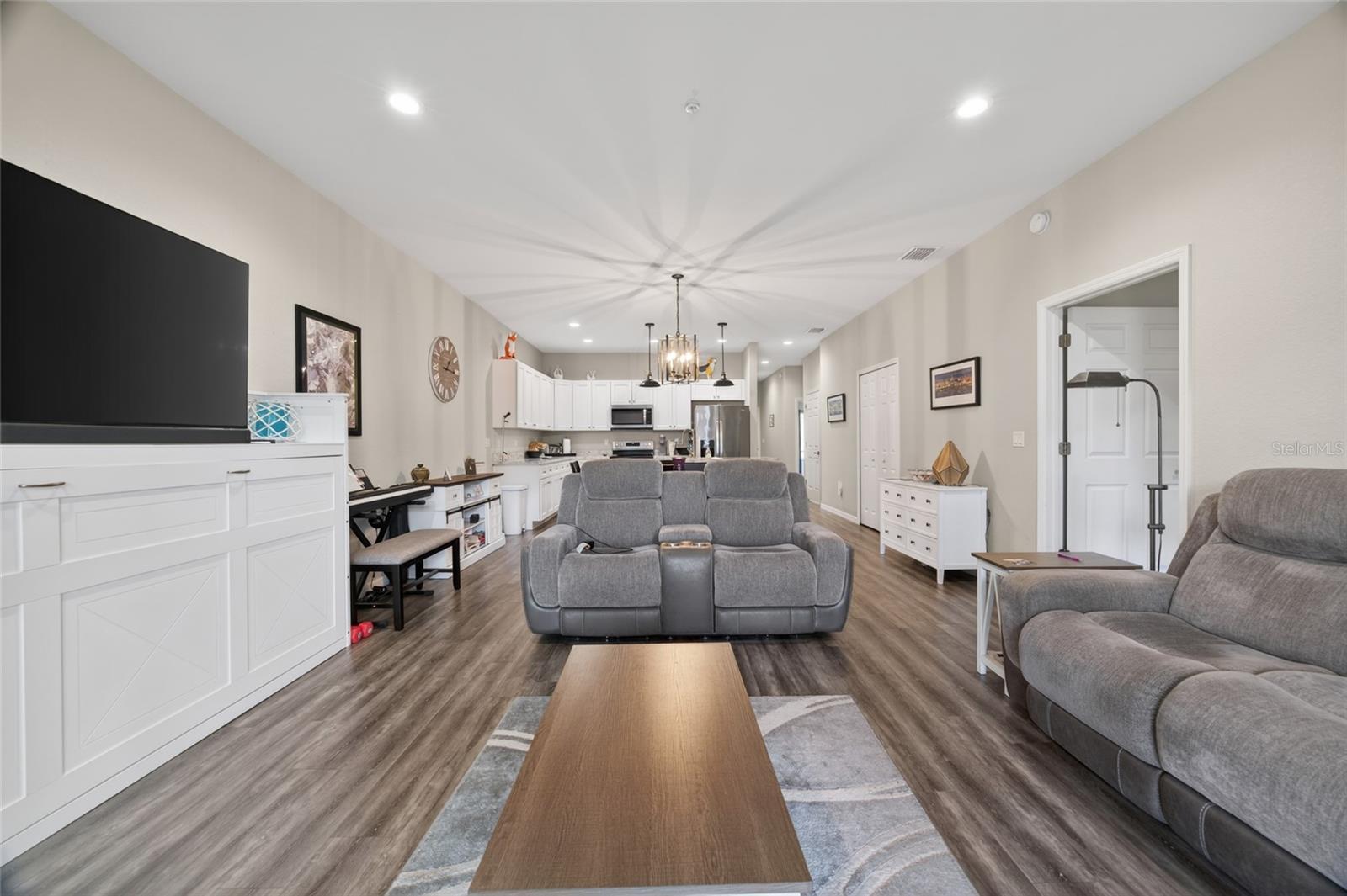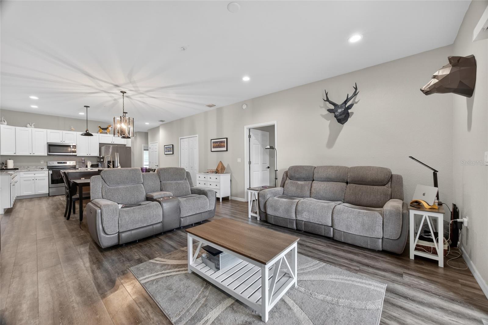 Privately situated in a quiet and peaceful community, this beautiful 2 bedroom, 2 bathroom condo built in 2020 offers the perfect blend of comfort, style, and convenience. Enjoy breathtaking views right from your home and unwind in a serene neighborhood designed for easy living. Inside, you’ll find a thoughtfully designed layout featuring high ceilings and laminate flooring throughout. The kitchen showcases shaker cabinets with soft-close doors, brushed nickel fixtures, and a spacious pantry, flowing seamlessly into the main living area. Paddle fans are installed in both the living room and bedrooms for added comfort, and the inside laundry room provides everyday convenience. The primary suite offers a true retreat with a dual vanity, large walk-in shower, and generous walk-in closet. Step outside to the oversized enclosed back porch, perfect for enjoying relaxing Florida evenings year-round. Don’t miss the opportunity to make this exceptional condo your next home, where modern finishes and comfortable living come together beautifully.
