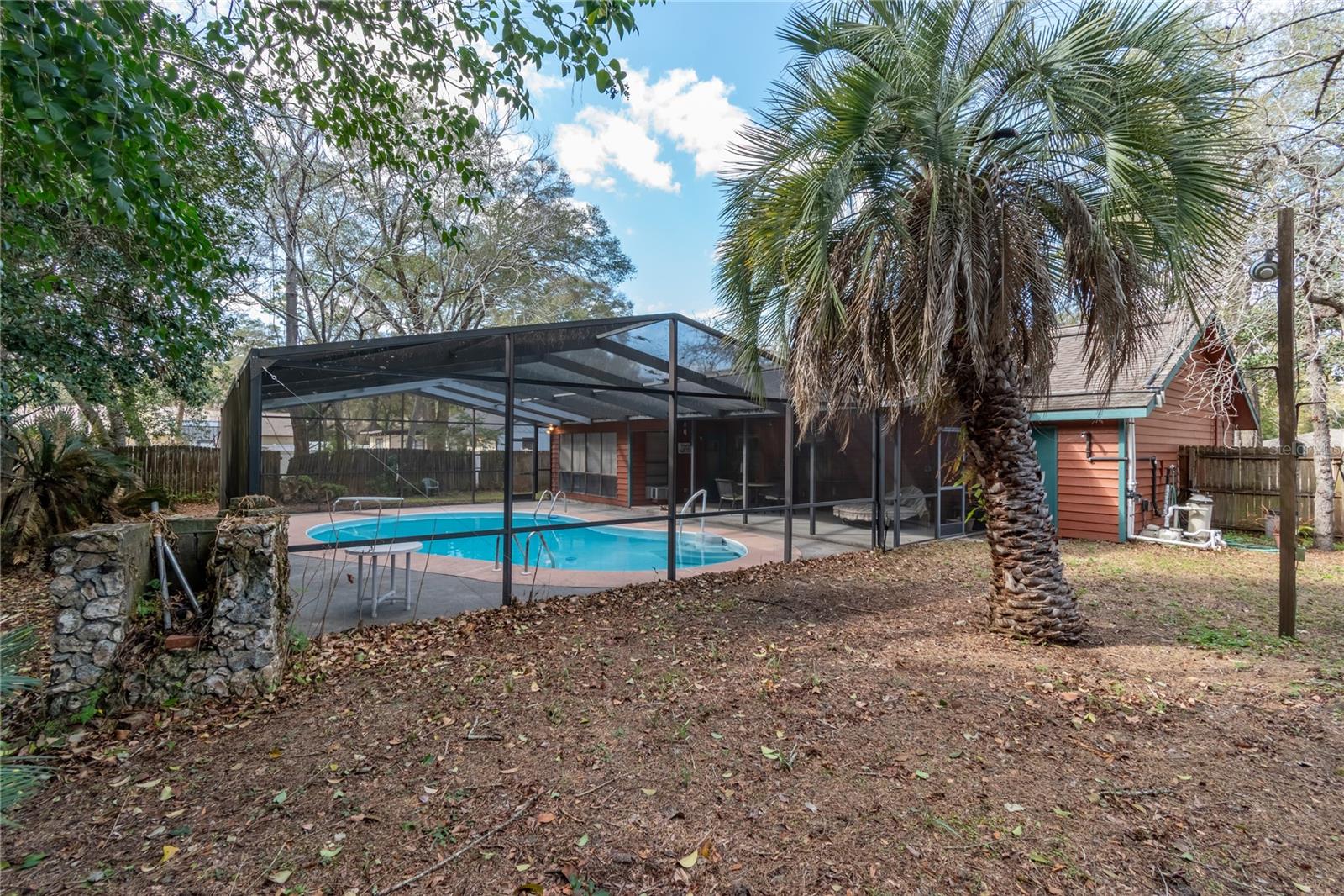 Set at the entrance of a quiet cul-de-sac within Sugar Hill Estates, this well-maintained 3-bedroom, 2-bath pool home offers the perfect blend of convenient location and peaceful Ocala living. On just over a quarter of an acre, the property overlooks a large front yard with tasteful landscaping and plenty of curb appeal. Inside, the home features a thoughtful split-bedroom floor plan, lots of natural light, and tasteful paint colors throughout. A cozy wood-burning fireplace serves as the focal point for the living room, creating a warm gathering space accented by vaulted ceilings. The formal dining room is directly adjacent and separated by a tasteful half-wall, with sliding glass doors that let in lots of light and provide direct access to the back patio. The kitchen features a functional layout designed for efficiency with ample counter and cabinet space, stainless steel appliances, and a breakfast bar. An interior laundry area and multiple storage closets throughout the home provide practical organization and everyday convenience. The primary suite includes a huge walk-in closet and a private en-suite bath with large vanity and walk-in shower. Two additional bedrooms, each with generous closet space, share a full guest bath. Step outside to enjoy the expansive screen-enclosed patio surrounding the sparkling in-ground pool, complete with a diving board and abundant deck space for lounging or entertaining. A covered area of the patio provides shade for outdoor dining or relaxing year-round, complete with ceiling fans to keep the air moving. The backyard is fully fenced, offering additional functionality and privacy. Recent updates add peace of mind, including a new A/C system (2025), pool pump (2023), and exterior paint (2022). Located less than 15 minutes from the Ocala Downtown Square, the Appleton Museum of Art, and a variety of shopping, dining, medical, and entertainment options, this property is the perfect option for those looking to experience everything Ocala has to offer. With no HOA fees and a location that combines privacy with convenience, this property offers a solid foundation, thoughtful updates, and exceptional outdoor living! Schedule your showing today!