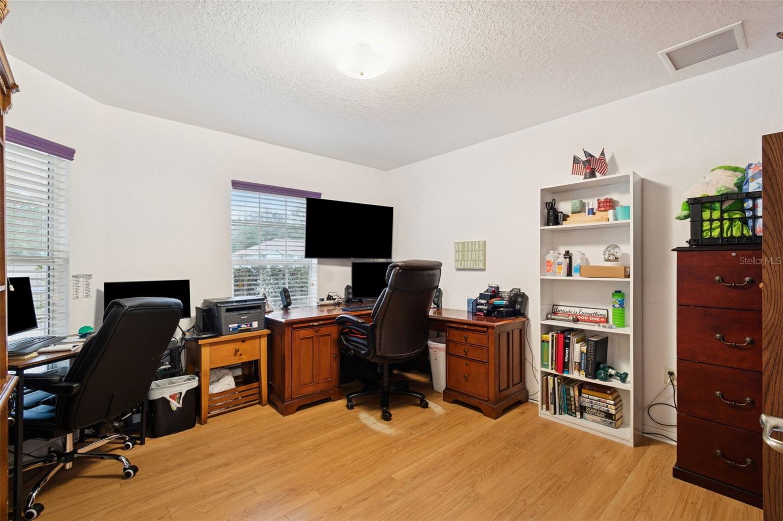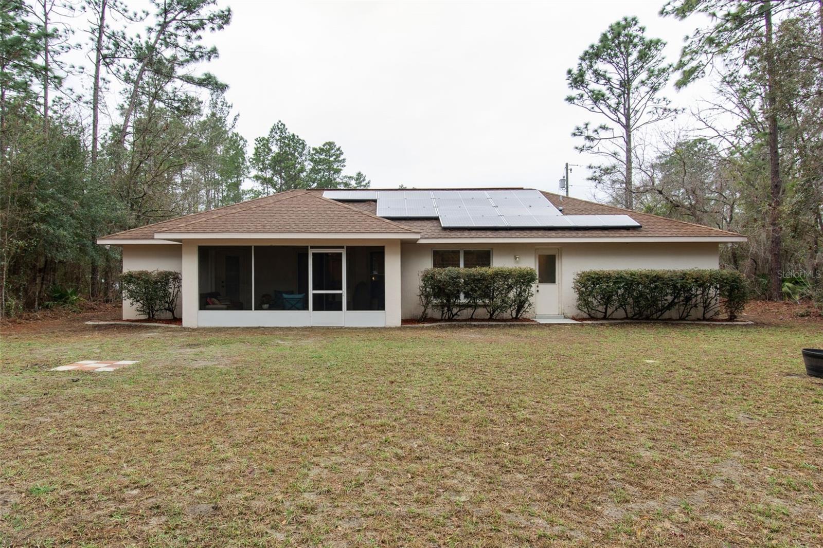 Schedule your showing today to view this well-maintained 3 bedroom, 2 bathroom home, plus a versatile den/office and a functional layout designed for comfortable living. The property offers a dedicated indoor laundry room with washer and dryer included, a 2-car garage with automatic opener, and a kitchen complete with breakfast nook and all appliances included, making it truly move-in ready. The primary suite features a walk-in closet, dual sinks, a soaking tub, separate walk-in shower, and private access to the screened back lanai. The guest bathroom also provides direct access to the backyard, adding convenience for outdoor entertaining or future pool plans. Enjoy year-round Florida living on the screened lanai overlooking the backyard, plus a storage shed for additional storage and extra backyard space enhanced by the privacy lot behind the property, Tankless water heater, Solar panels installed in 2022 improve energy efficiency and provide long-term savings.