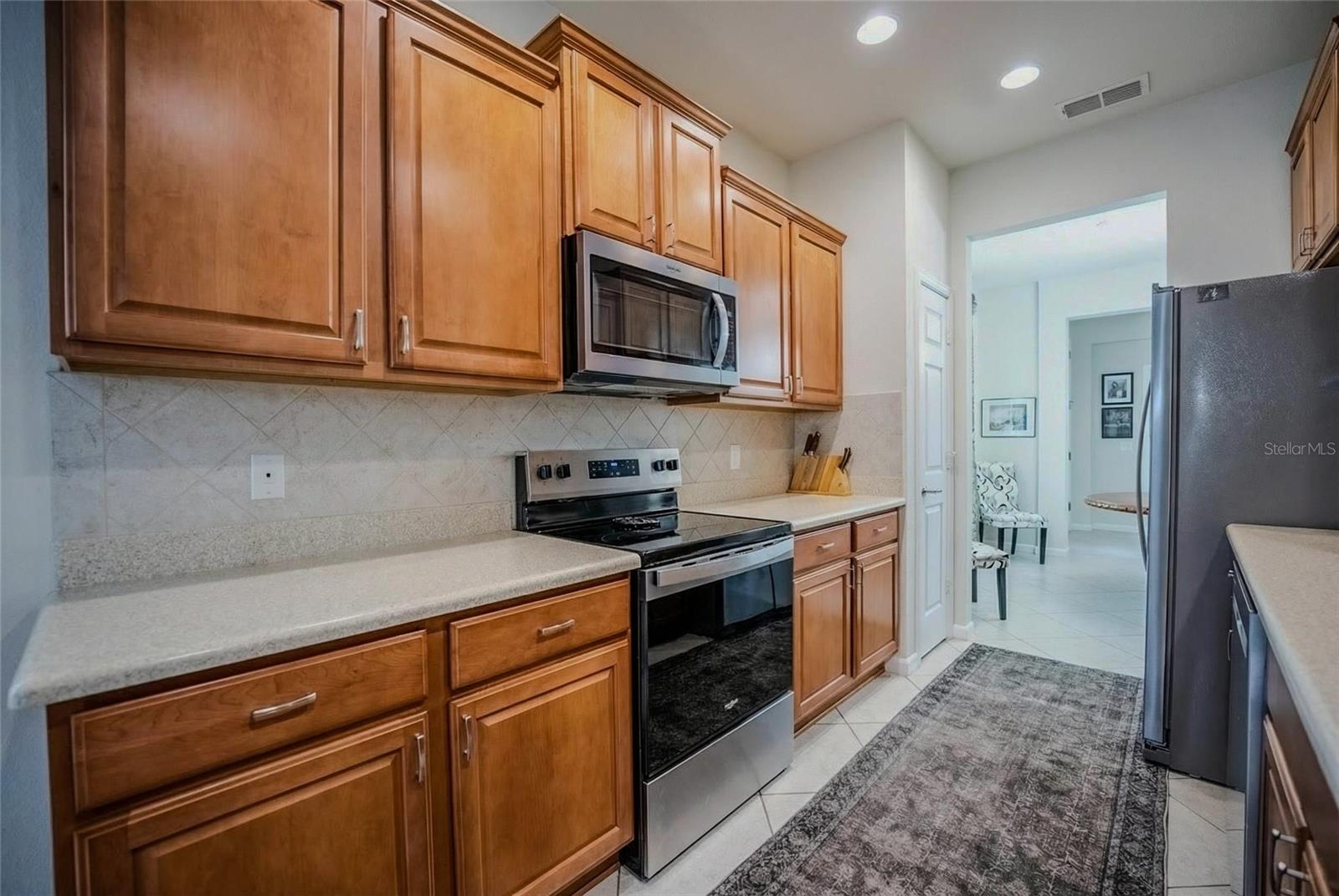 GOLF CART INCLUDED! Discover the perfect blend of comfort, convenience, and thoughtful upgrades in this beautifully maintained 2-bedroom, 2-bath villa with a versatile flex room. Designed for easy living and effortless entertaining, the bright open-concept layout offers a seamless flow between the living, dining, and kitchen areas, creating a warm and welcoming atmosphere filled with natural light. The kitchen features elegant Corian countertops, brand-new stainless steel appliances that add a sleek, modern touch, ample cabinetry, and generous workspace—perfect for preparing meals or gathering with family and friends. Just off the main living area, the flex room is enhanced with French doors, providing both privacy and style—ideal for a home office, reading room, or additional guest space. Step outside to your private screened lanai, where you can enjoy peaceful mornings with coffee or relaxing evenings in the fresh air—your own tranquil outdoor retreat. The spacious laundry room adds everyday convenience with built-in cabinets and a utility sink, offering extra storage and functionality. Enjoy true maintenance-free living with lawn care, landscaping, and exterior maintenance all included—giving you more time to enjoy the things you love. Take advantage of exceptional community amenities such as resort-style pools, fitness centers, walking trails, and vibrant social clubs designed to keep you active and connected. And with the golf cart included, getting around the community is both easy and fun! This villa is move-in ready and perfectly suited for the carefree lifestyle you deserve. Schedule your private showing today!