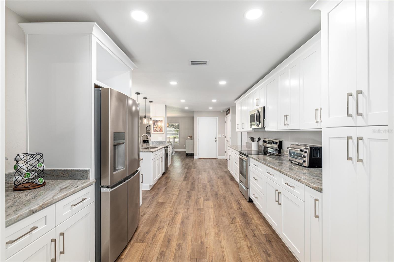 Located in the beautiful established neighborhood of Windermere Glen is this lovely Ranch style home that has been completely remodeled with all the upgrades! You'll fall in love with the huge galley kitchen with granite countertops & quality appliances all open to the living and dining rooms for intimate family gatherings and entertaining. A large bonus/family room off the kitchen can be used for multiple purposes and a big plus to this home. The intimate living room hosts an impressive rock fireplace (decorative only). Other features include a private office, two large ensuites, three full baths, a coat closet, three linen closets, and large closets in each of the bedrooms providing ample storage. Luxury vinyl plank flooring throughout. A large inviting concrete patio and a brand new Bullfrog Hot Tub/Spa are all waiting for you in your privacy vinyl fenced backyard! This home truly checks all the boxes for the best in central Florida living. Roof 2021, new windows & doors 2022, HVAC 2021, garage door opener 2023, custom window blinds, freshly painted interior & exterior 2022, and all have been meticulously maintained! Make your appointment to tour this fabulous home soon, you'll be happy you did.