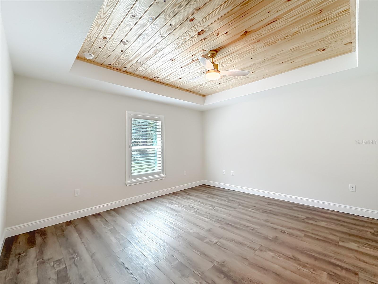 Welcome to this beautifully crafted move in ready new construction home, thoughtfully designed with quality, comfort, and elevated finishes throughout. Situated on historic Fort King Street, just five minutes to parks and shopping and only ten minutes to downtown, this home offers both convenience and timeless curb appeal. From the moment you arrive, the striking white exterior with black shutters, black front door, fascia, soffit, and shingles creates a clean modern farmhouse feel while maintaining classic proportions. Board and batten detailing across the front facade adds architectural interest, and the covered front porch with a tongue and groove ceiling invites you to slow down and enjoy the setting. Built with concrete block construction and energy efficient low E windows, this four bedroom, two bathroom home features a split floorplan that offers privacy and functionality. The primary suite is tucked away on one side of the home, while the guest bedrooms are thoughtfully positioned on the opposite side. Inside, luxury vinyl plank flooring flows throughout the living areas, complemented by granite countertops and soft close cabinetry that reflect the upgraded quality of this build. The living space feels open and light filled thanks to the triple windows in the living room and a triple sliding glass door in the dining area that seamlessly connects to the covered back patio, also finished with a tongue and groove ceiling. Whether entertaining or enjoying a quiet evening at home, the indoor and outdoor spaces are designed to work together effortlessly. A wainscoting feature wall in the living room adds warmth and character, complete with a dedicated outlet for a mounted television. The kitchen stands apart from typical builder grade homes, featuring stainless steel appliances, 36 inch upper cabinets for additional storage, and a striking two tone cabinet design with a darker accent island. Brushed brass lighting, hardware, and plumbing fixtures add a refined touch that carries through to the bathrooms. The primary suite offers a true retreat, highlighted by a tongue and groove tray ceiling, spacious walk in closet, and a beautifully tiled walk in shower with glass enclosure. Dual sinks, upgraded finishes, and an in wall safe add both luxury and peace of mind. Additional features include ceiling fans in every bedroom and the living room, plantation shutters and window casing throughout, an inside laundry room, and a two car garage with glass panel garage door and a ceiling mounted AC handler to maximize usable space. Full lot sod completes the exterior, providing a polished and move in ready presentation. This is not a standard spec home. It is a thoughtfully upgraded residence that blends craftsmanship, style, and everyday functionality in a prime Ocala location.