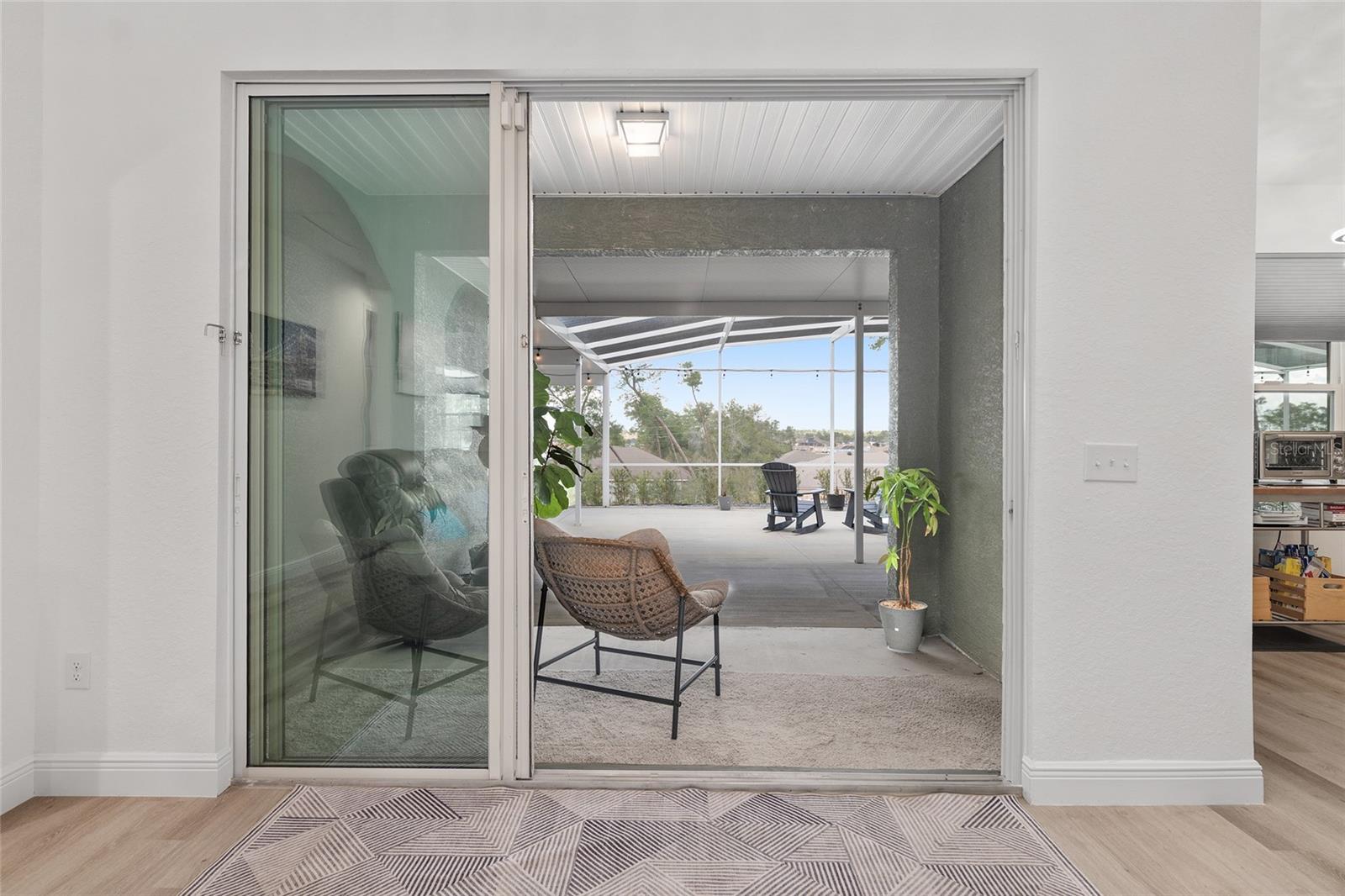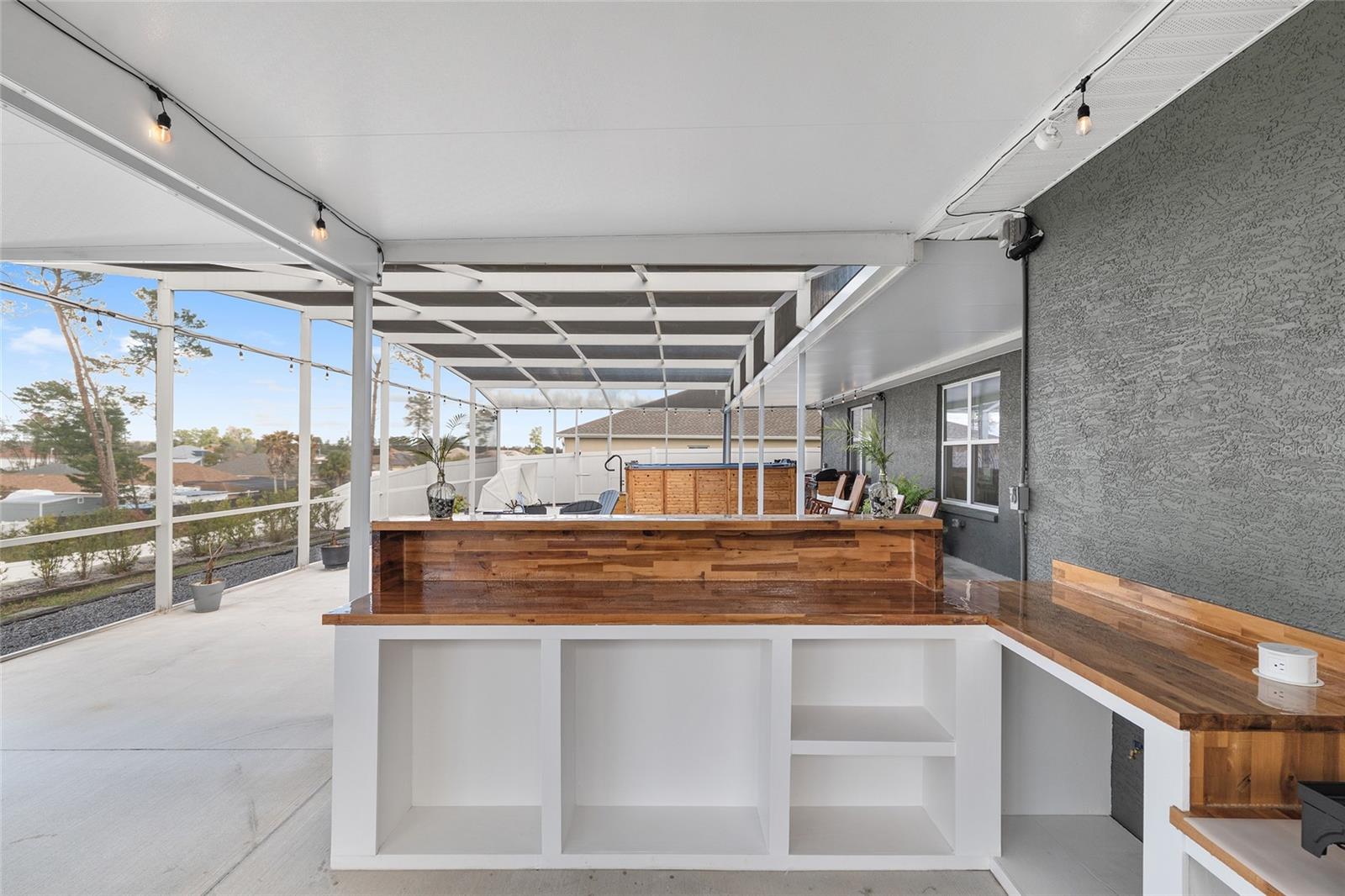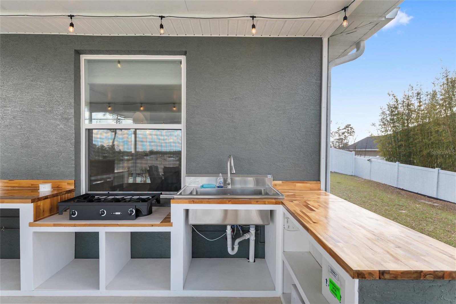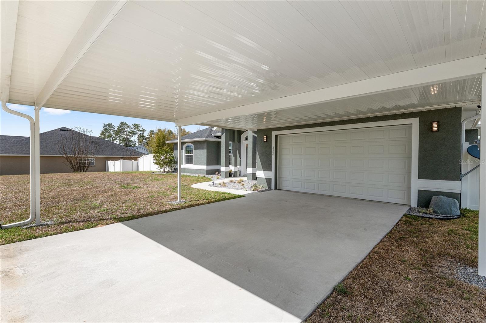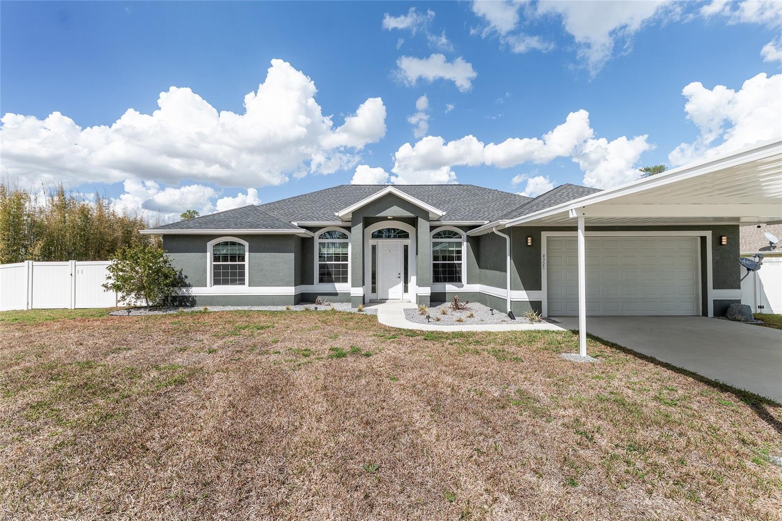 Beautiful 4/2/2 custom built 2022 home on a large .56 acre lot in a great neighborhood! AWESOME 30x60 screened lanai (with 2 covered roof areas) features a DELUXE SWIM SPA (over 4 feet deep), OUTDOOR KITCHEN & BAR AREA, and is an amazing space to enjoy your privacy fenced back yard! With almost 2400 ft living space, this home has plenty of room for family living and entertaining inside and out! The spacious living room has vaulted ceilings and the dining area has triple sliders to the HUGE lanai. The pretty kitchen has a breakfast bar, granite counters, SS appliances, pantry, and kitchen nook. There are 8 ft doors throughout, along with granite counters, and LVP flooring (tile in bathrooms). Split bedroom plan. Primary suite is oversized with walk-in closet and en suite with dual sinks, granite counters, linen closet, water closet, and walk-in ceramic tile shower. Inside laundry includes laundry sink. The added carport gives plenty of additional covered parking. Ocala Waterway is a quiet neighborhood that is convenient to SR 200 (shopping, dining, medical, parks, and I-75).
