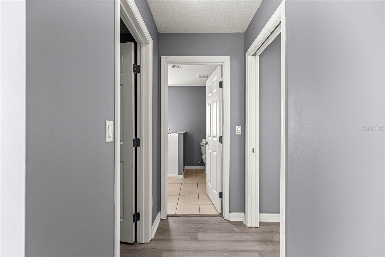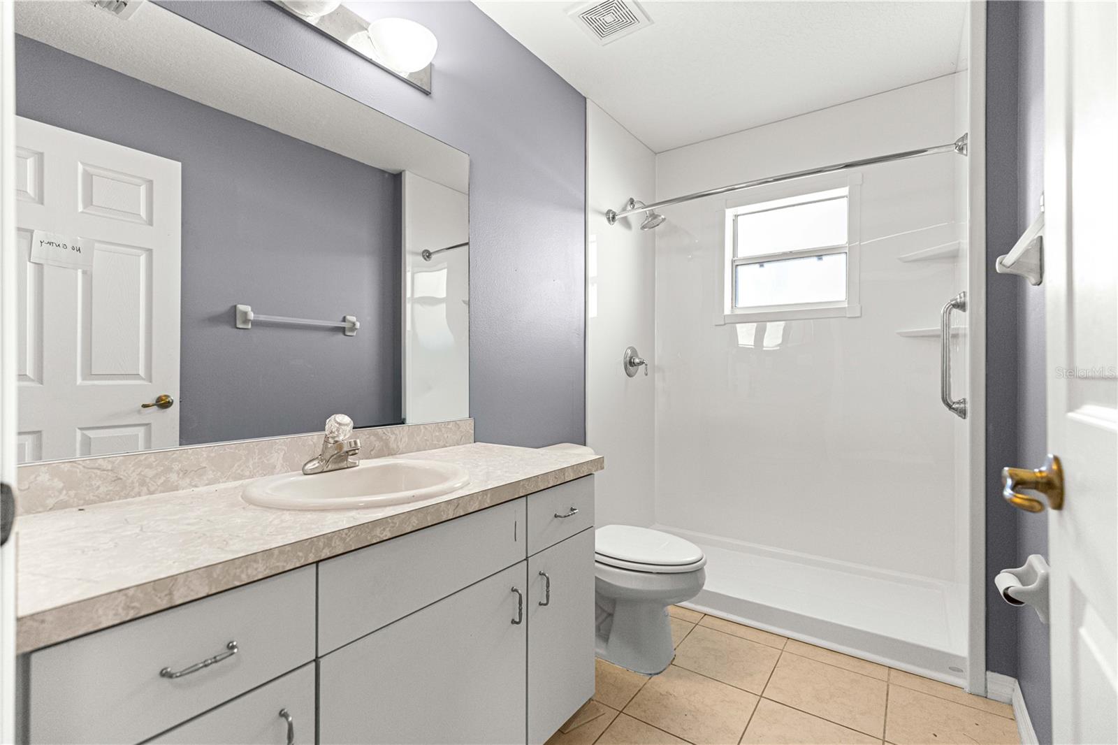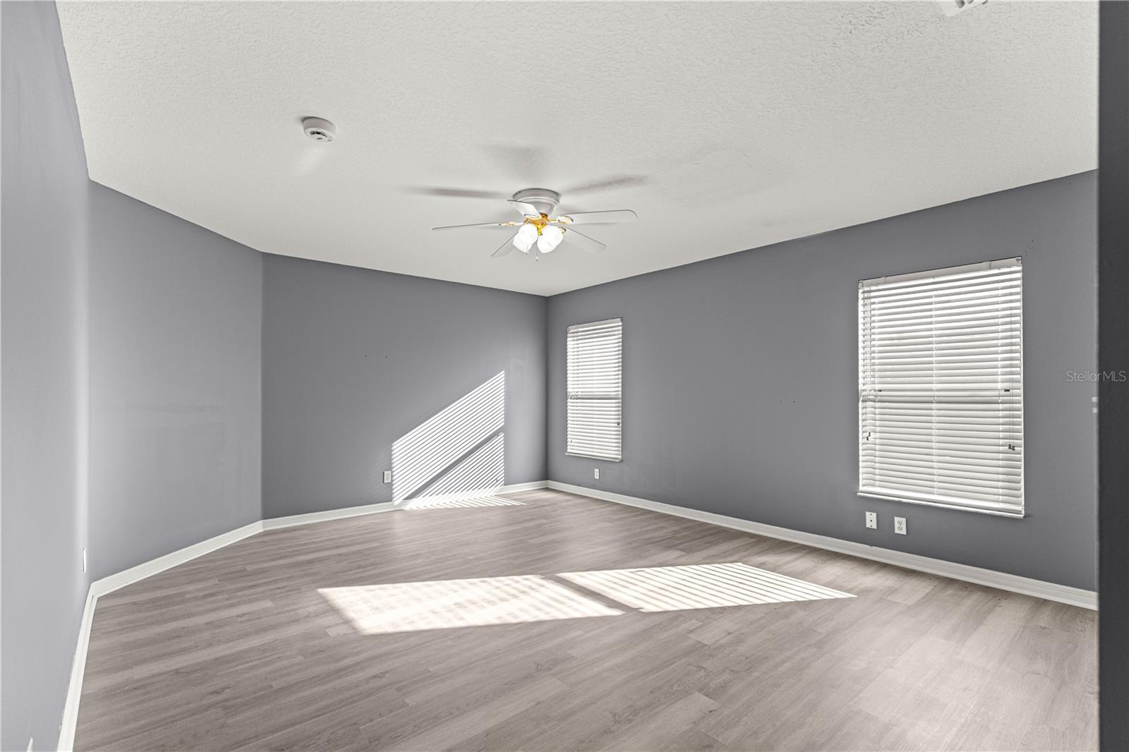This well-kept 3-bedroom, 2-bath home offers a clean, modern look with soft gray and white tones throughout. The large living room provides plenty of space to relax and entertain, with a dining area just off the living room. The nice-sized kitchen features an eat-in area and room for bar stools, making it both functional and welcoming. The split floor plan offers added privacy, with the primary suite featuring a walk-in jetted tub and a separate shower. The main living areas feature easy-care luxury vinyl plank flooring, with tile in the kitchen and bathrooms. Enjoy the screened-in rear porch with no neighbors behind, offering peaceful outdoor living. The home also includes a 3-car garage. AC replaced in 2019. Move-in ready and designed for comfortable, low-maintenance living in a desirable Ocala neighborhood.