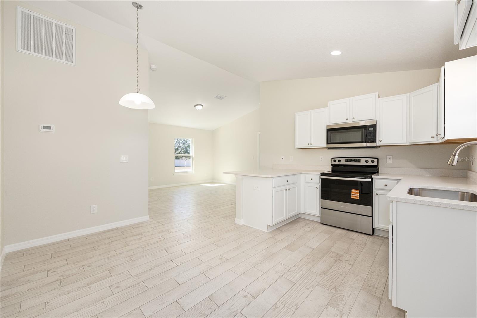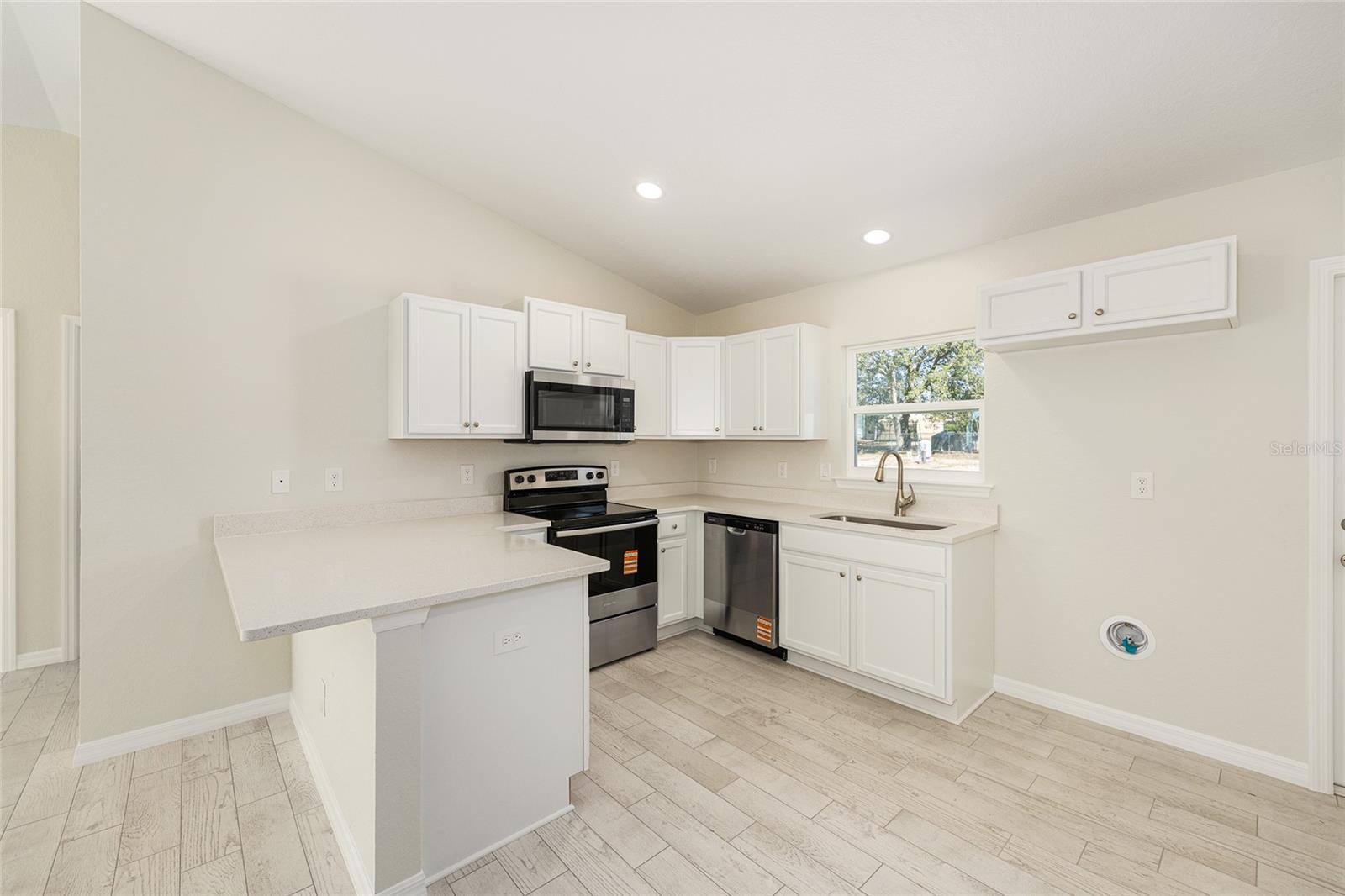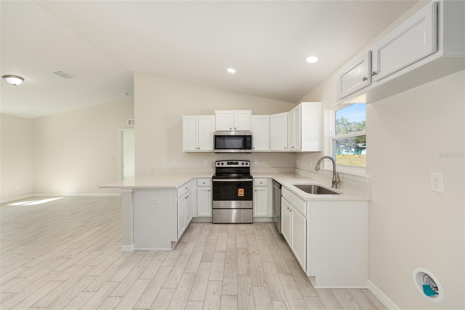 NEW, NEW, NEW! New Construction! New ENHANCED FLOOR PLAN! New REIMAGINED FEATURES! This home blends a timeless design with modern living. From the moment you walk through the front door you will feel the openness with the cathedral ceiling in the foyer, living room, and dining room! Durable ceramic tile flooring flows seamlessly throughout the home. The kitchen boasts stainless steel appliances, sleek quartz countertops, ample cabinetry, breakfast bar and a spacious pantry. Do laundry with ease in the air-conditioned laundry room. The bedrooms have all been expanded to maximize living space. An impressive, attached garage provides convenience and ample storage. This home rests on just over a 1/4 acre lot ~ enough room for the family & pets to play, but not too much yard work. Silver Springs Shores offers easy access to restaurants, shops, healthcare facilities, art galleries and local events, plus outdoor recreation opportunities like parks, lakes, biking, swimming, hiking, kayaking and much more. The Builder is including a 1 year full warranty and a 2-10 home warranty! Any dimensions listed are approximate. Photos/Virtual Tour are to show interior and exterior colors and finishes and may or may not be of this actual listing. Garage orientation and floor plan may vary for actual home.BUILDER WILL PAY UP TO $5000.00 TOWARDS BUYERS CLOSING COSTS WITH FULL PRICE OFFER!