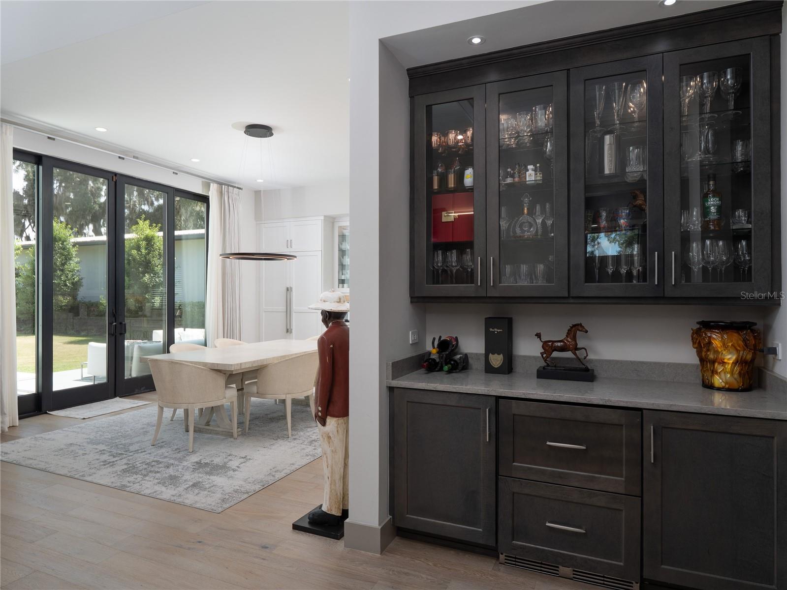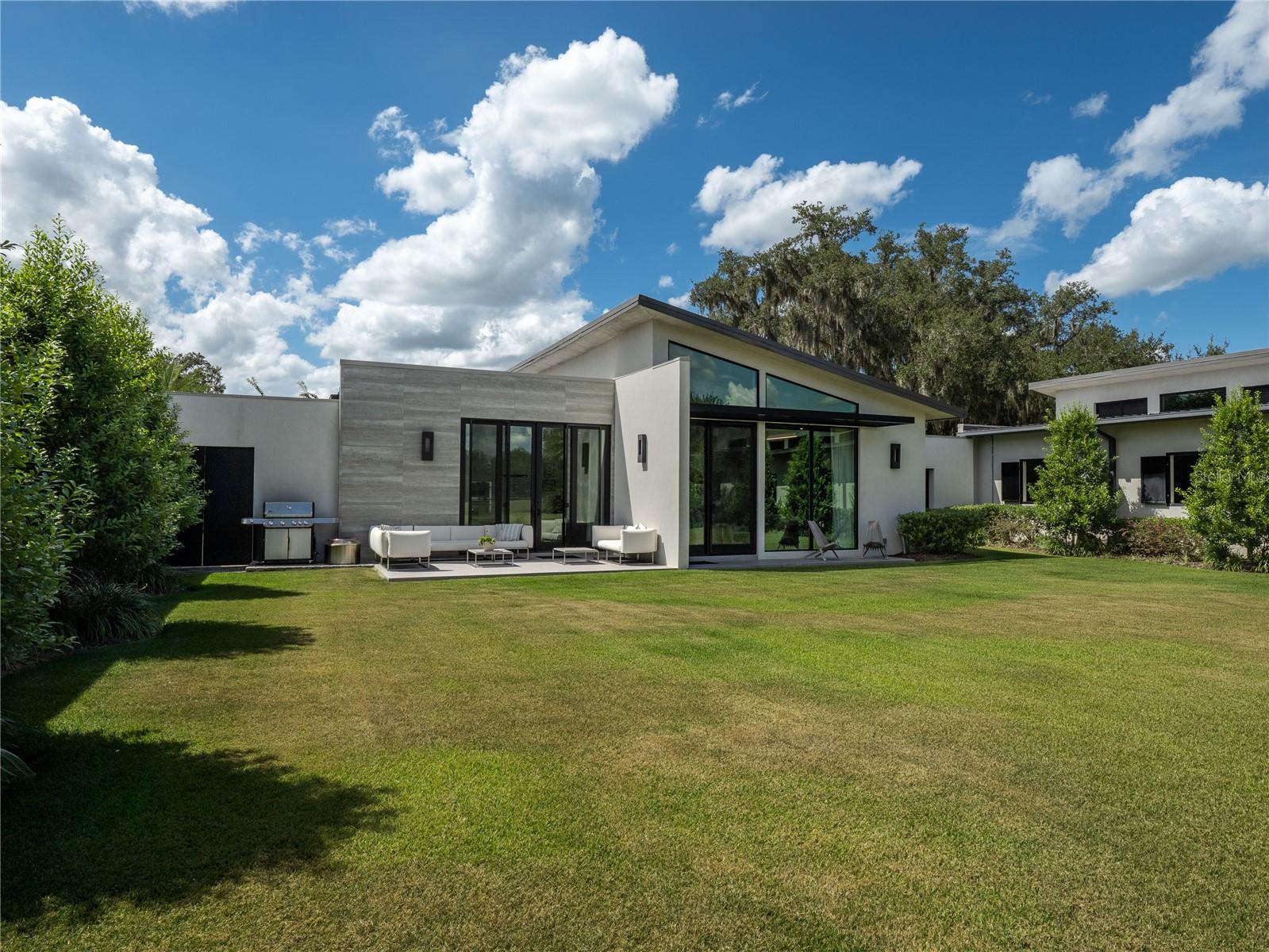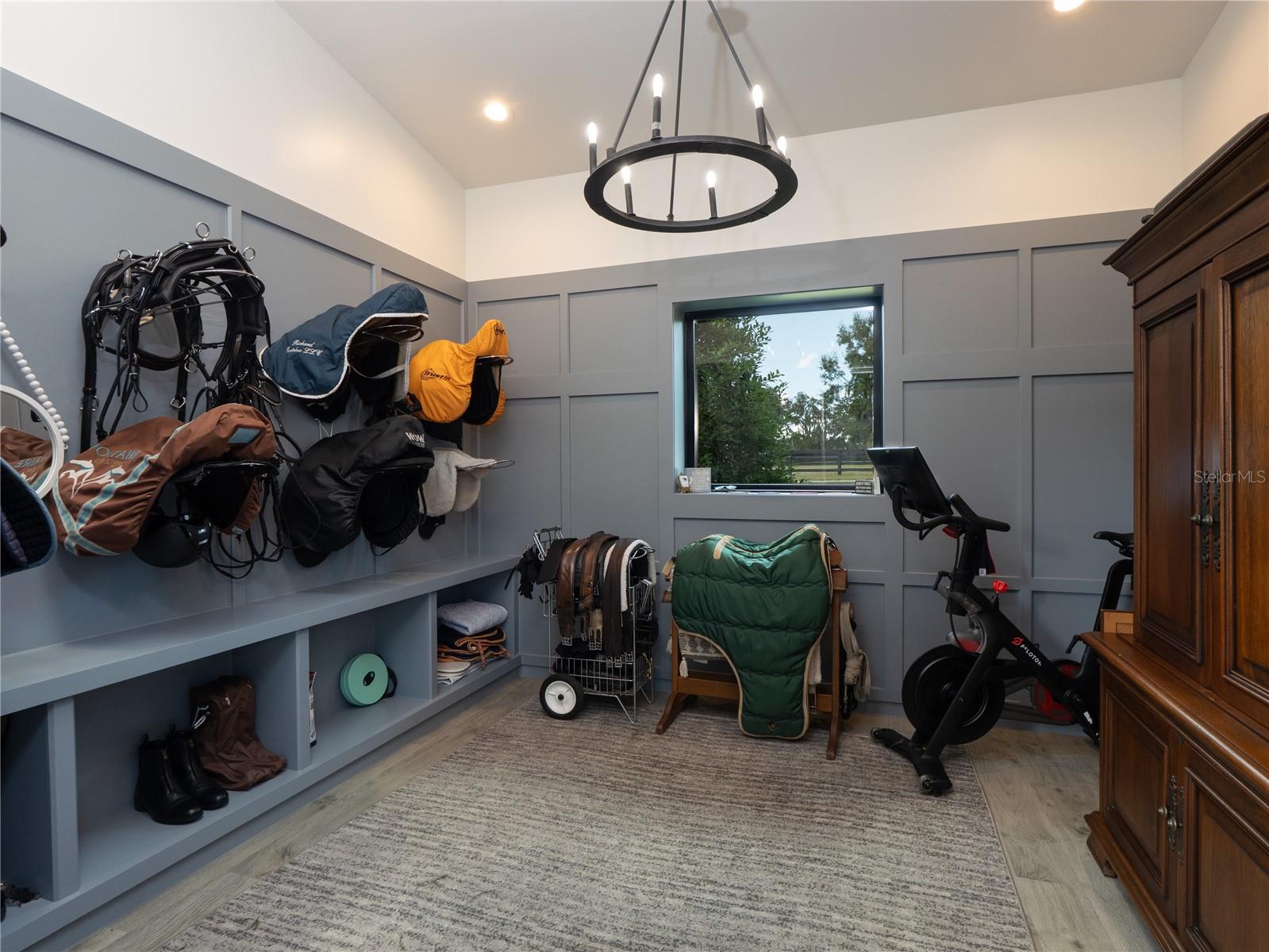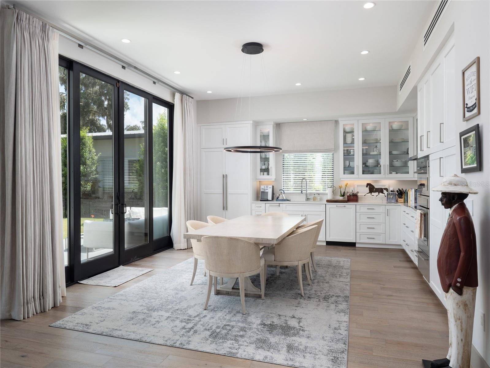 Tucked away on approximately 131 acres and just 10 minutes from HITS and 15 minutes from the World Equestrian Center, this private horse farm offers a refined equestrian setting with thoughtful design and timeless character. Fully fenced and framed by mature oak canopies, the property is enhanced by manicured landscaping, elegant palm trees, rolling green pastures, and a small pond, all introduced by a striking gated entrance that sets the tone upon arrival. The residence sits at the heart of the farm, flanked by barns on either side, creating a balanced and functional layout. A European-style barn includes 12 stalls, a tack room, and a wash bay, while the second barn serves as an equipment barn and features a feed room, dedicated office space, kitchenette, full bathroom, and laundry area, providing excellent support for daily farm operations. Surrounding paddocks are thoughtfully arranged and fully fenced, equipped with run-in sheds, offering comfort and convenience for horses throughout the property. Inside the home, the living room flows seamlessly into a wine and bar area, enhancing the home’s natural flow and social spaces. The open kitchen offers updated appliances and abundant cabinetry, while the two-bedroom, two-bathroom layout includes walk-in closets and sliding glass doors in each room, allowing natural light to pour in and creating a seamless connection between the indoors and the surrounding landscape. A distinctive open back porch with a seating area provides the perfect vantage point to unwind and take in the peaceful farm views, making this property a rare opportunity to own a serene equestrian retreat.
