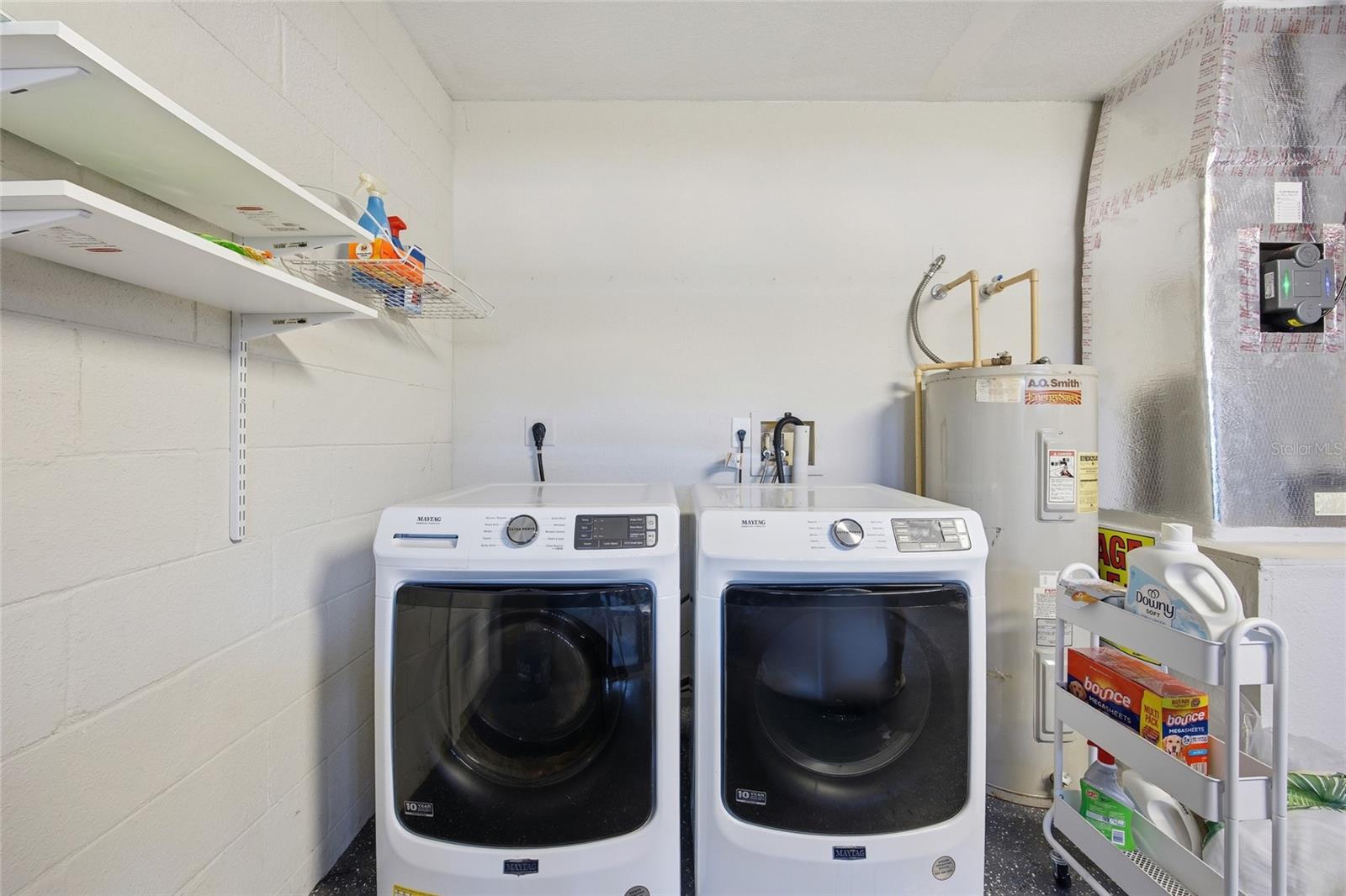 Welcome to 2428 SW 147 Place Rd in Ocala's Marion Oaks. This exceptional, move in ready home is packed with high value upgrades that truly outshine many new builds. The spacious 4-bedroom, 3-bathroom layout offers a bright open concept design with multiple living and dining areas, perfect for entertaining, working from home, or multi-generational living. A split bedroom plan provides privacy, including two suite style bedrooms (with a jacuzzi tub in the primary) ideal for guests or extended family. Enjoy major peace of mind with extensive improvements including a new roof (2022), new windows and sliding door (2022), new AC system and new ductwork (2022), and gutters (2022). The kitchen features newer appliances including multi-functional oven/range with air fryer and convection settings. (2022), dishwasher (2022), refrigerator (2023), and an upgraded pull-down faucet (2022). Commercial grade Maytag washer and dryer are included. Updates continue with upgraded lighting, a dining chandelier, and ceiling fans throughout, including a newer living room fan. The guest bathroom was upgraded with a Luxury Bath walk-in shower (2022). Additional comfort upgrades include cordless blinds (2023) and an insulated roof over the front porch (2023). Security and select smart technology features add huge value, including a 16 channel CCTV system with 10 4K cameras and 2-way audio, front cameras with spotlights, Ring video doorbell, smart Wi-Fi door lock keypad, Wi-Fi garage door opener (2022), and smart switches for select lighting. A whole house water filtration system (2024) with warranty provides clean, great tasting water throughout. Step outside to a fully fenced (8 ft. chain link) backyard with an 8x16 storage shed; electricity ready (2022), perfect for a workshop, hobbies, or extra storage. Recent garage updates include new springs, bearings, and door wheels (2025). Conveniently located near shopping, dining, medical centers, and major highways. Schedule your showing today.