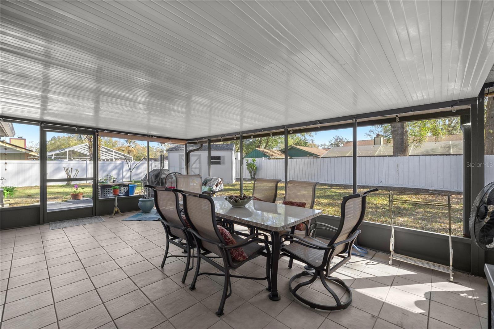 Welcome to 5565 SE 37th Place in Ocala, Florida, a beautifully updated 4-bedroom, 2-bathroom home in the desirable Indian Pines community offering space, comfort, and thoughtful upgrades in a prime Southeast Ocala location. Situated on an oversized 0.37-acre corner lot, this property provides both privacy and functionality while being conveniently located near shopping, dining, medical facilities, and easy access to downtown Ocala and major roadways. Inside, this nearly 2,200 square foot home welcomes you with an open, bright layout and a massive living room centered around a cozy wood-burning fireplace, creating the perfect space for gatherings or relaxing evenings at home. The home has been tastefully refreshed with new luxury vinyl plank flooring throughout (2024) and brand-new carpet in the bedrooms, offering a modern feel while maintaining warmth and comfort. The kitchen features granite countertops, light cabinetry with soft-close drawers, and a skylight that fills the space with natural light, making it a welcoming hub for everyday living and entertaining. The primary suite is spacious and inviting, complete with chair rail accent walls that add a touch of character. The oversized primary bathroom offers dual vanities, a large walk-in shower, and a generous walk-in closet, creating a comfortable retreat at the end of the day. A huge fourth bedroom or flex room—complete with a closet—offers endless possibilities as a guest suite, office, media room, or hobby space. One of the standout features of this home is the expansive screened enclosed patio, providing additional space perfect for entertaining, relaxing, or enjoying Florida’s beautiful weather year-round. Step outside to the fully usable backyard featuring paver landscaping, irrigation with an advanced timer system, a double side gate for easy storage access, and a powered storage shed, ideal for tools, hobbies, or extra workspace. The grilling area is already plumbed for gas, making outdoor cooking and hosting effortless. Additional upgrades add even more value and peace of mind, including a 2022 roof, tankless hot water system installed in 2025, new gutters with gutter guards, and a protector installed on the electrical panel. The three-car garage offers extensive shelving and storage, making it perfect for vehicles, equipment, or workshop space. If you’re searching for a move-in-ready Ocala home with modern updates, generous living space, and a large lot in Southeast Ocala, 5565 SE 37th Place offers the perfect combination of location, upgrades, and lifestyle in one exceptional property.