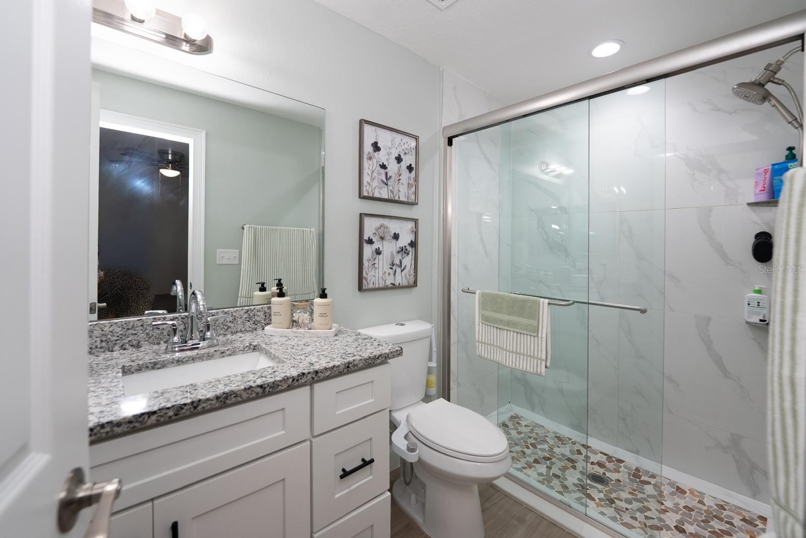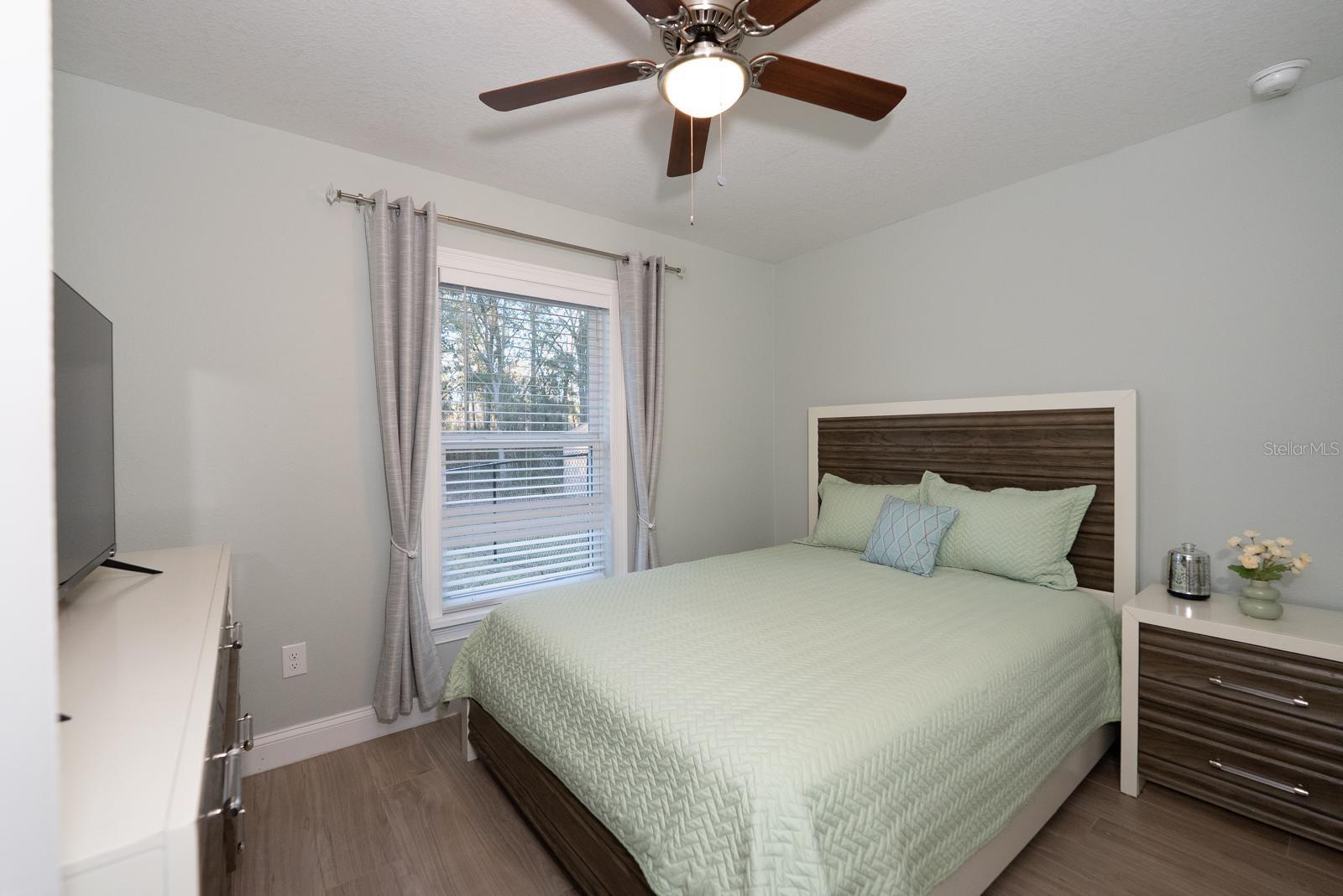 Discover the perfect blend of comfort and modern living in this cozy and beautifully maintained home that shows better than new. The interior features porcelain tile flooring throughout, high ceilings, and large windows that fill the home with natural light, creating a bright and inviting atmosphere. The home offers 3 comfortable bedrooms and 2 well-appointed bathrooms, including a spacious primary suite with a private bathroom and a generous walk-in closet. The kitchen is the heart of the home, featuring granite countertops, a classic subway tile backsplash, stainless steel appliances, and a large island that works perfectly for everyday living, meal preparation, and gathering with family and friends. Recent improvements include newly installed gutters, a 5.5 -foot chain-link metal fence providing security and enclosure, and a water softener system. Electric and water connections are already in place for a future outdoor kitchen, offering great potential for outdoor entertaining.