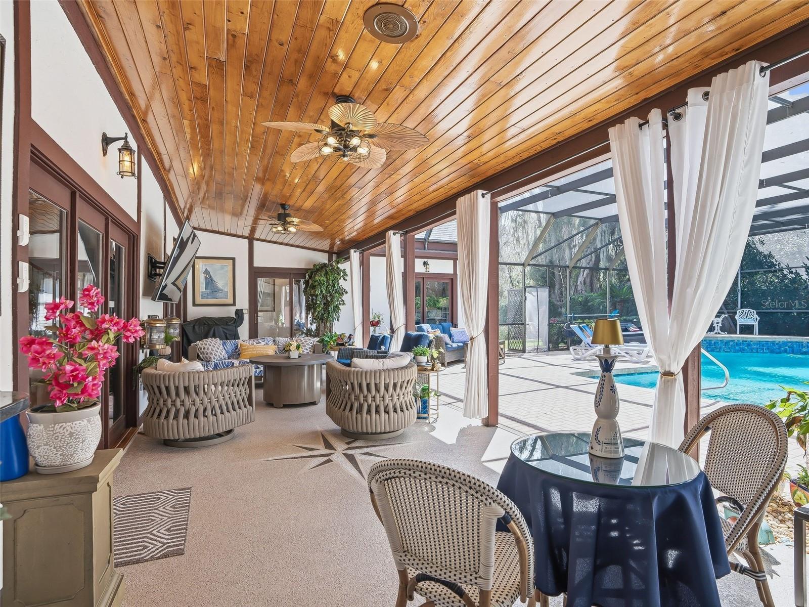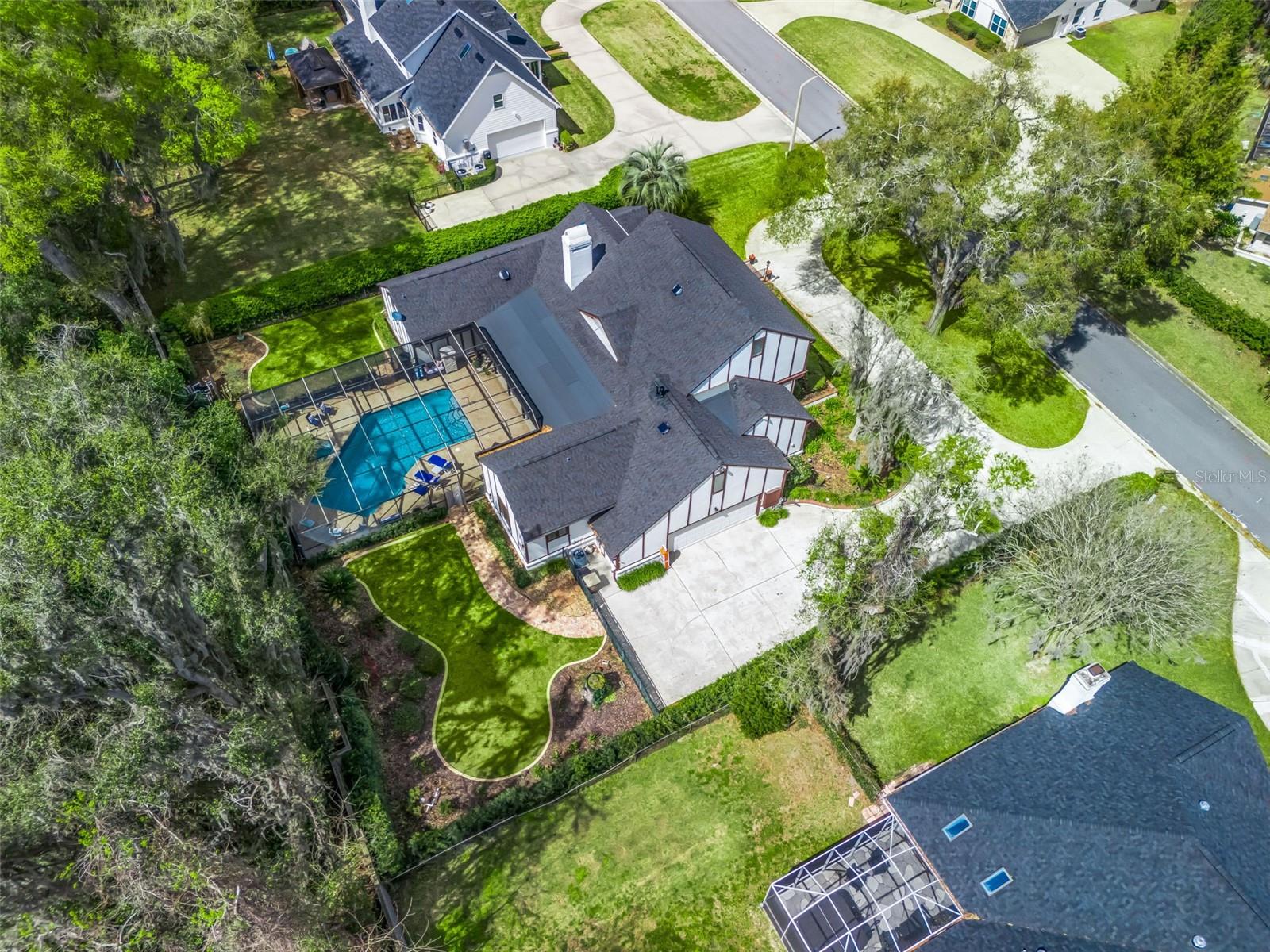 Beautifully updated and renovated traditional Tudor style residence in the exclusive guard-gated community of Laurel Run - just minutes from all major conveniences. Situated in the back of the community on a spacious, elevated lot, the home welcomes you with a circular driveway, mature landscaping and covered front porch finished with brick flooring, stained wood ceiling and stunning leaded glass surrounding the door with stained glass. The foyer features rich hardwood flooring which carries throughout the first floor. The expansive living space offers gorgeous tongue and groove wood vaulted ceiling with stained glass clerestory window, floor to ceiling brick fireplace with gas logs on remote, a wet bar with quartzite countertops, ice maker and sink complete with glass washer. Two sets of doors lead from the living space to the outdoor oasis boasting an expansive paver deck leading to the recently refinished oversized saltwater pool - all recently re-screened. The kitchen has been completely renovated with all new cabinetry, quartz countertops, stainless steel appliances including built-in oven and wine cooler, plus additional built-in storage in the breakfast nook. Adjacent is the formal dining room and beyond, across the foyer, is the large game room that is the perfect entertainment space complete with pool table included! The primary suite is sure to impress offering access to the pool deck, a walk-in closet with custom built-ins, and completely renovated ensuite bathroom with dual sink vanity, walk-in shower and dedicated washer and dryer. On the opposite side of the home, the junior suite - accessible through a hidden door making it inconspicuous while entertaining - also offers pool access, a full ensuite bathroom and custom walk-in closet. Upstairs, you will find all new carpeting with two additional spacious bedrooms with walk-in closets and a jack & jill style bath with dual sinks and separate water closet with walk-in shower and separate tub. At the end of the hallway upstairs is a custom wood built-in nook - a perfect retreat for reading and relaxing. There is also a large laundry room with additional full-size refrigerator, attached oversized 2-car garage with storage, EV charging station, shed with workshop, generator, fully fenced backyard and well for irrigation. In addition to the cosmetic updates, the major systems have all been updated including a new roof in 2022 and newer HVACs in 2024. Full list of updates and features available. Please enjoy the attached video and 3D tours.