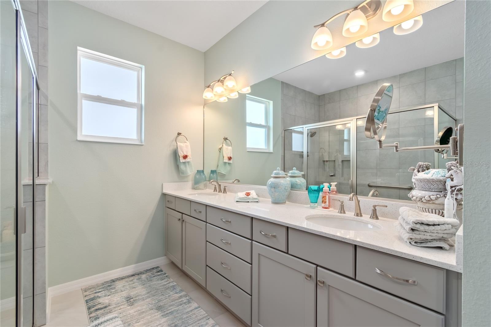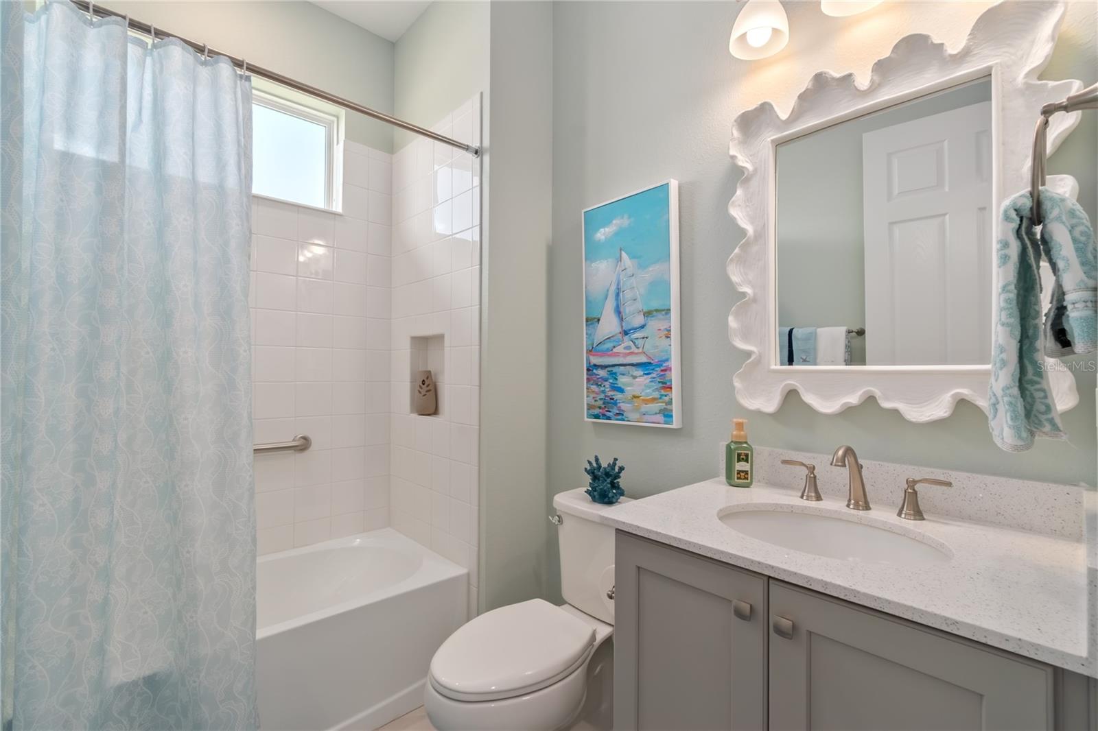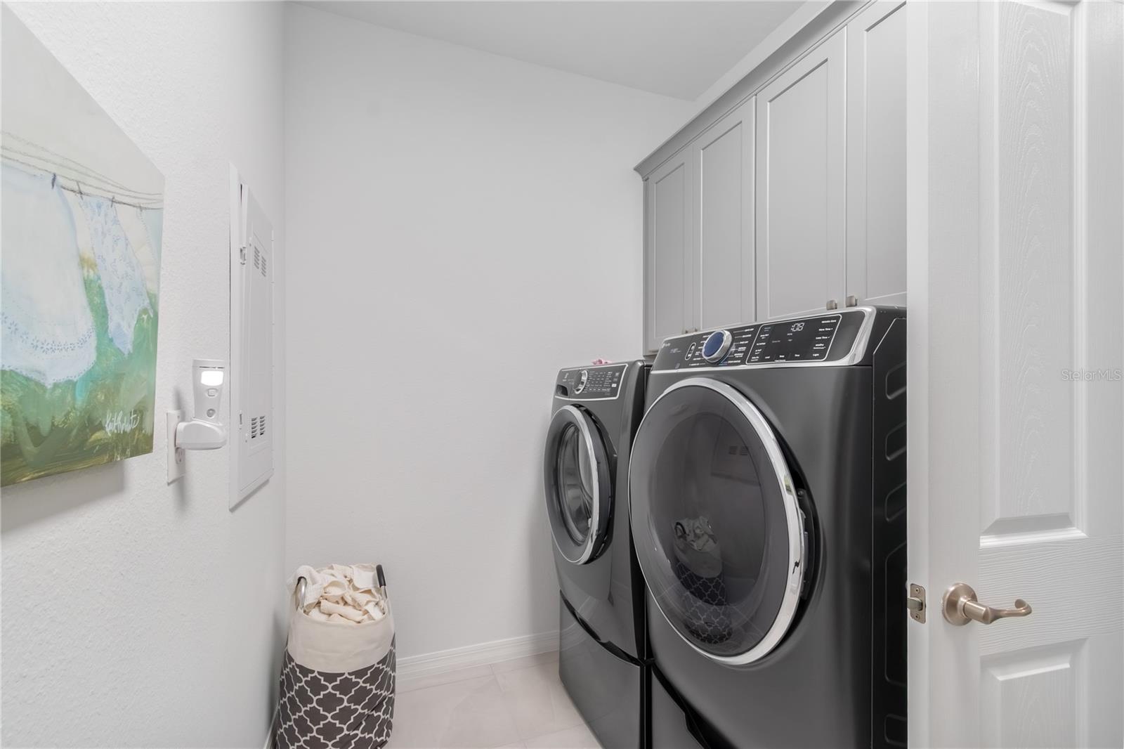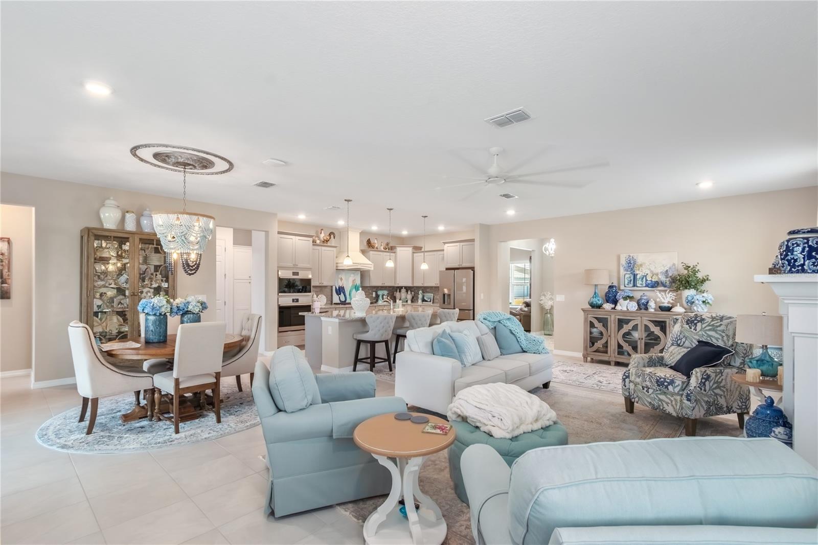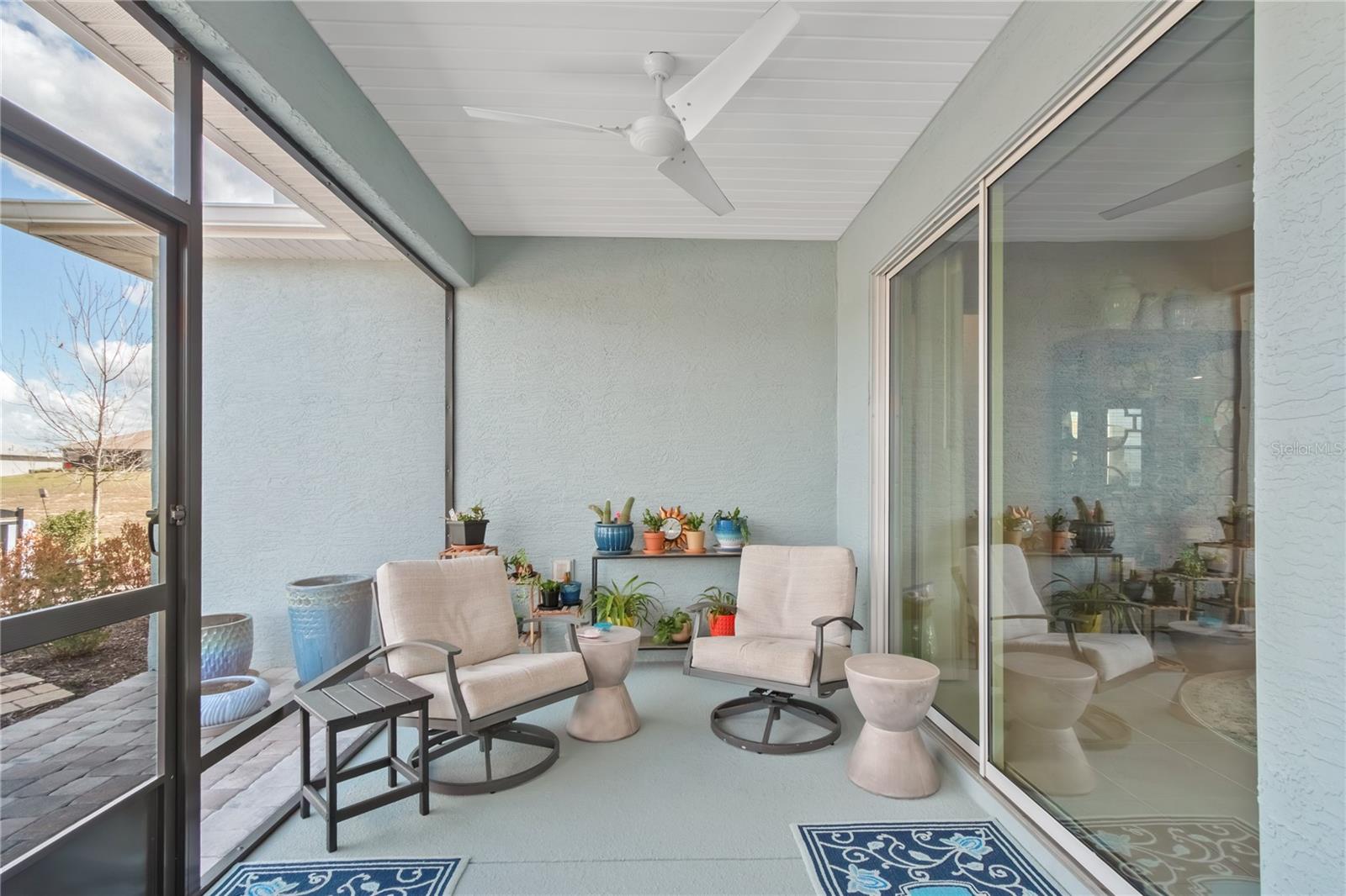 Stunning 2-bedroom, 2-bath home with a versatile flex room, ideally situated on a private lot offering a tranquil setting. The beautifully hardscaped backyard features a paver patio and outdoor grilling area, perfect for relaxing or entertaining. Inside, the gourmet kitchen is a standout with GE Café appliances, a custom range hood, granite counters, staggered cabinets with pot drawers, and tile floors throughout the home. The living area is enhanced by a cozy electric fireplace and the home has custom window treatments throughout. The extended garage features epoxy floors, a water line for a second refrigerator and added functionality. Additional upgrades include gutters, a water softener, and an alarm system, making this home as practical as it is elegant.