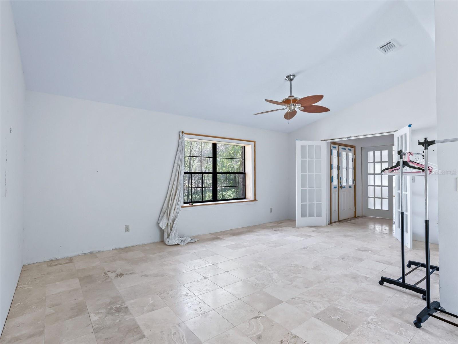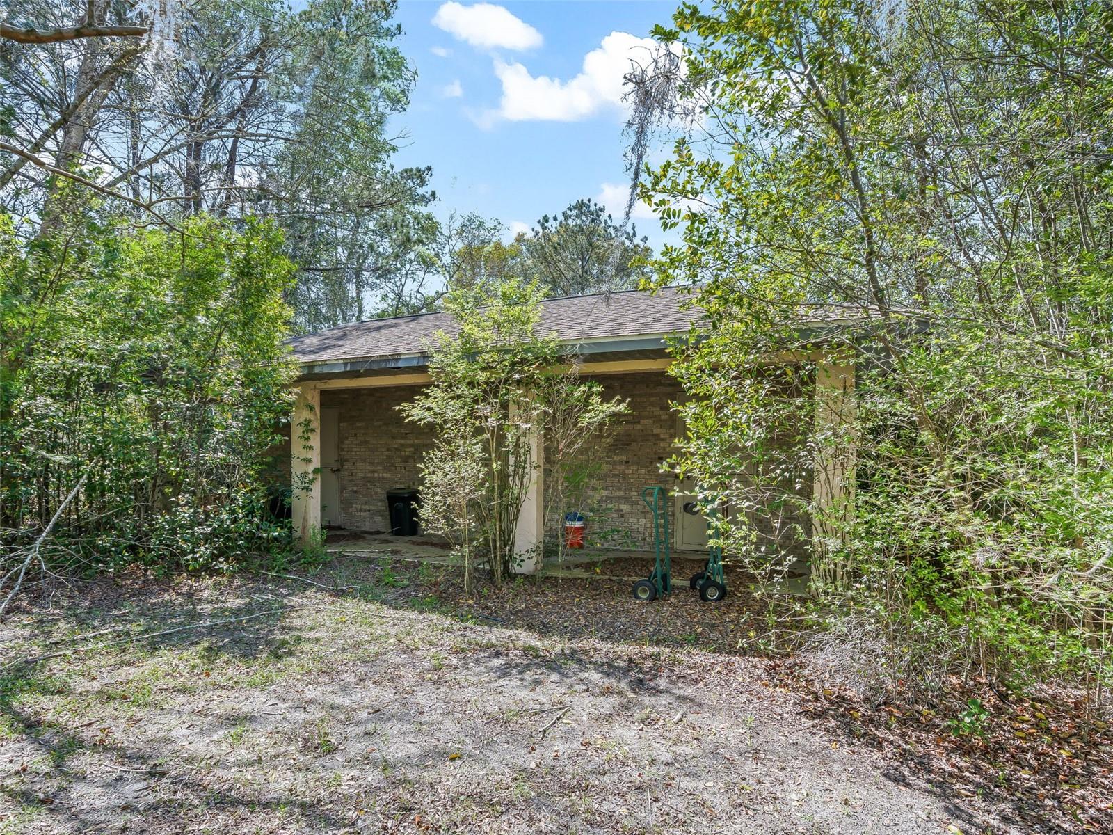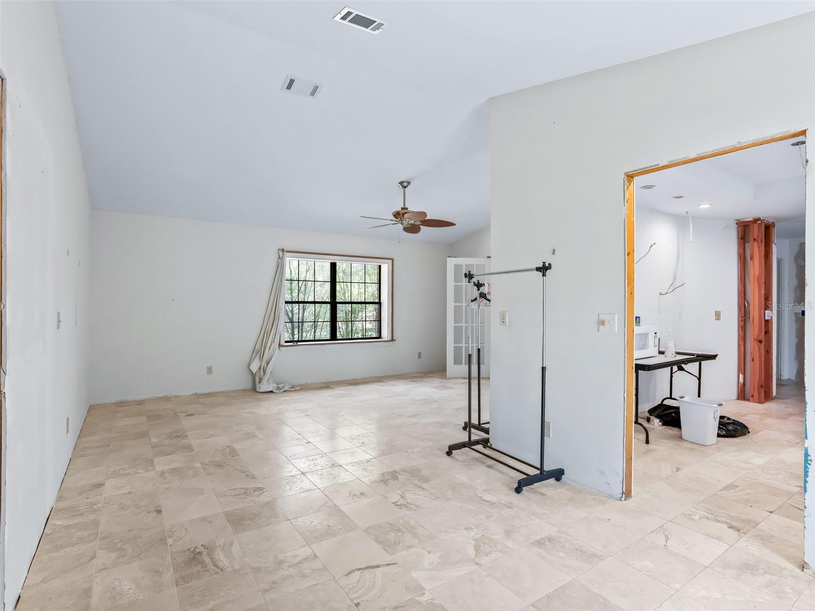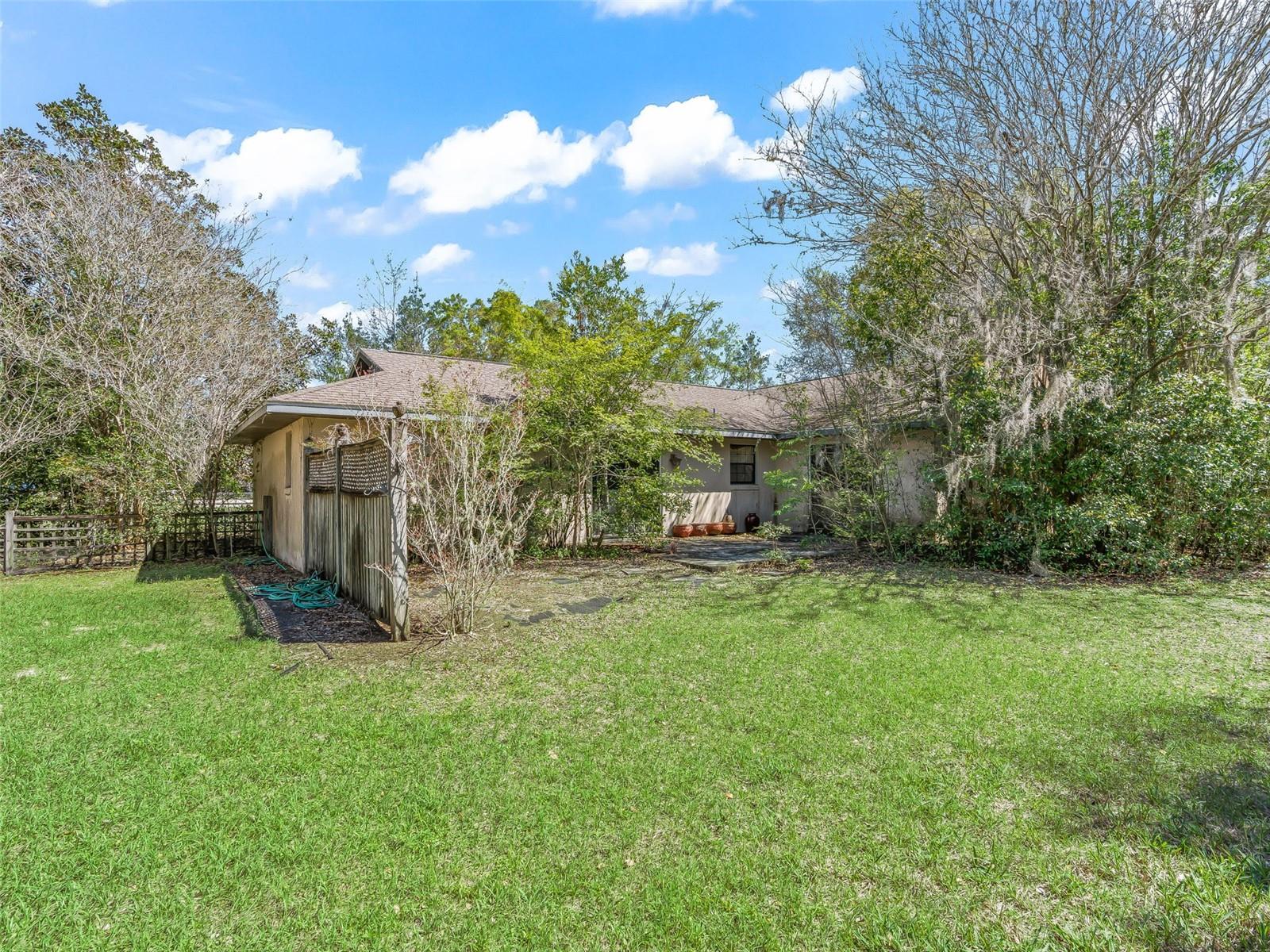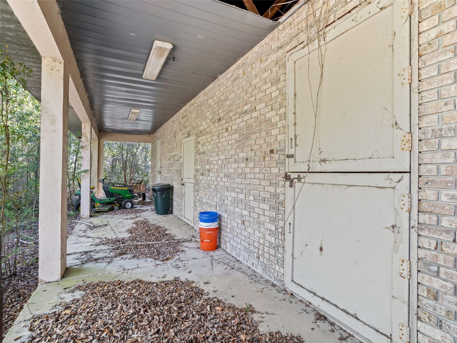 Bring your dream home and mini farm vision to life at this 3+ acre property in the heart of Southwest Ocala. ZONED A1 & NO HOA! Just minutes to all major conveniences yet tucked away on a quiet, paved road. The home has been partially renovated with travertine flooring throughout most of the home. The semi-open layout offers a family room open to the dining space that wraps around into the kitchen ready to finish out to your liking. Beyond is a living space complete with brick fireplace and sliding glass door to the back patio. The split floorplan offers a primary suite with ensuite bathroom and walk in closet. On the opposite side of the home is a full bedroom and bathroom, a full laundry/mud room and 2 car garage conversion with a 3rd bedroom. Could be a great multi-gen or family setup with multiple living spaces. The backyard features a brick shed-row style barn with 2 stalls and a tack room. Bring your contractor and vision and make this your perfect mini farm in an excellent location! Zoned A1 with NO HOA!