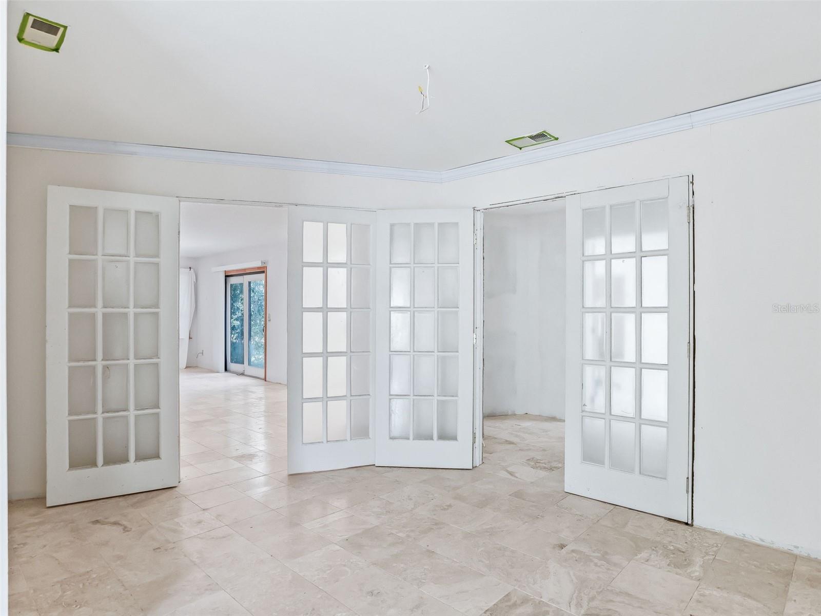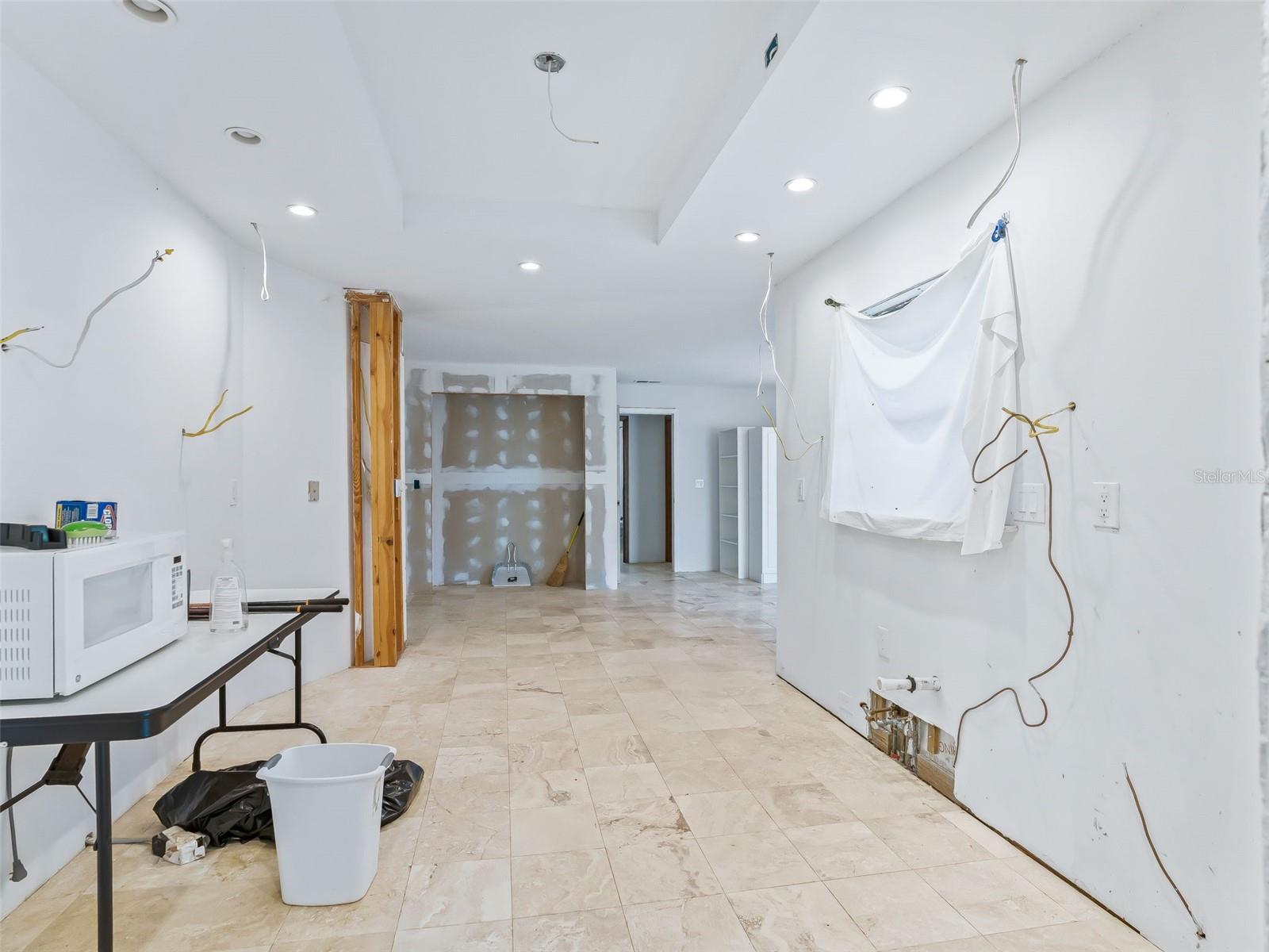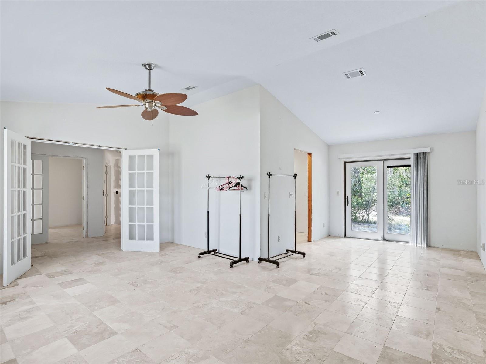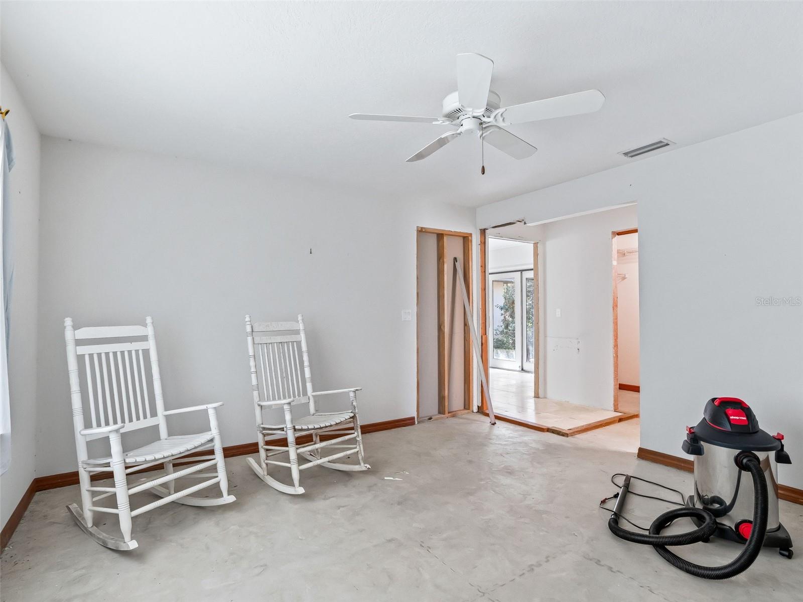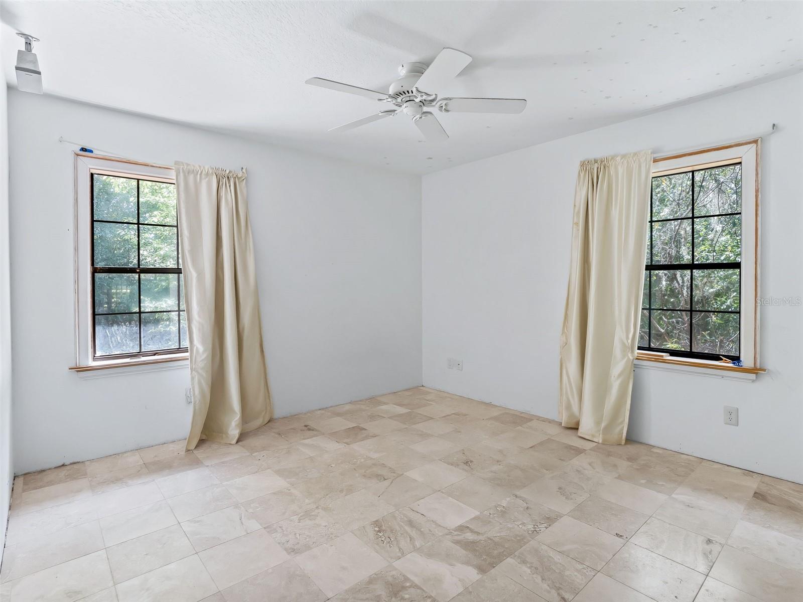 Bring your dream home and mini farm vision to life at this 3+ acre property in the heart of Southwest Ocala. ZONED A1 & NO HOA! Just minutes to all major conveniences yet tucked away on a quiet, paved road. The home has been partially renovated with travertine flooring throughout most of the home. The semi-open layout offers a family room open to the dining space that wraps around into the kitchen ready to finish out to your liking. Beyond is a living space complete with brick fireplace and sliding glass door to the back patio. The split floorplan offers a primary suite with ensuite bathroom and walk in closet. On the opposite side of the home is a full bedroom and bathroom, a full laundry/mud room and 2 car garage conversion with a 3rd bedroom. Could be a great multi-gen or family setup with multiple living spaces. The backyard features a brick shed-row style barn with 2 stalls and a tack room. Bring your contractor and vision and make this your perfect mini farm in an excellent location! Zoned A1 with NO HOA!