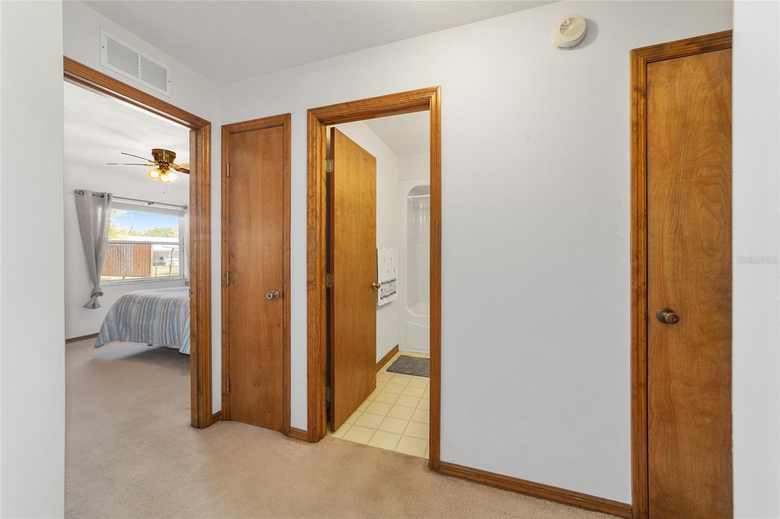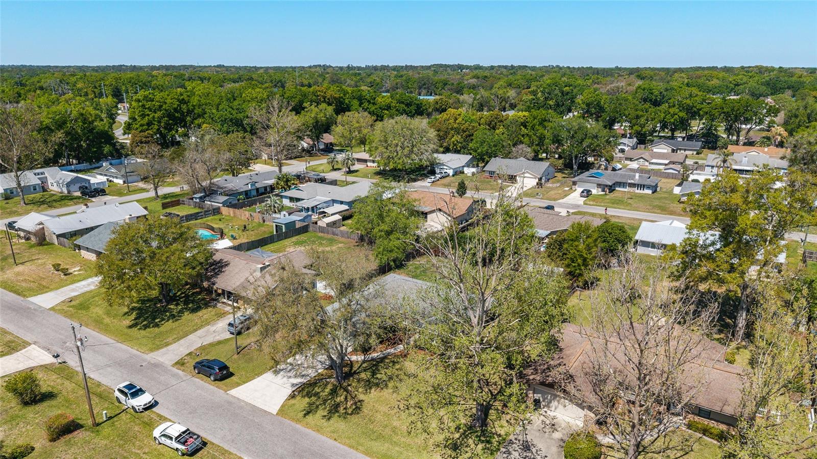 Welcome to this charming and well-maintained 3-bedroom, 2-bath home located in one of Southeast Ocala’s most established and sought-after neighborhoods. Built in 1996 as a former Irvin model home, this property offers thoughtful design, spacious living, and timeless appeal. Step inside to a bright and open living area featuring cathedral ceilings that create an airy, expansive feel, while the bedrooms with higher ceilings for added comfort throughout. The split-bedroom layout provides both privacy and functionality, and the interior laundry room adds everyday convenience. The kitchen and living spaces flow seamlessly, making this home perfect for both relaxing and entertaining. One of the bedrooms has been uniquely converted into a cozy office or workspace, formerly used as a home salon, complete with a sink and mirror area. Real hardwood floors in this room add warmth and character, making it a standout feature of the home. Outside, enjoy a spacious backyard shaded by mature trees, offering a peaceful, park-like setting. The patio area includes a built-in grill and firepit—perfect for gatherings or quiet evenings at home. A like-new shed (2023) provides additional storage, and the extra-wide driveway allows for ample parking. Ideally located near schools, shopping, restaurants, parks, and medical facilities, this home combines comfort, convenience, and location in one wonderful package. Roof (2020), HVAC (2017), LVP Flooring in kitchen and foyer (2025), Exterior stucco and paint (2025).