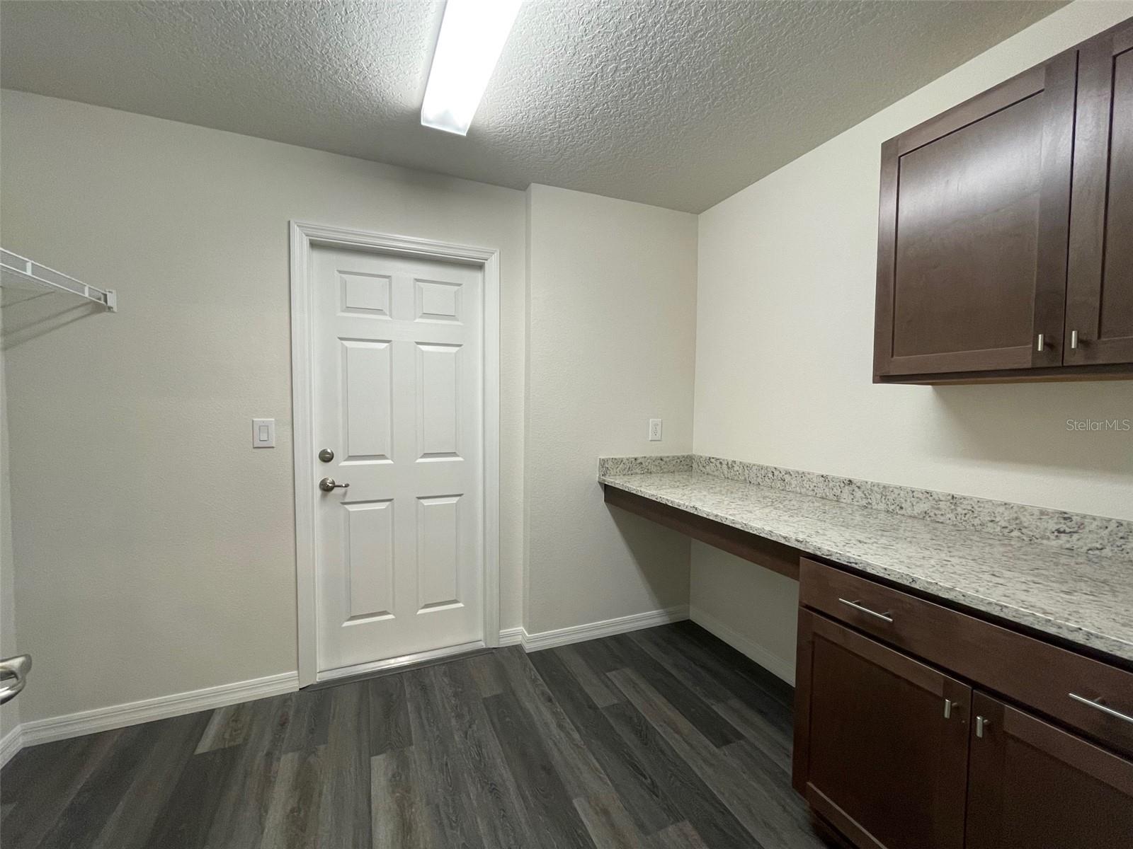 New home ready now! Open floor plan with 4 bedrooms, 2 full bathrooms and a 2-car garage. Granite countertops throughout the home including the inside laundry room. Kitchen has a large island with lots of cabinets and pantry. GE stainless steel appliances. Sliding glass doors off the great room lead out to the covered lanai and backyard. Fully sodded and landscaped yard with an irrigation system. The guest side of the home has 3 bedrooms and a guest bathroom with dual sinks! The Owner suite has a walk-in closet with the owner bath featuring a tub/shower combo, dual sinks and a private toilet closet. Home sits on .23 acres.