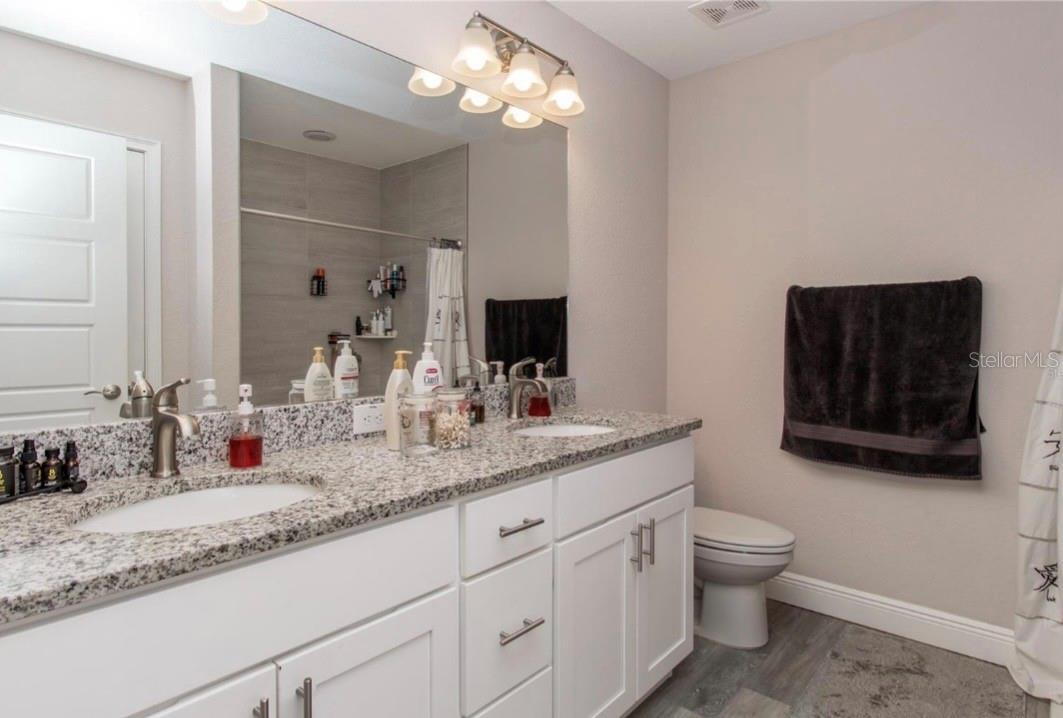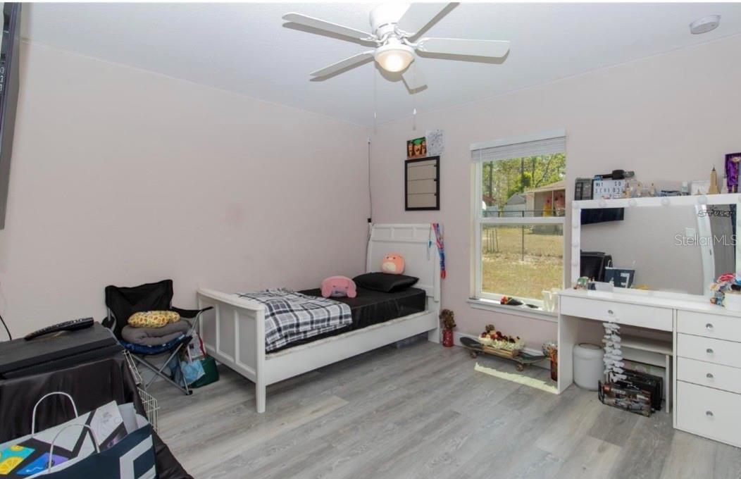 Welcome to this exquisite Hemlock II residence, a masterfully designed modern home nestled on a serene cul-de-sac in the sought-after Silver Springs Shores community. Built in 2022, this meticulously maintained 3-bedroom, 2-bathroom home offers 1,453 square feet of living space with an impressive open-concept floor plan accentuated by soaring vaulted ceilings. The gourmet kitchen is a chef's delight, showcasing elegant granite countertops, premium soft-close all-wood cabinetry, and a complete appliance suite including dishwasher, microwave, and range. Luxury vinyl plank flooring flows seamlessly throughout the entire home — absolutely no carpet — creating a cohesive, upscale aesthetic that is both stylish and effortless to maintain. The expansive owner's suite is a private retreat featuring a distinguished tray ceiling, generous walk-in closet, dual vanities, and a beautifully appointed tiled walk-in shower. A curated designer lighting and plumbing package elevates every room with refined finishes throughout. Step outside to the oversized 620 sq ft concrete patio, perfect for entertaining or simply enjoying the expansive backyard on this generous 0.32-acre lot. The split-bedroom floor plan ensures privacy for all, while the attached 2-car garage provides ample storage and convenience. This energy-efficient home also features an owned solar panel system, reducing utility costs significantly. No HOA and no CDD fees. Pets welcome. This is modern, move-in ready living at its finest — schedule your private showing today!