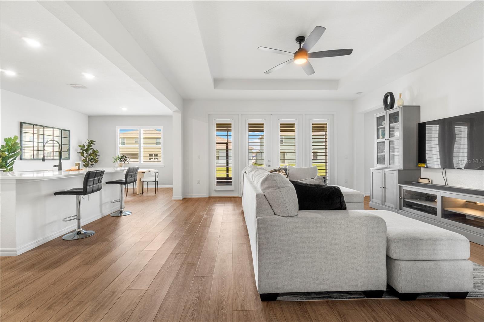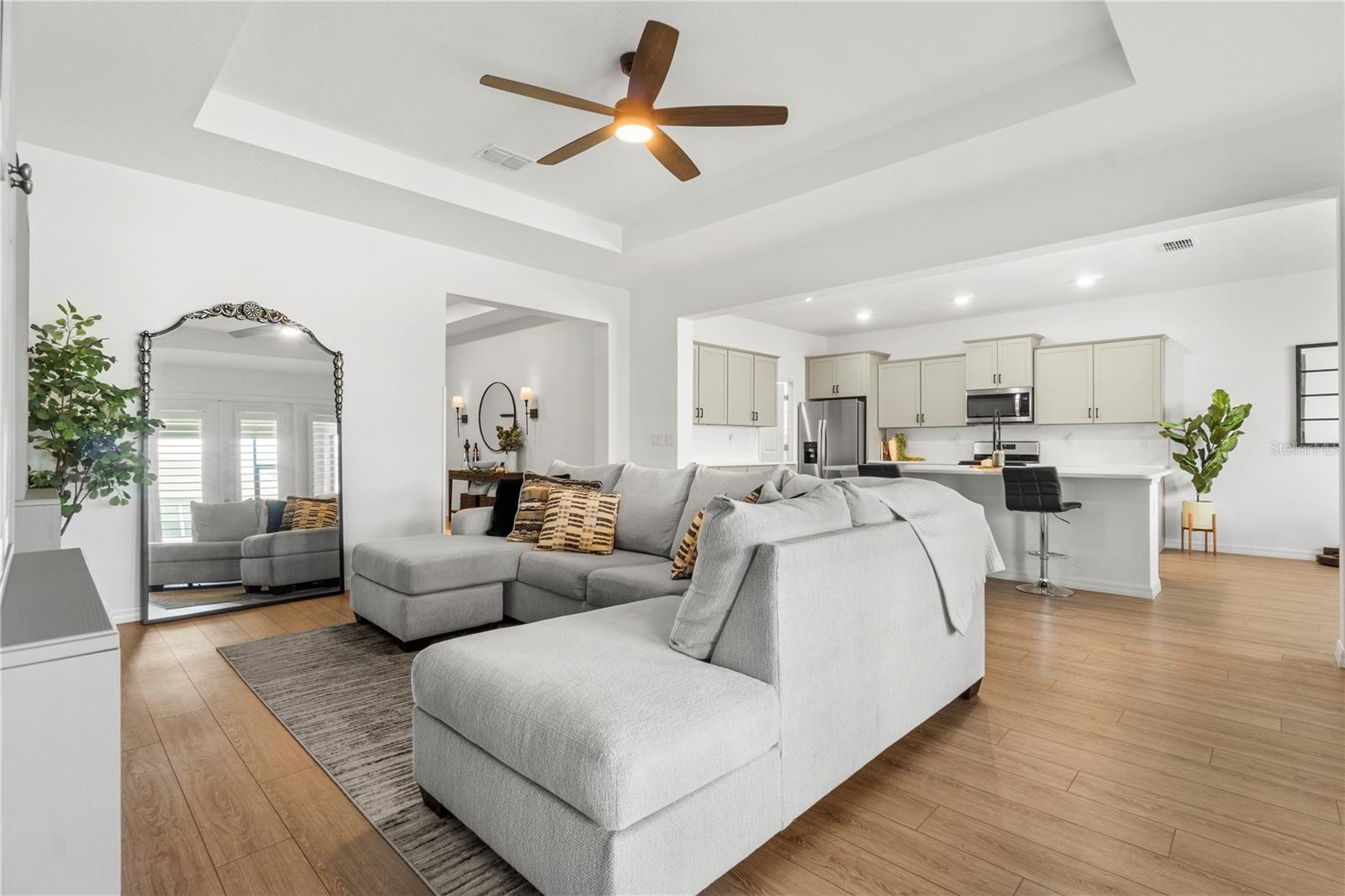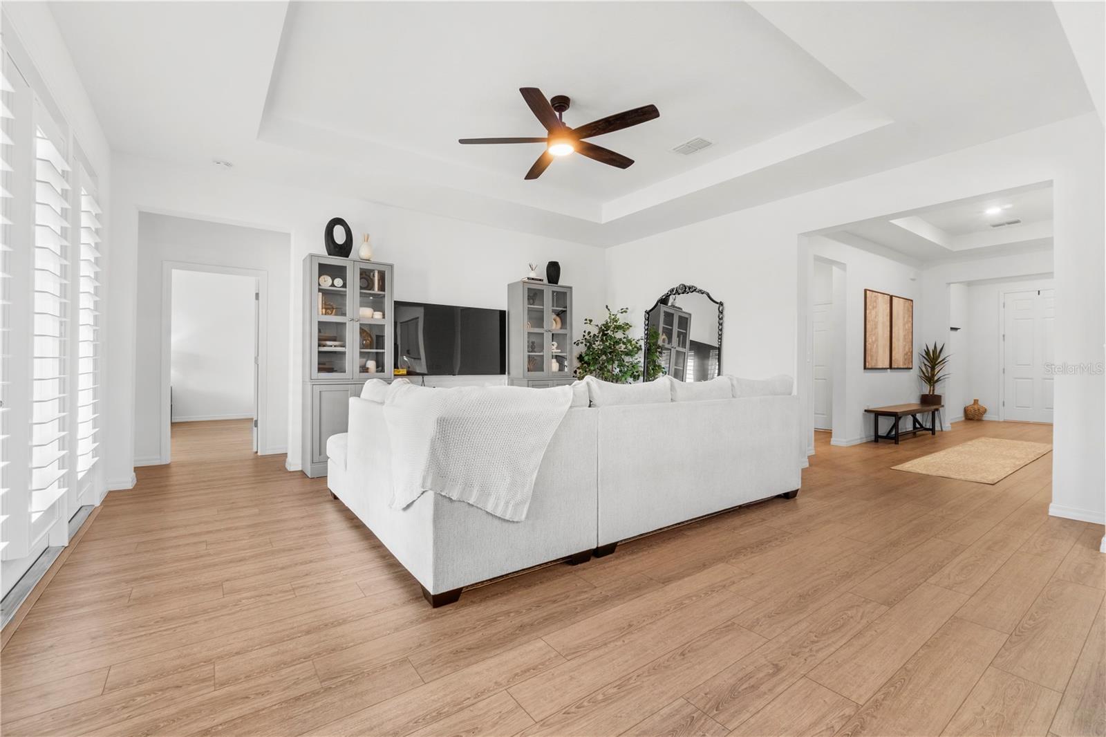 Move-In Ready Dream Home — Modern Comfort Meets Classic Charm Why wait to build when this beauty is ready and waiting? Step onto the expansive front porch and instantly feel at home. Inside, you’ll love the large open floor plan designed for both comfort and entertaining. The gourmet kitchen is a chef’s delight, featuring quartz countertops, a butler’s pantry, countless cabinets for storage, and stylish finishes that make cooking a pleasure. With 3 spacious bedrooms, 2 large bathrooms, and a 3-car garage, this home offers space that’s both functional and inviting. Elegant trey ceilings, luxury vinyl plank flooring throughout, and plantation shutters in every room add the perfect finishing touches. Unwind on the large screened lanai, perfect for relaxing with family or friends. This move-in ready gem truly has it all—modern luxury, thoughtful design, and timeless style. Additional photos coming soon!
