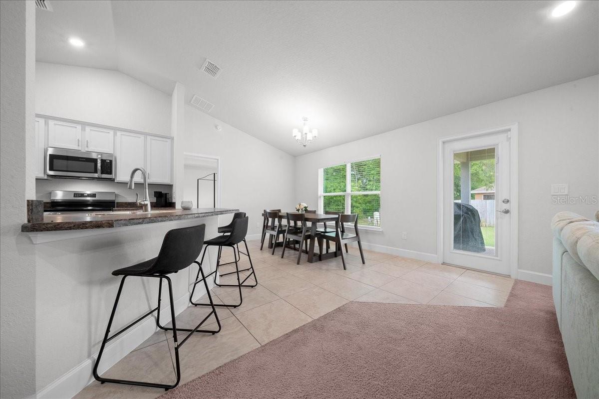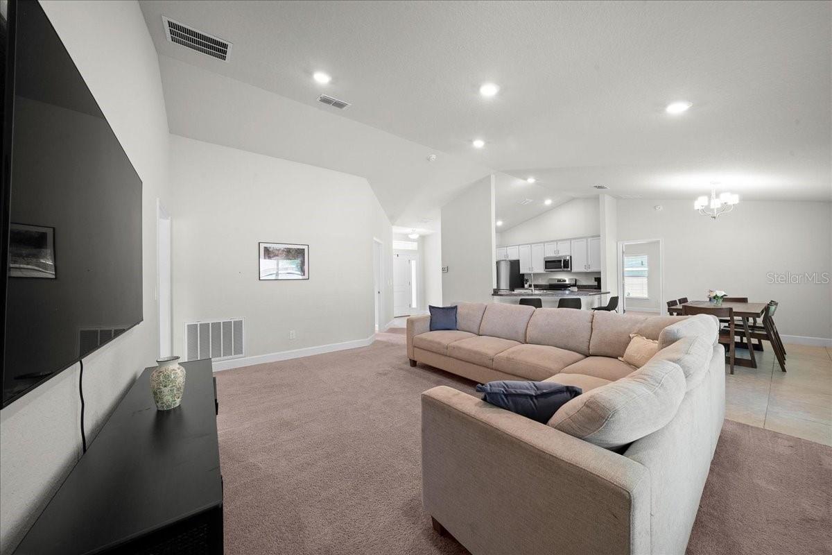 Welcome to this beautifully maintained, nearly new home in the Silver Springs Shores community. Built just 2 years ago, this block home sits on a peaceful, oversized corner lot—offering extra space, privacy, and no HOA or CDD fees. This popular 1755 floor plan features 4 bedrooms, 2 bathrooms, and a 2-car garage, all designed with a functional and comfortable layout. Step inside to a formal foyer with a coat closet, leading into a spacious living and dining area with high ceilings that create an open, airy feel. The kitchen is well kept and equipped with stainless steel appliances, making it both practical and inviting for everyday living. The primary bedroom is spacious and features tray ceilings, creating a comfortable retreat. The primary bathroom includes double vanities, a large tiled walk-in shower (no tub), a private water closet, linen closet, and walk-in closet. The secondary bathroom offers a convenient shower/tub combination. Additional features include a laundry room just off the kitchen leading to the garage (washer and dryer included), a covered 14x10 back patio with built-in mini blinds in the glass door, and a covered front porch. For peace of mind, the home includes a transferable builder’s warranty and a built-in TAEXX pest control system. The oversized corner lot is a standout—offering added space, flexibility, and a quiet setting. Schedule your private showing today.