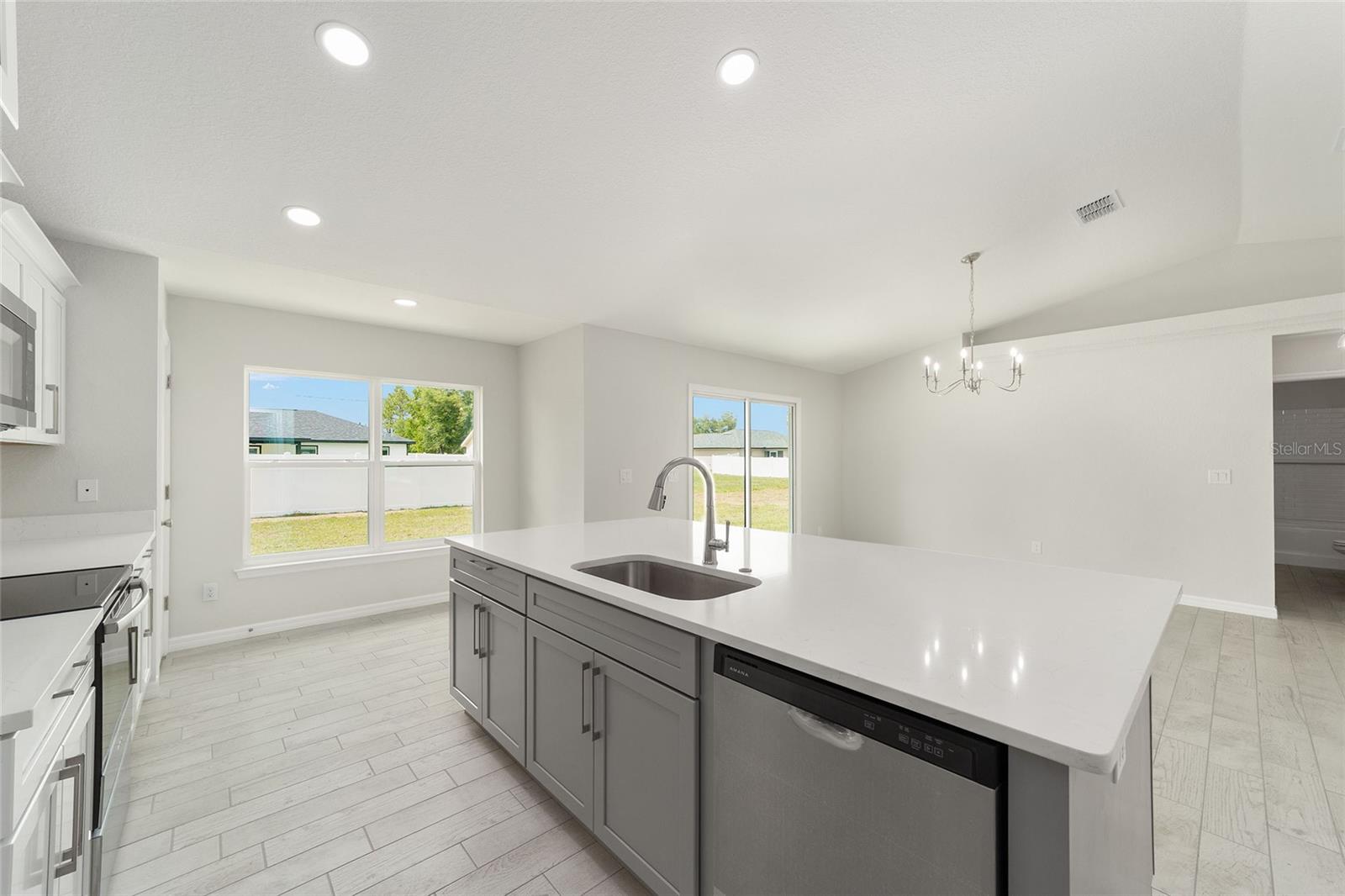 This split plan is open, light & bright. As you walk through the front door of the home, you feel the openness with cathedral ceilings in the living room, dining room, and foyer. The kitchen features stylish cabinetry and quartz countertops and comes complete with a new range, microwave, and dishwasher. The charming nook is the perfect spot to enjoy your morning coffee. Tile floors throughout the house help with easy maintenance. There is a fully tiled walk-in shower and dual sinks in the en-suite bath. Do laundry with ease in the air-conditioned laundry room. This home rests on just under a 1/4 acre lot ~ enough room for the family & pets to play, but not too much yard work.Silver Springs Shores offers easy access to restaurants, shops, healthcare facilities, art galleries and local events, plus outdoor recreation opportunities like parks, lakes, biking, swimming, hiking, kayaking and much more. The Builder is including a 1 year full warranty and a 2-10 home warranty! Any dimensions listed are approximate. Photos/Virtual Tour are to show interior and exterior colors and finishes and may or may not be of this actual listing. Garage orientation and floor plan may vary for actual home. BUILDER WILL PAY UP TO $4000.00 TOWARDS BUYERS CLOSING COSTS WITH FULL PRICE OFFER!