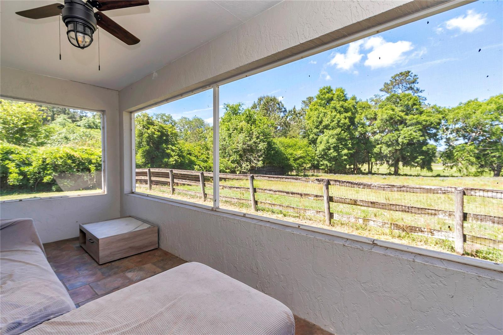 Discover this adorable three-acre income-producing mini farm just 12 minutes from the World Equestrian Center (WEC), a rare find in a prime Ocala location! Tucked away off the road for ultimate privacy, this charming three-bedroom, two-bath split floor plan block home offers a bright, airy feel with a cathedral ceiling in the main living area and an inviting open layout. The home features a new roof, updated baths and easy-to-maintain porcelain ceramic tile flooring throughout. The open kitchen is functional and inviting, complete with a gas stove, ideal for those who love to cook. The spacious primary suite includes French doors leading to the screened-in back porch and a walk-in closet. A large bay window in the front of the home frames peaceful views of the front paddock, filling the space with natural light and adding to the home's warm, welcoming character. Go outside to enjoy the screened-in back porch overlooking a scenic paddock, with additional farm views beyond, ideal for relaxing after a day at the barn. The property includes two generously sized paddocks (with room to divide), along with a two-stall barn featuring a tack room and large shaded overhang for your horse's comfort. Whether you're looking for a private equestrian retreat or a turnkey income-producing property, this peaceful oasis offers versatility and location, just minutes from all Ocala has to offer.