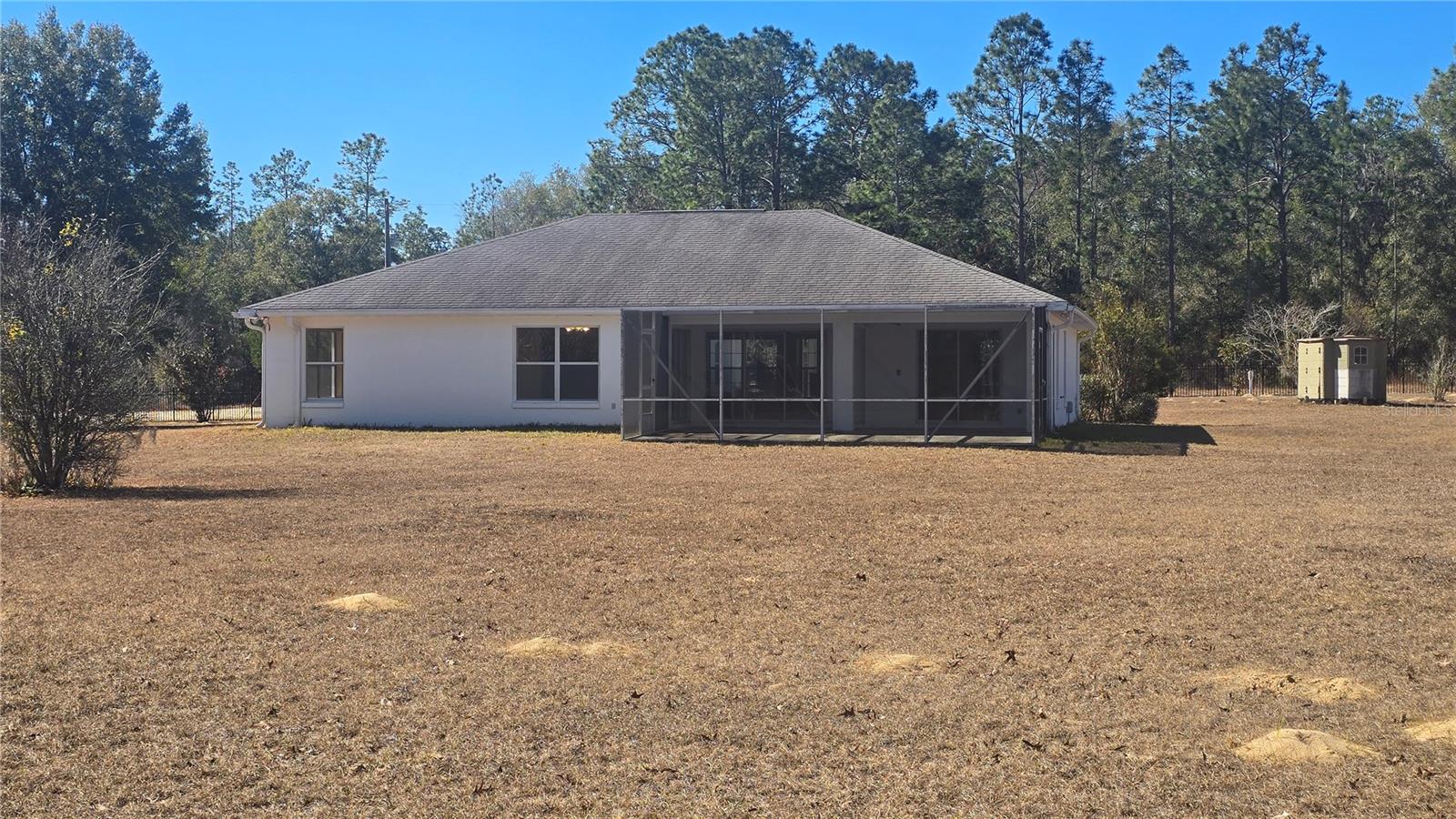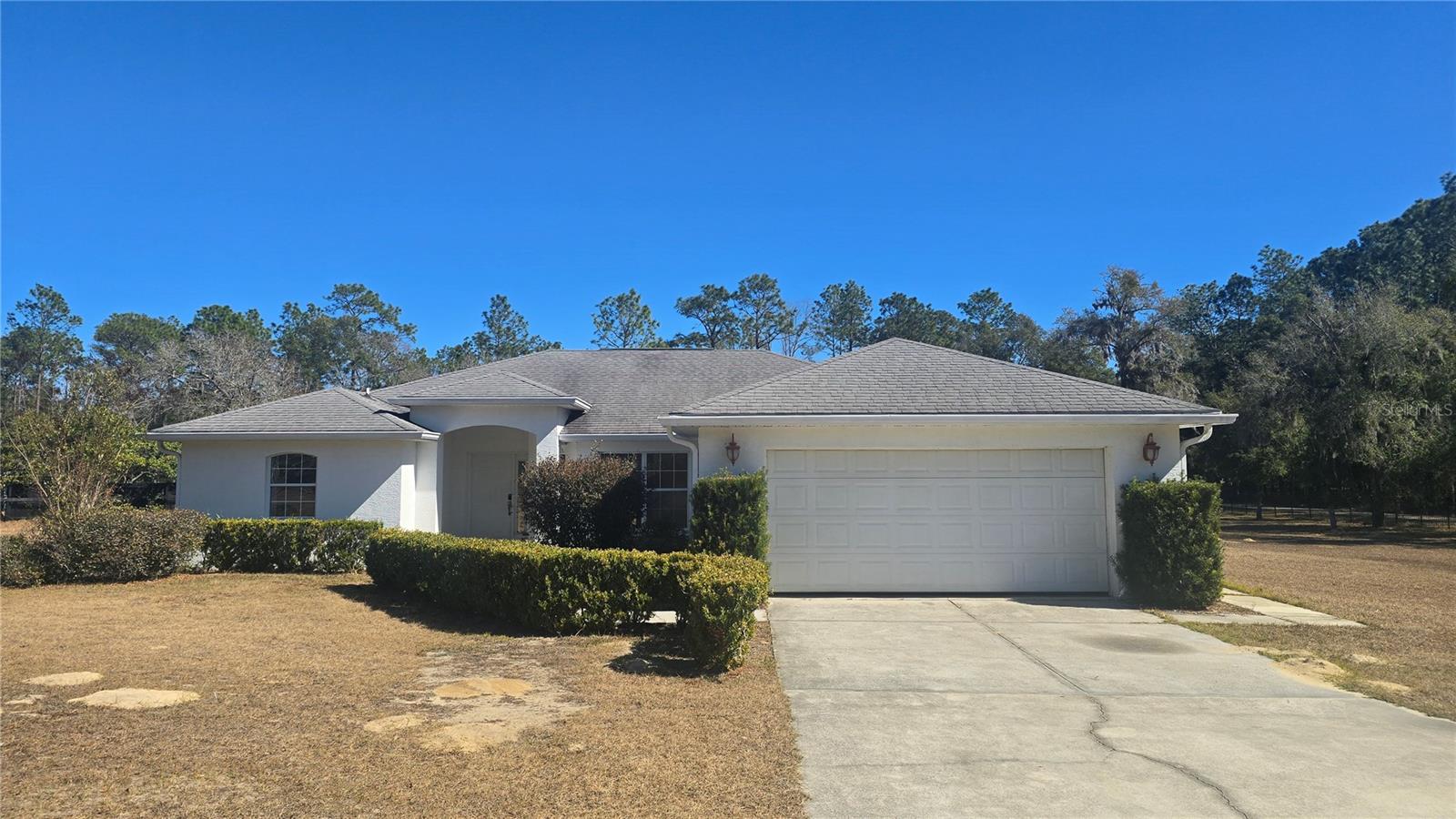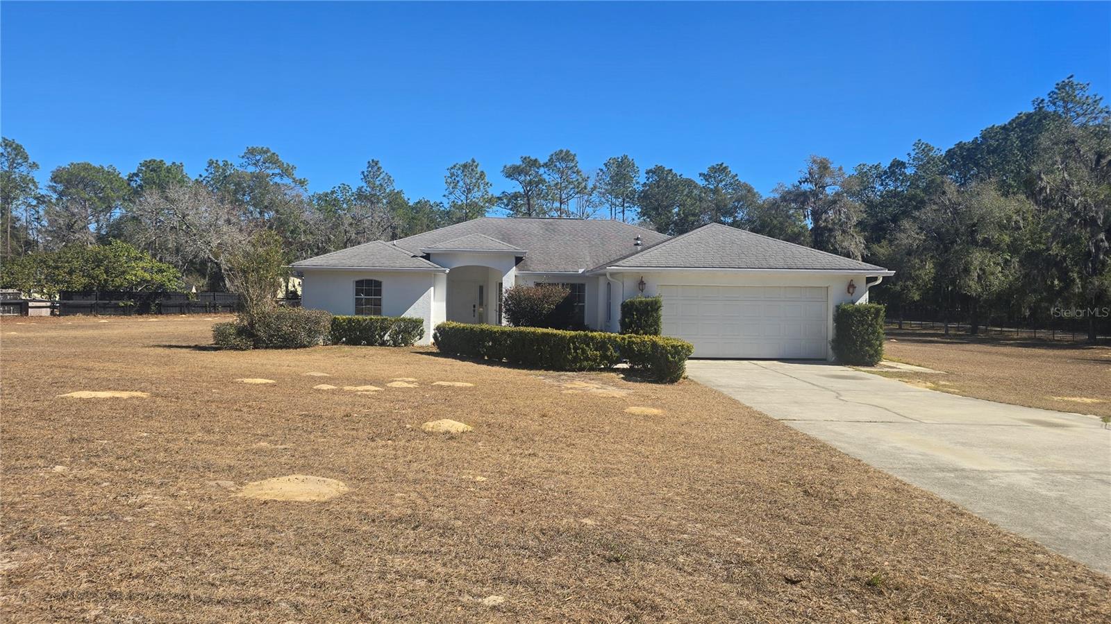 Built in 2000, the home offers a spacious split floor plan with tall ceilings and abundant natural light throughout. The formal dining area overlooks the living room, creating an open feel that is perfect for everyday living and entertaining. The kitchen includes a cozy breakfast nook with access to an oversized 25x20 fully screened rear patio, ideal for enjoying Florida evenings and overlooking your expansive land. New A/C installed in 2019 and a brand new well house and pump with updated plumbing completed in 2024—complete with a transferable five-year warranty—offer peace of mind and valuable recent upgrades. This 2-acre corner property is fully enclosed with high-quality black metal fencing and features a secure electronic gated entrance for added privacy. Some needed TLC is needed, however this provides the perfect opportunity to make this home truly yours. The oversized primary suite features dual closets, a walk-in shower, and sliding doors leading to the rear porch. Fruit trees, including Satsuma Mandarin and pear, add charm and character to the property. Located in Ocala, known as the Horse Capital of the World, this home offers peaceful country living with convenient access to the World Equestrian Center, natural springs, historic downtown, and major cities like Orlando and Tampa. With space to grow and solid improvements already in place, this property is a wonderful opportunity to make your vision a reality.