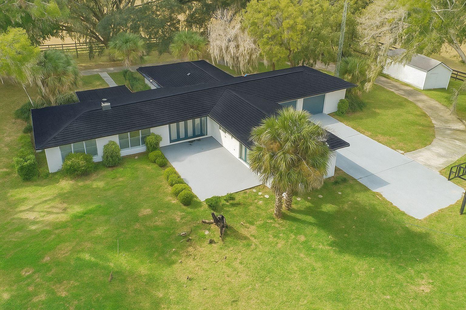 One or more photo(s) has been virtually staged. LOWEST PRICE P/ACRE—Agriculture discount hay farm! Bring your horse! Remodeled 3,000 sq/ft home with private pool, new roof coming, and elegant finishes on 10 cleared, horse-zoned acres. Enjoy luxury, space, and unbeatable location across from Jumbolair Aviation Estates and near Adena Golf Course, all less than 15 miles from the World Equestrian Center. No HOA, no flood zone, and priced below market—your dream farm in the heart of Ocala’s horse country awaits.
