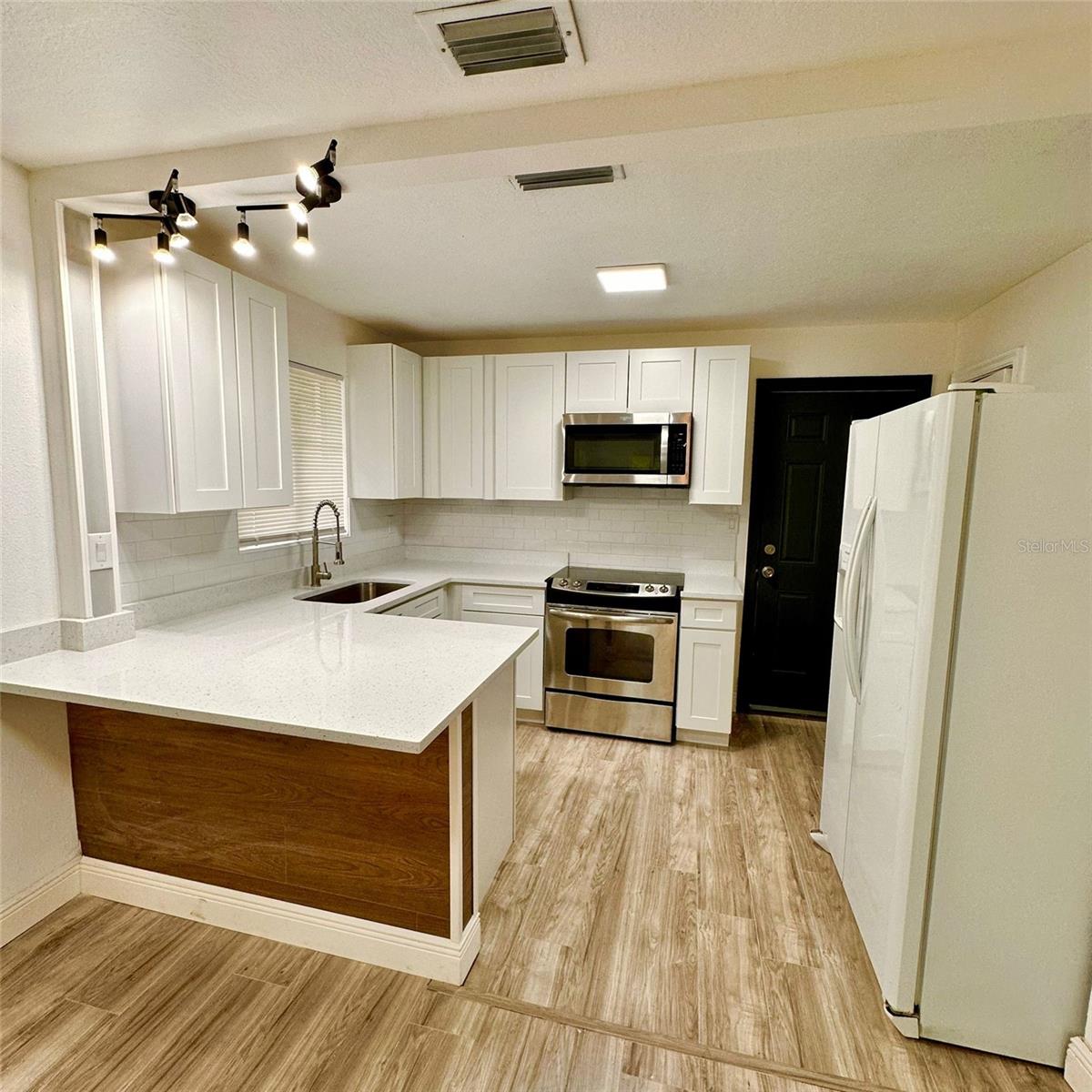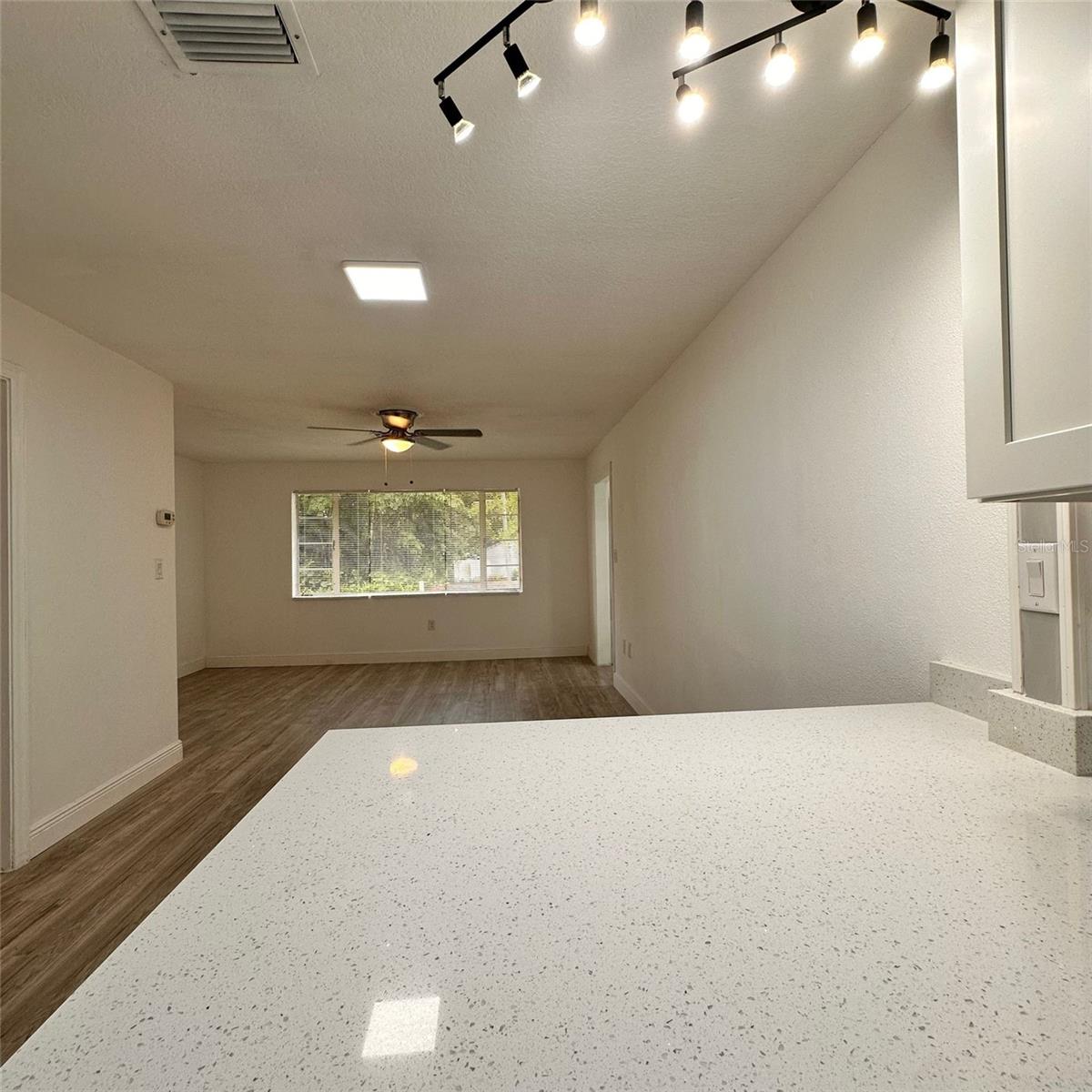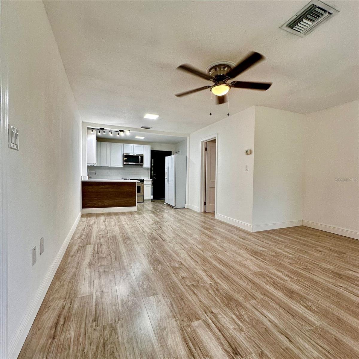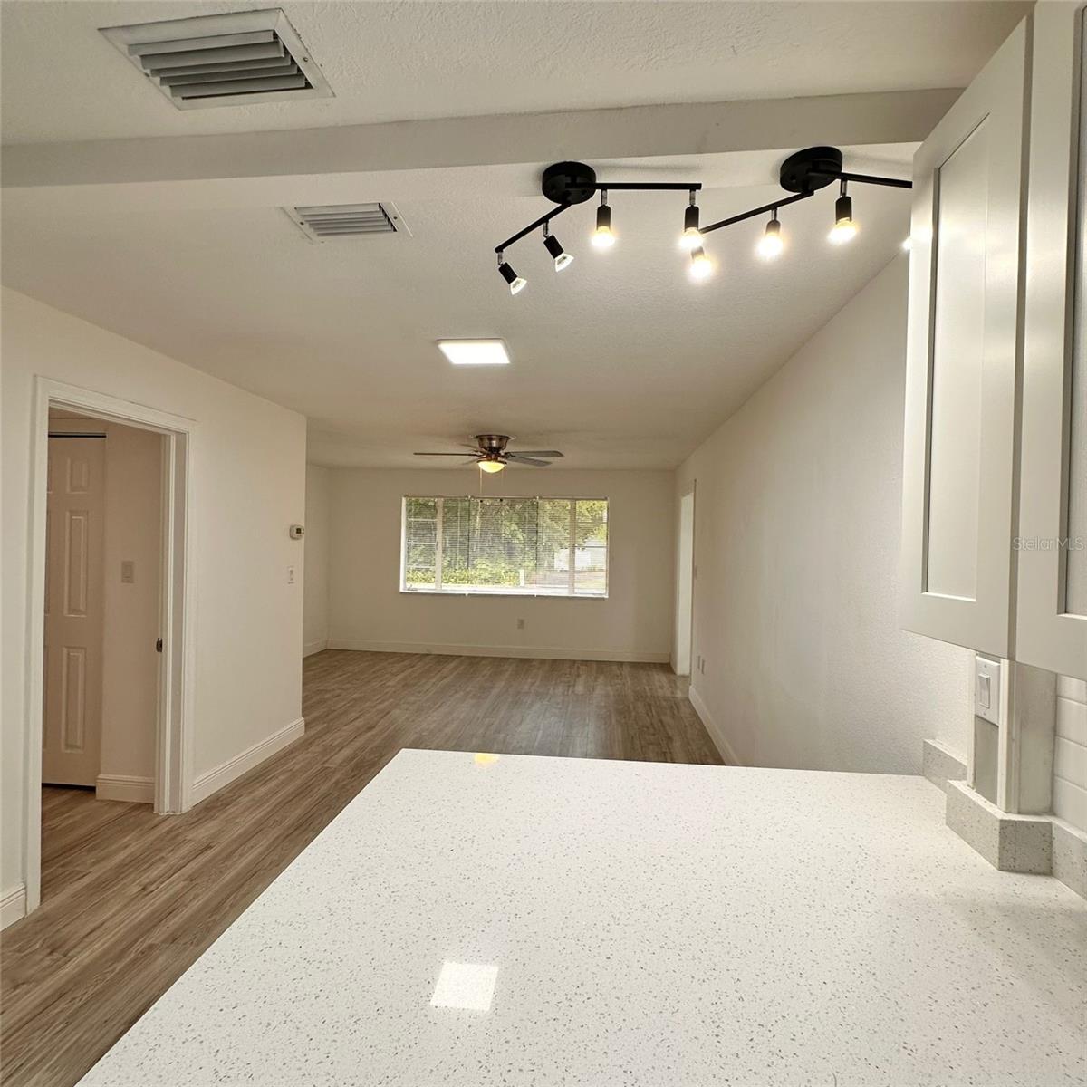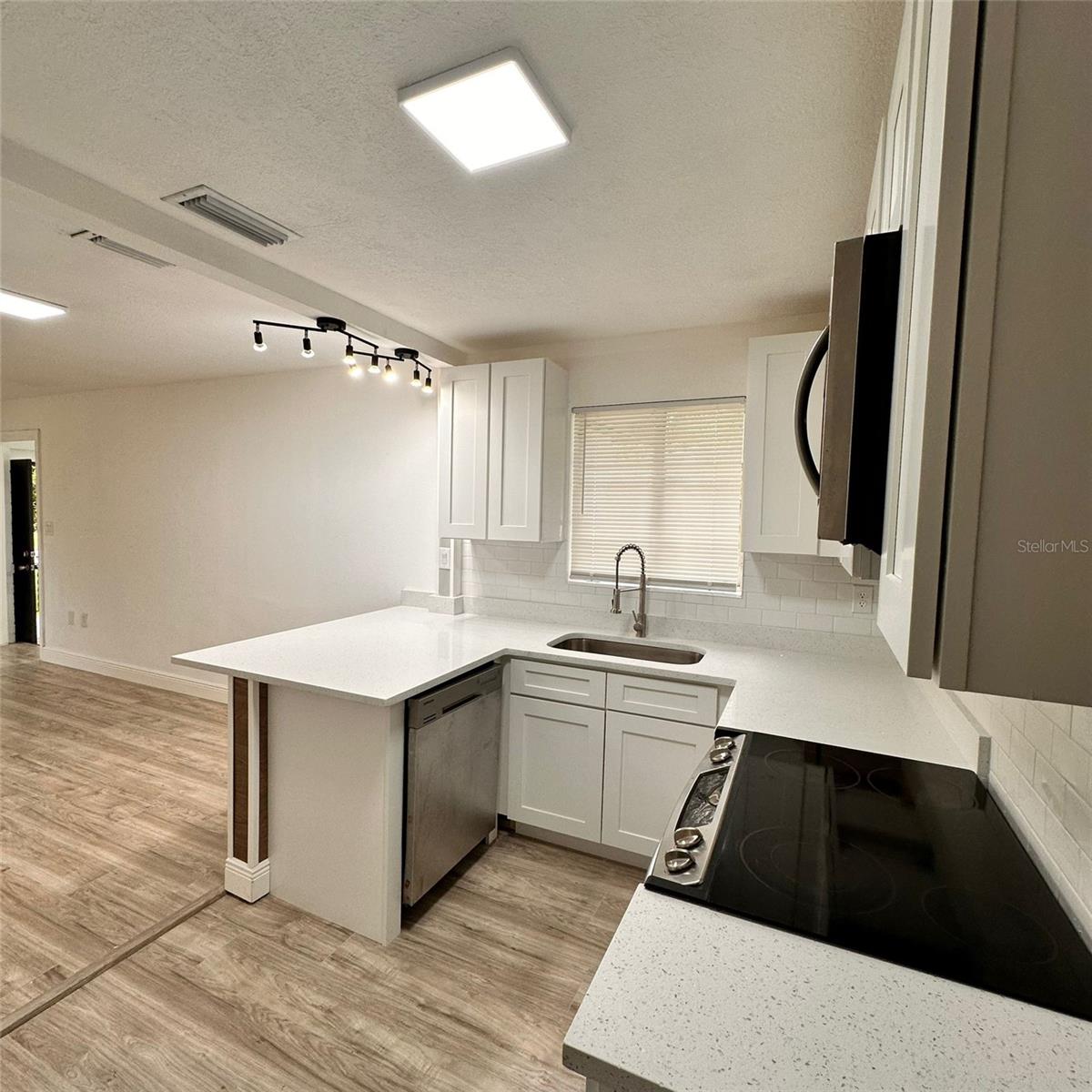 No HOA or CDD – an excellent opportunity for homeowners or investors alike. Welcome to this charming concrete block construction home offering 1,041 square feet of living space. The property features 3 bedrooms, 1 fully renovated bathroom, a spacious living room, a dining area, and a fully fenced backyard that provides privacy and plenty of outdoor space for relaxation, entertaining, or future enhancements. Recent updates include a beautifully remodeled kitchen with elegant quartz countertops, modern cabinetry, and new laminate flooring throughout the home. The updated bathroom offers contemporary finishes and functionality. This home is ideally located near parks, schools, shopping centers, and with quick access to major roads and highways. Whether you're a first-time homebuyer or looking to downsize, this move-in ready property is a must-see. Schedule your private tour today and make this home yours.
