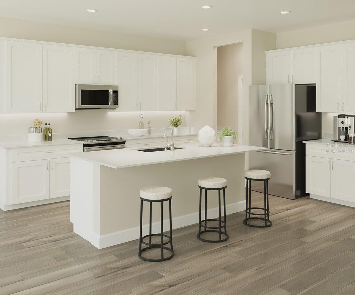One or more photo(s) has been virtually staged. The Palmetto is a thoughtfully designed single-story home featuring a convenient three-car garage. As you enter through the foyer, you are greeted by a bedroom and bathroom, perfect for guests or family members seeking privacy. A versatile den offers a flexible space for a home office or hobby room. The foyer then opens up to the expansive main living area, seamlessly connected to a covered lanai, ideal for indoor-outdoor living. The kitchen and dining area form the heart of the home, offering a welcoming space for gatherings, featuring modern amenities and plenty of counter space. The owner's suite is a tranquil retreat featuring a spacious bedroom, a luxurious bathroom, and a large walk-in closet. The conveniently located laundry room near the master suite adds to the home's practicality and ease of living. Experience the charm of country living with all the conveniences of the city at Cherrywood Preserve, a 55+ gated community. This golf cart friendly community in Ocala, FL offers boldly unboring new homes right next to the Market at Cherrywood: a short ride from groceries, restaurants, shopping, and Interstate 75. Homeowners have access to a variety of amenities including a lap and lounge pool, jacuzzi, fitness center, billiards room, horseshoes, shuffleboard, bocce, basketball and pickleball courts. Stay connected with neighbors through a lively social calendar and enjoy year-round gatherings in beautiful indoor and outdoor spaces. Images shown are for illustrative purposes only and may differ from actual home. Completion date subject to change.