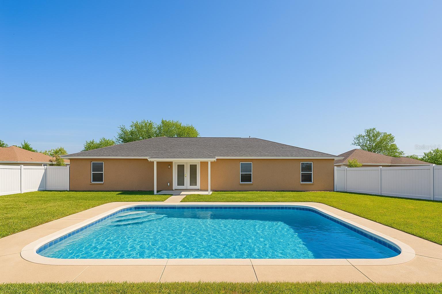 Pool is virtually staged and does not exist. For visual purposes only. Built in 2018, this 4 bedroom, 2 bathroom home offers outstanding flexibility with NO HOA, NO CDD, and no use restrictions. Bring your boats, RVs, trailers, work vehicles, and outdoor equipment — the spacious lot allows you to live the way you choose. Inside, you’ll find a bright open-concept layout with vaulted ceilings, a modern kitchen featuring granite countertops, stainless steel appliances, and a large island perfect for cooking, hosting, and gathering. The primary suite includes a walk-in closet and private bath, while the additional bedrooms offer comfortable space and excellent storage. The fully fenced backyard provides privacy and endless potential — add a pool, workshop, garden, or enjoy Florida outdoor living year-round from the covered patio. Conveniently located near shopping, dining, parks, lakes, equestrian trails, schools, and the Cross Florida Greenway, this home sits in a quiet, well-established, family-friendly neighborhood offering comfort, space, and a relaxed lifestyle. • 4 Bedrooms | 2 Bathrooms | Built in 2018 • NO HOA / NO CDD / No Use Restrictions • Bring Boats, RVs, Trailers, Work Vehicles • Open Floor Plan with Vaulted Ceilings • Granite Counters + Stainless Steel Appliances • Fully Fenced Backyard + Covered Patio • Space to Add a Pool, Workshop, or Garden • Close to Shopping, Dining, Parks, Lakes & Greenway • Located in a Quiet, Family-Oriented Neighborhood