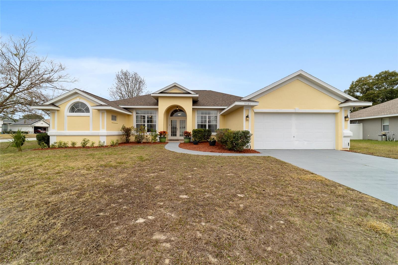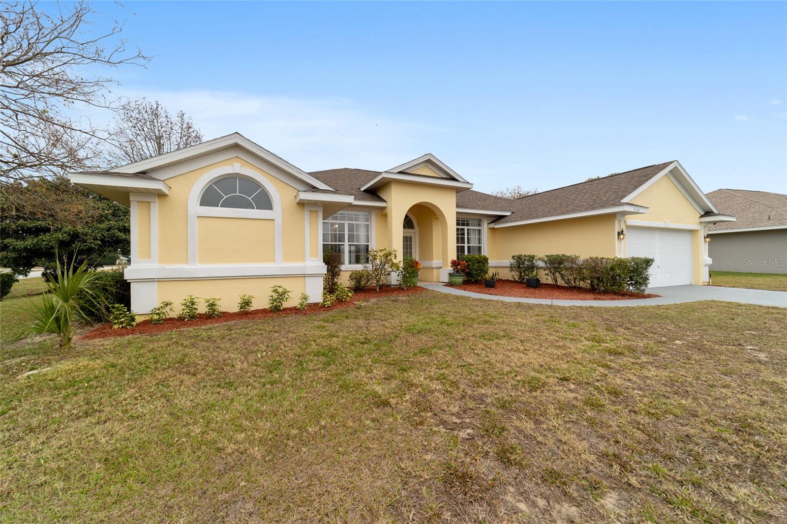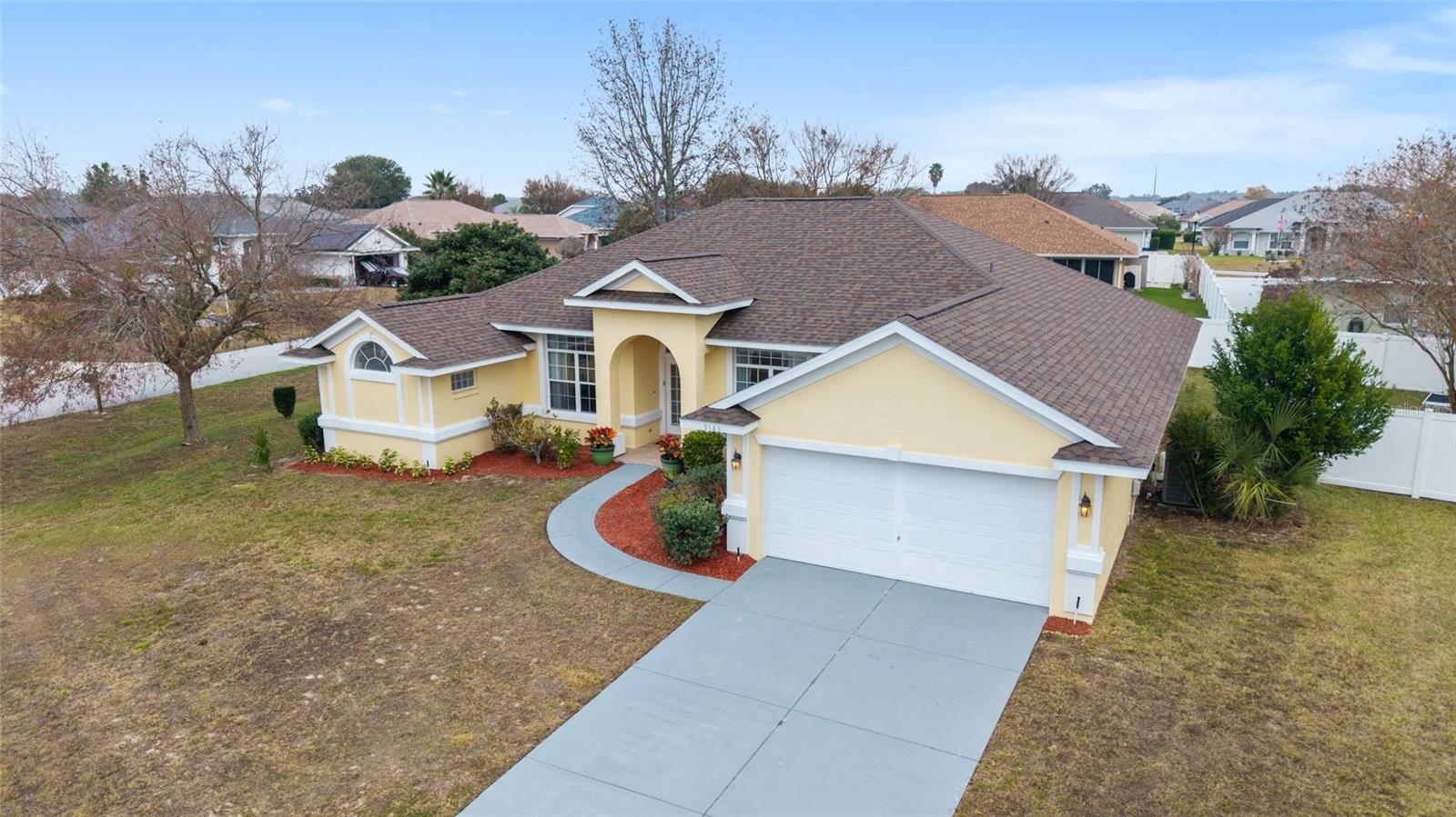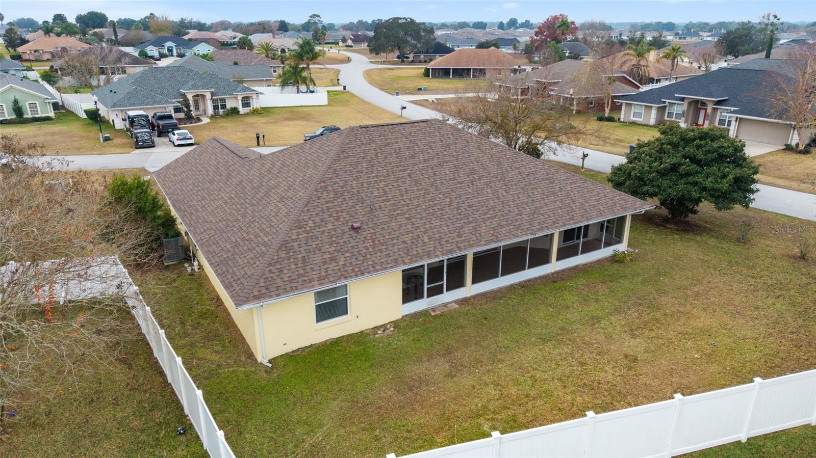 Welcome to this thoughtfully updated home located within the peaceful and well-kept neighborhood of Bent Tree. NEW ROOF (January 2025) and NEW HVAC (2024) provide peace of mind for years to come. Situated on an oversized corner lot, the home is framed by mature trees and neat landscaping, all supported by an in-ground sprinkler system. Inside, this expansive single story home features an open and functional floor plan, including a versatile OFFICE or DEN that easily adapts to your lifestyle. Ceramic wood-look tile runs throughout the main living areas, providing both durability and easy maintenance, while the new QUARTZ countertops add a clean, modern touch to the kitchen. The primary suite is generously sized and includes double closets along with direct access to the lanai through sliding doors. The en-suite bath feels like a private retreat, complete with a WALK-IN SHOWER and a relaxing SOAKING TUB. A desirable split-bedroom layout places two additional bedrooms and a second full bath on the opposite side of the home, offering comfort and privacy. In the main living area, stacking sliding glass doors open seamlessly to a tiled lanai and screened enclosure- perfect for morning coffee or unwinding while enjoying the spacious backyard. The outdoor space is enhanced by mature landscaping, including a loquat tree and a magnolia, creating a tranquil setting. Conveniently located near I-75 and just minutes from shopping, dining, and medical facilities, this home offers both comfort and accessibility. Schedule your private showing today!