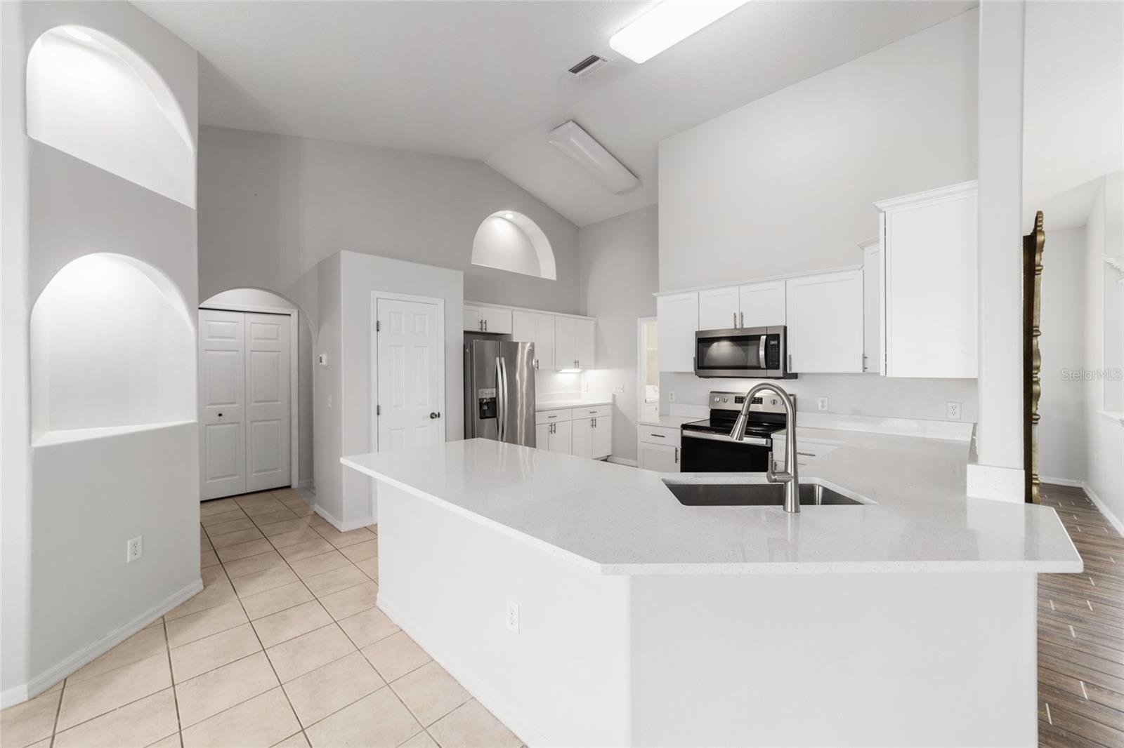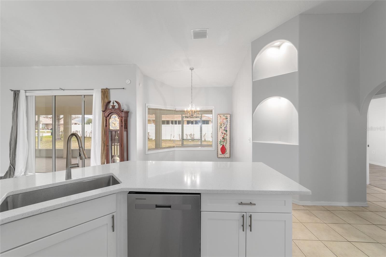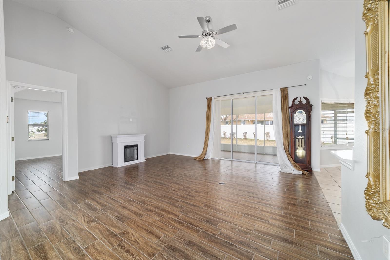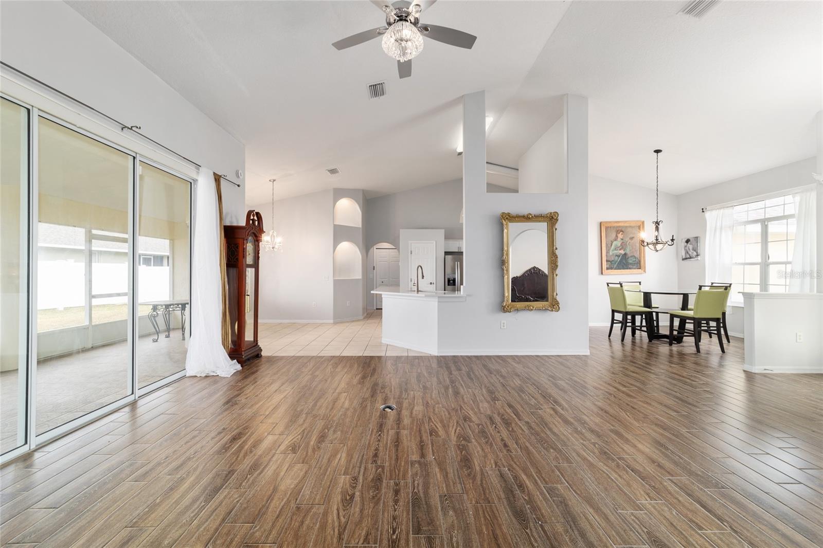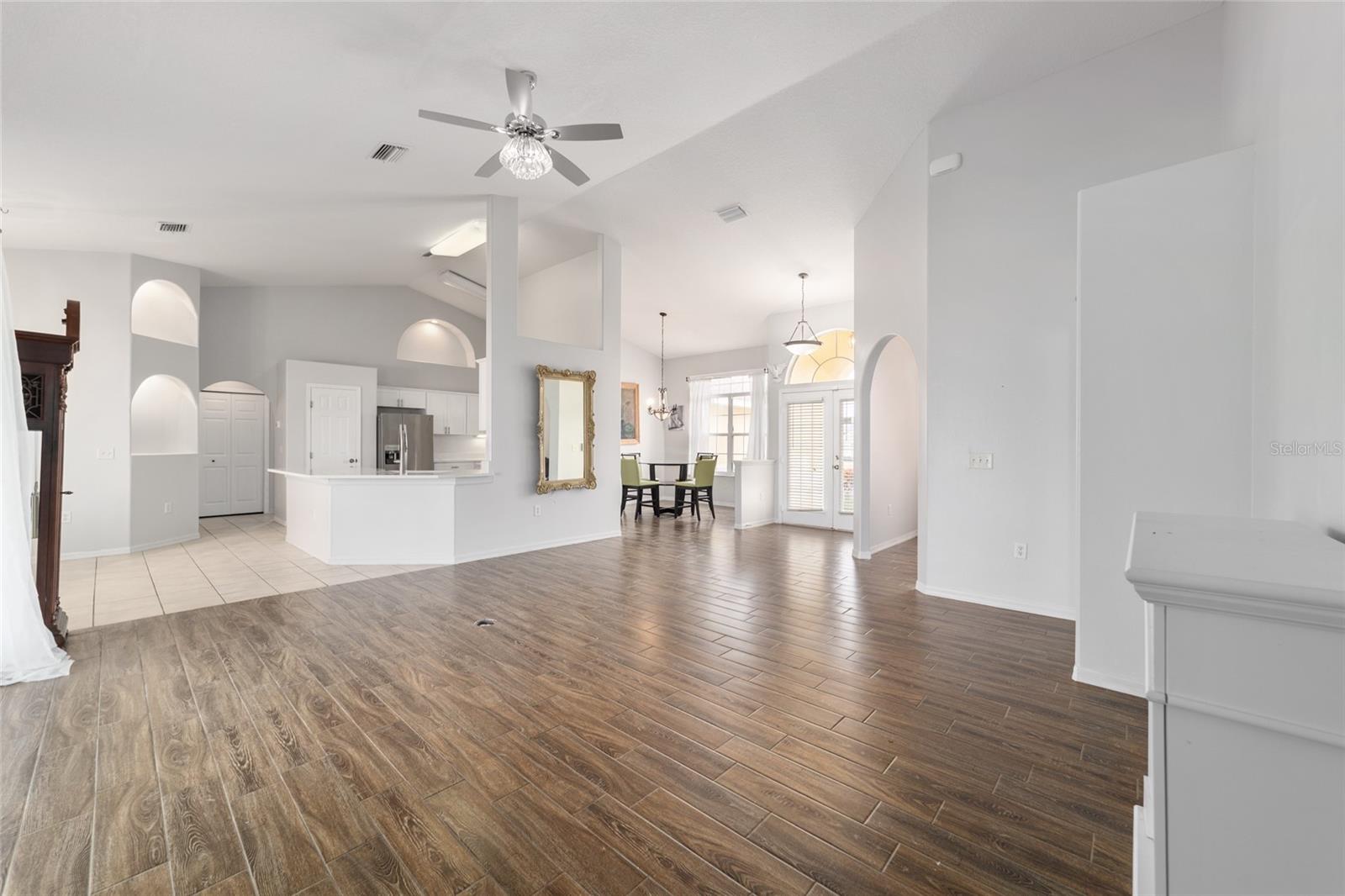 Welcome to this thoughtfully updated home located within the peaceful and well-kept neighborhood of Bent Tree. NEW ROOF (January 2025) and NEW HVAC (2024) provide peace of mind for years to come. Situated on an oversized corner lot, the home is framed by mature trees and neat landscaping, all supported by an in-ground sprinkler system. Inside, this expansive single story home features an open and functional floor plan, including a versatile OFFICE or DEN that easily adapts to your lifestyle. Ceramic wood-look tile runs throughout the main living areas, providing both durability and easy maintenance, while the new QUARTZ countertops add a clean, modern touch to the kitchen. The primary suite is generously sized and includes double closets along with direct access to the lanai through sliding doors. The en-suite bath feels like a private retreat, complete with a WALK-IN SHOWER and a relaxing SOAKING TUB. A desirable split-bedroom layout places two additional bedrooms and a second full bath on the opposite side of the home, offering comfort and privacy. In the main living area, stacking sliding glass doors open seamlessly to a tiled lanai and screened enclosure- perfect for morning coffee or unwinding while enjoying the spacious backyard. The outdoor space is enhanced by mature landscaping, including a loquat tree and a magnolia, creating a tranquil setting. Conveniently located near I-75 and just minutes from shopping, dining, and medical facilities, this home offers both comfort and accessibility. Schedule your private showing today!