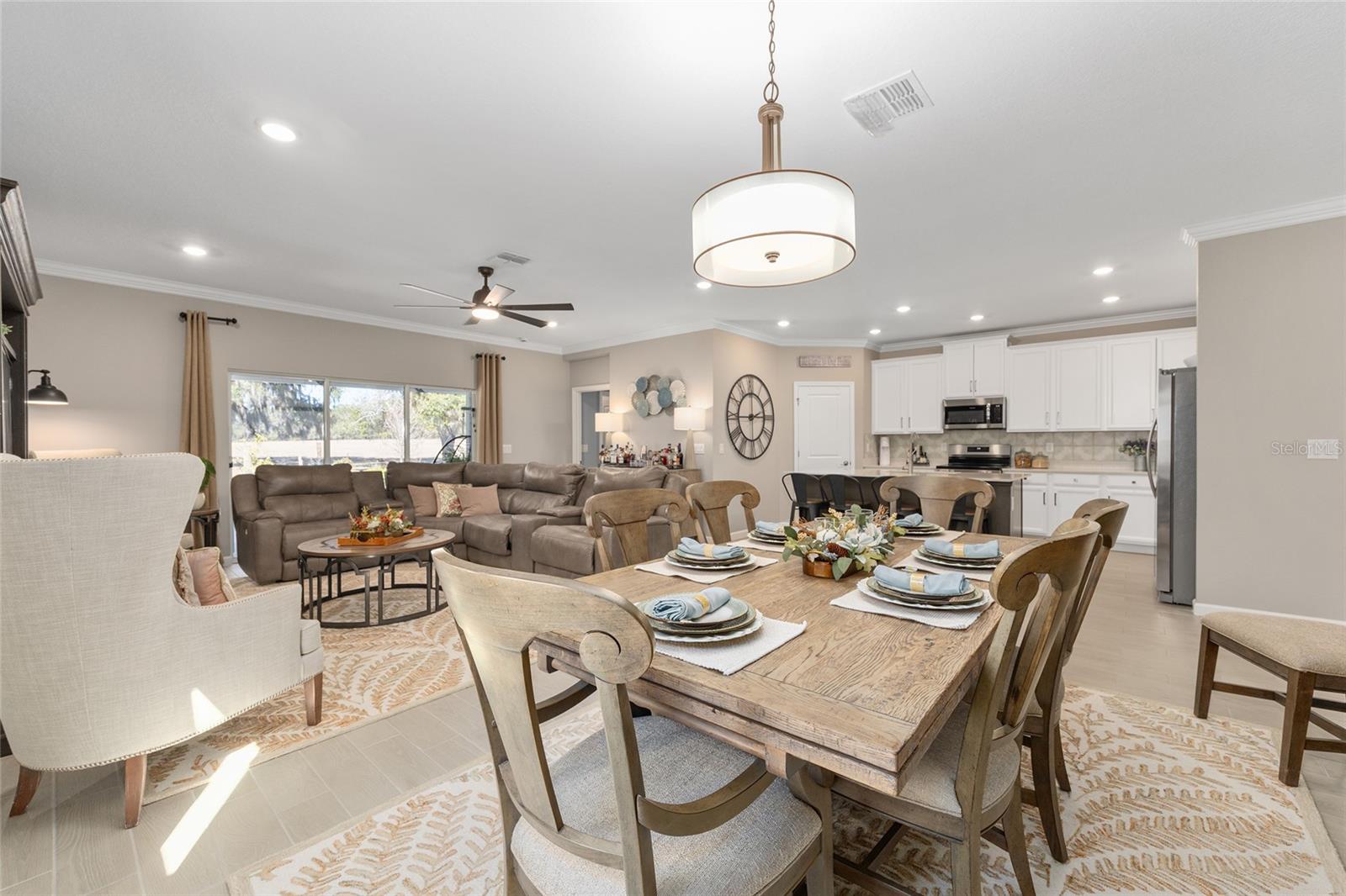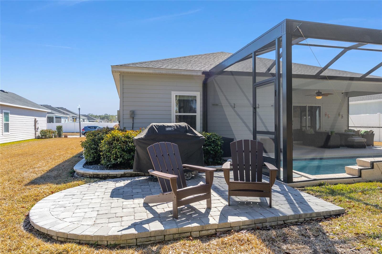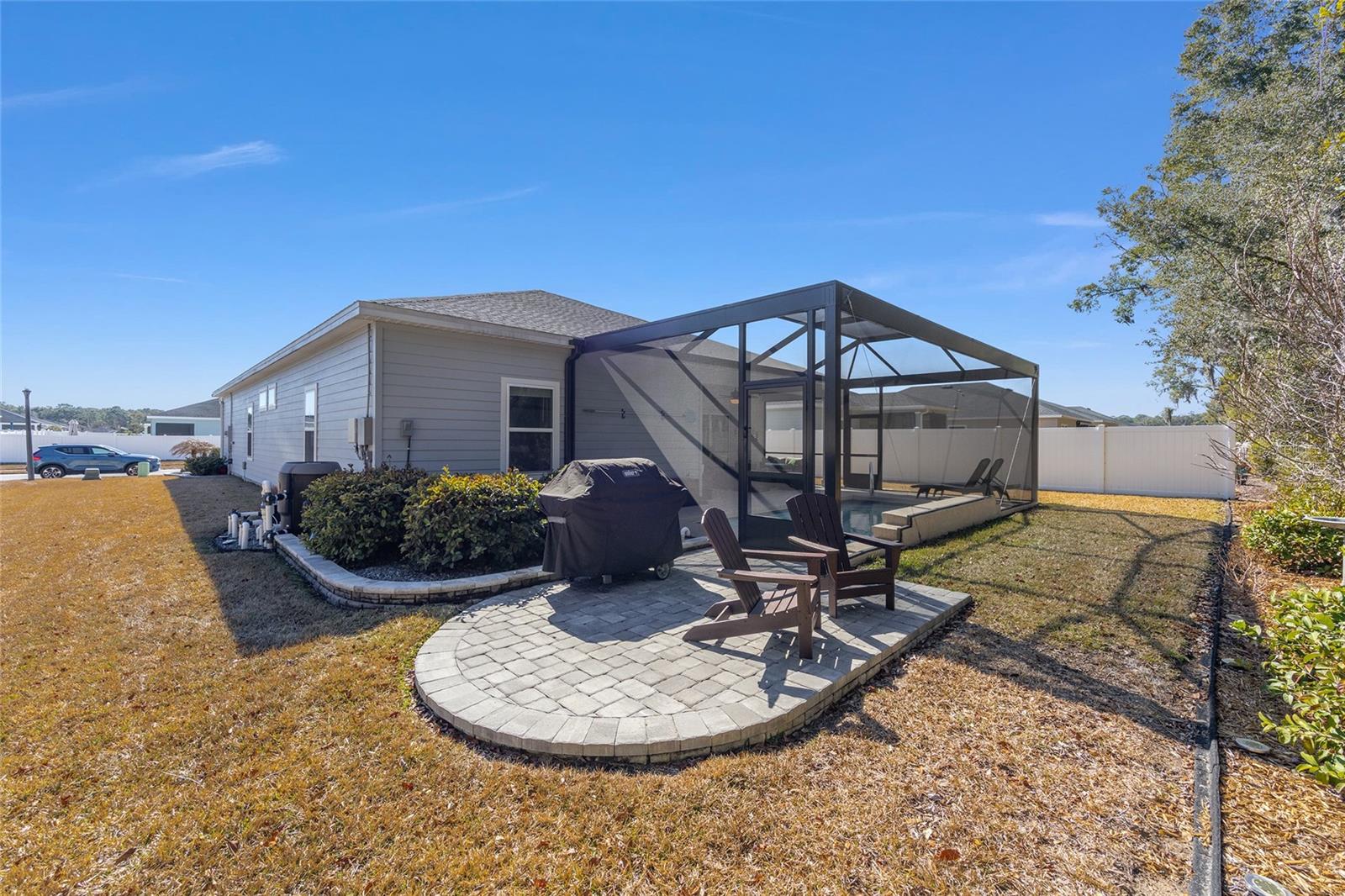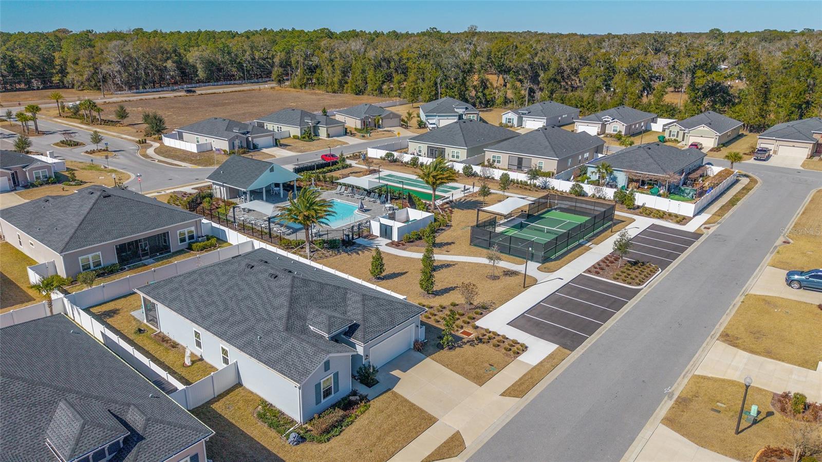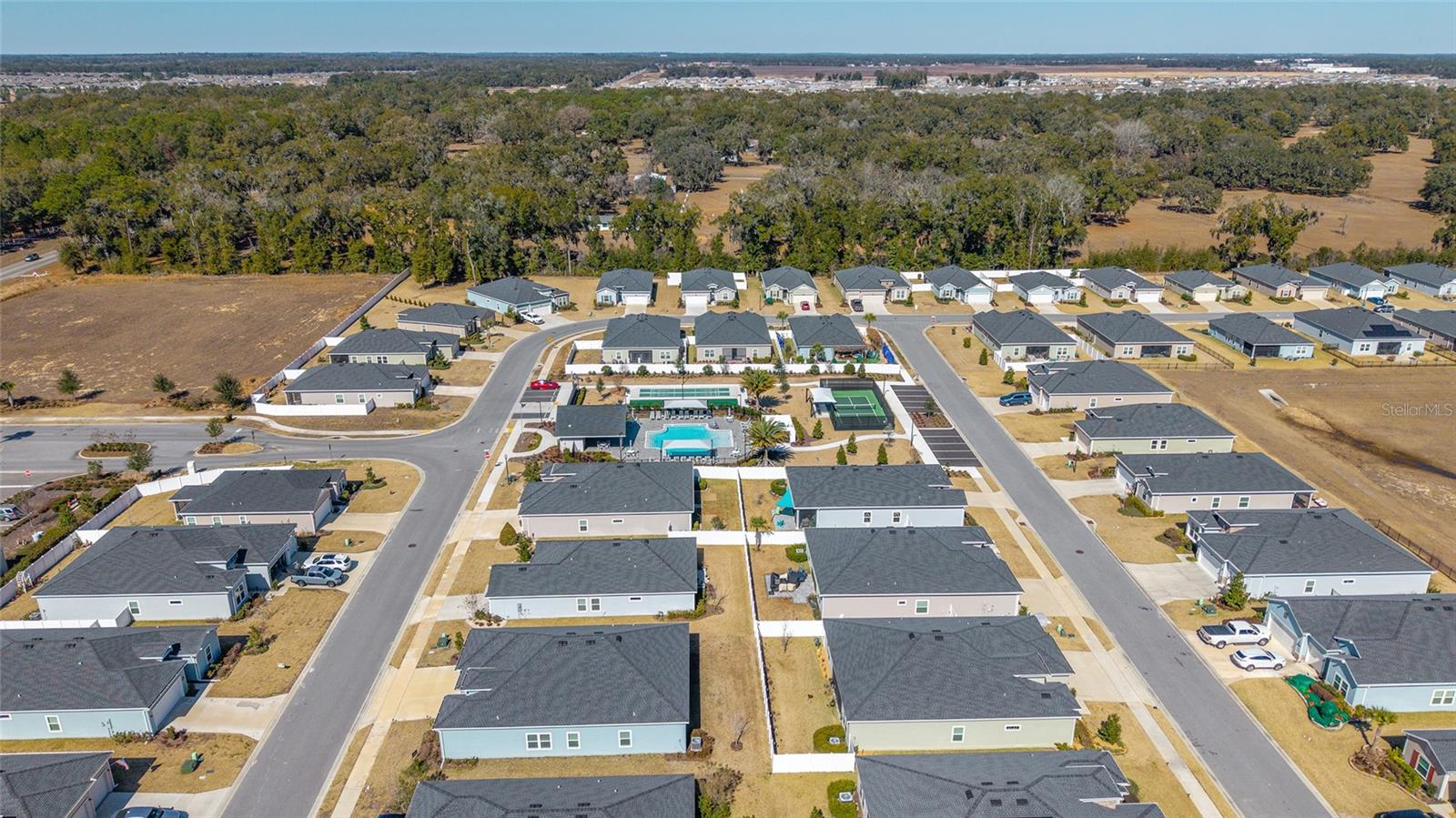 Welcome to this stunning 2023 built home located in the desirable 55+ community of Liberty Village PH2, featuring 4 bedrooms and 3 full bathrooms with a private heated pool with waterfall and screened lanai and an impressive list of premium upgrades that make this home truly exceptional this beautiful residence offers low monthly HOA which includes Spectrum Wi-Fi and cable TV and access to completed resort style amenities including community pool pickleball shuffleboard and bocce the home showcases outstanding enhancements such as a heated pool with waterfall and screened lanai professional landscaping with paver surround lighting and extended patio area behind the home crown molding throughout all common areas and primary suite custom Sherwin Williams paint throughout custom master closets custom pantry custom linen closets and laundry cabinets tile backsplash upgraded ceiling fans and lighting and stainless steel Frigidaire kitchen appliances also included are an extra large LG front loader washer and dryer purchased in 2022 plus patio furniture outdoor rugs fire pit beverage fridge and pool accessories the backyard offers a rare and peaceful setting with no rear neighbors overlooking open green space where the pool and lanai enjoy beautiful natural views and added privacy making this a true move in ready opportunity ideally located near the World Equestrian Center and within convenient driving distance to Orlando and Tampa this home offers luxury Florida living with modern comfort incredible upgrades and an active lifestyle community.