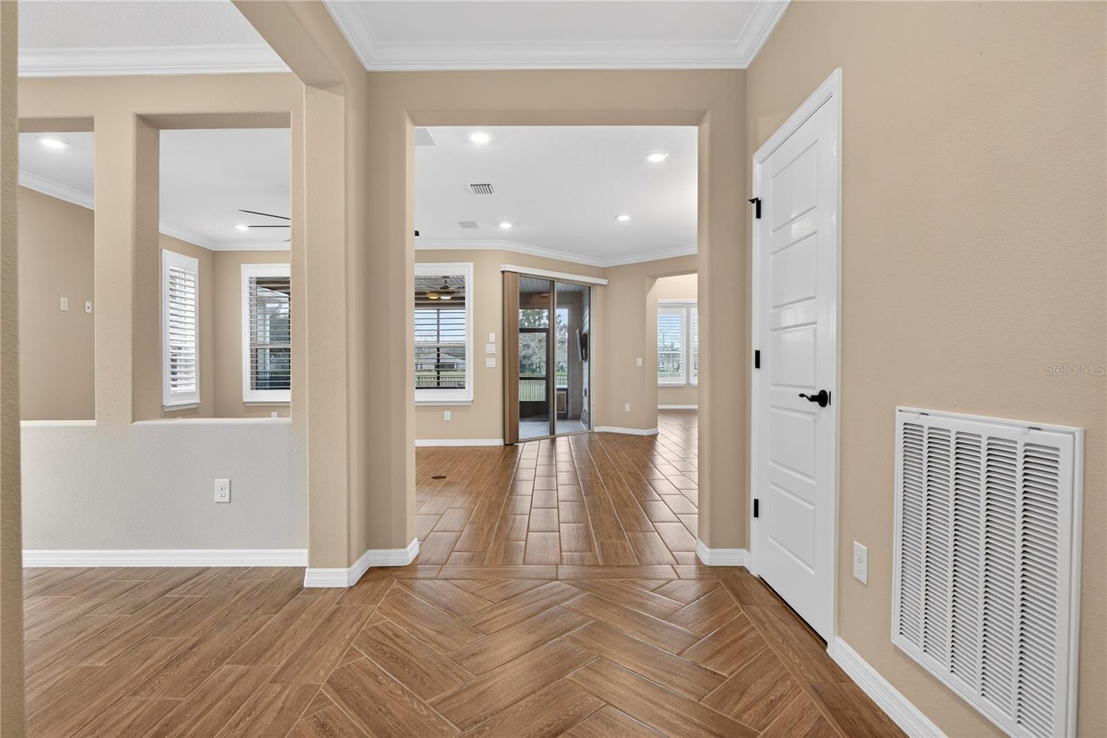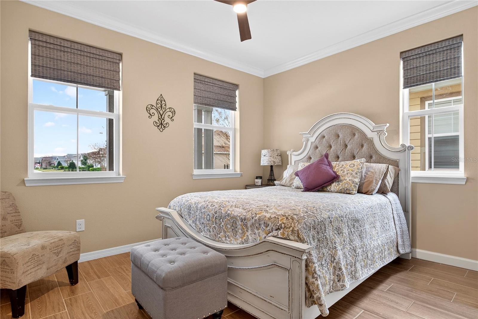 Looking to slow down and start enjoying life? Look no further than this beautifully appointed two-bedroom, two-bath home in the sought-after Ocala Preserve community! This home has a versatile den, thoughtfully designed with both style and functionality in mind and a custom Master closet that will be the envy of friends. The open-concept lets the cook in the family engage with guests while entertaining. Crown molding throughout and stunning tile flooring create a cohesive, elegant feel, while plantation shutters and upgraded ceiling fans add timeless charm. The home is equipped with SMART features allowing you to remotely monitor internet-connected devices such as lights, thermostats, locks and appliances increasing efficiency and security. Under-cabinet lighting enhances both ambiance and convenience. The kitchen and living spaces flow seamlessly, allowing the cook in the family to engage with guests. The den, kitchen, living room, primary bedroom, and lanai are all wired for speakers—perfect for entertaining or relaxing at home. Step outside to enjoy the fully fenced backyard featuring attractive hardscaping, a gas firepit, and tranquil views overlooking a walking trail and retention pond. Appreciate nature’s beauty as you sit back and enjoy the breathtaking sunsets. Additional highlights include a 30-amp car charger, a non-electric water softener, and a welcoming front porch with ample space for Adirondack chairs—ideal for morning coffee or evening relaxation. This home combines modern upgrades with inviting outdoor spaces, offering comfort, efficiency, and exceptional curb appeal. This home was designed for making memories that will last a lifetime! Schedule your private tour today.