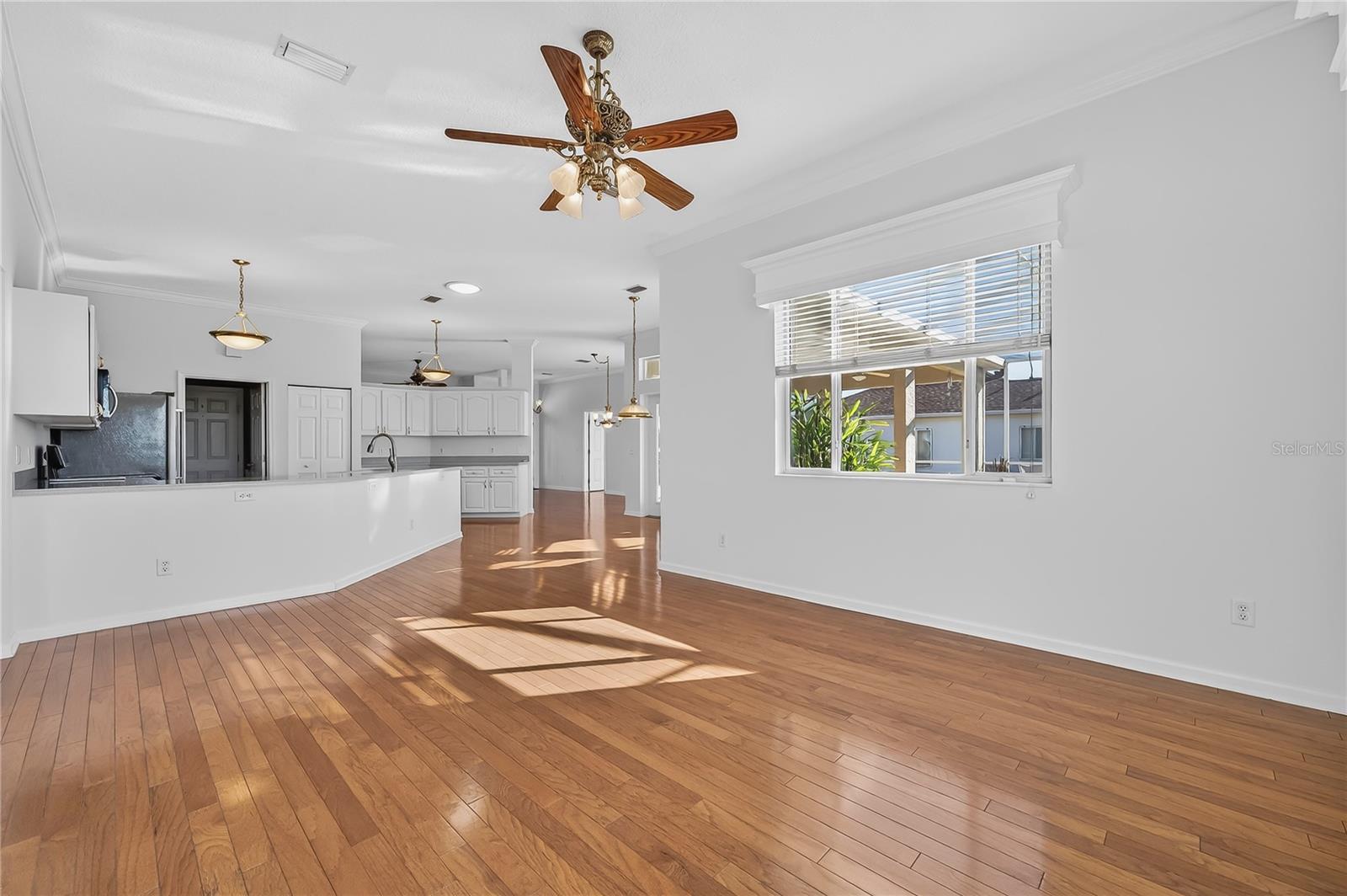 Welcome to this beautifully maintained Majesty model, thoughtfully designed for easy living and located in the sought-after 55+ community of Ocala Palms, where resort-style amenities meet everyday comfort. Perfectly positioned overlooking the 13th green, this 3-bedroom, 2-bath home offers a bright, inviting layout with real hardwood flooring throughout the main living areas, tile in the bathrooms, and elegant crown molding in the living room, dining room, and kitchen. The spacious, open kitchen is ideal for the cook in the family, creating a warm and welcoming space for both daily living and entertaining. Step outside and unwind in your private backyard oasis, featuring a kidney-shaped pool enclosed by a birdcage - perfect for enjoying Florida’s sunshine in comfort and privacy year-round. Major updates include a new roof in 2023 and a new HVAC system in 2024, offering peace of mind and added value. Residents enjoy access to exceptional amenities including a clubhouse, on-site restaurant, pickleball and tennis courts, and a beautifully maintained golf course. Conveniently located near a grocery store and two hospitals, this home truly offers the ideal blend of comfort, quality, convenience, and active adult living. Schedule your private tour today and see why Ocala Palms is such a special place to call home.
