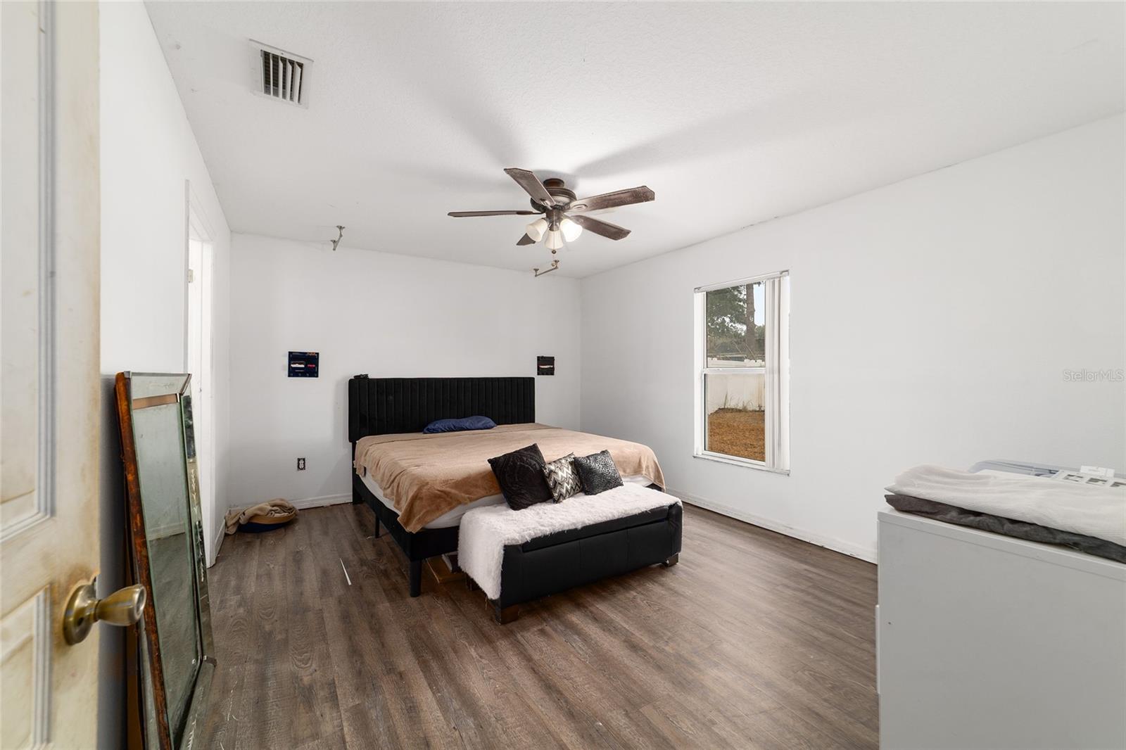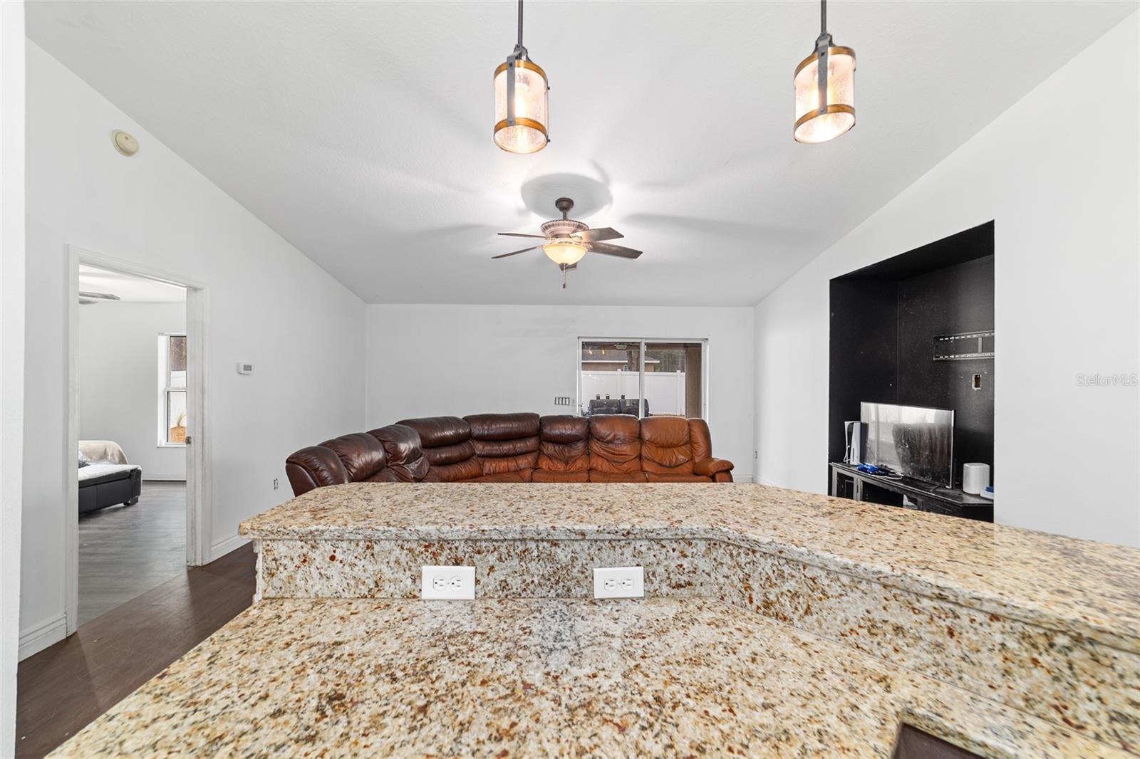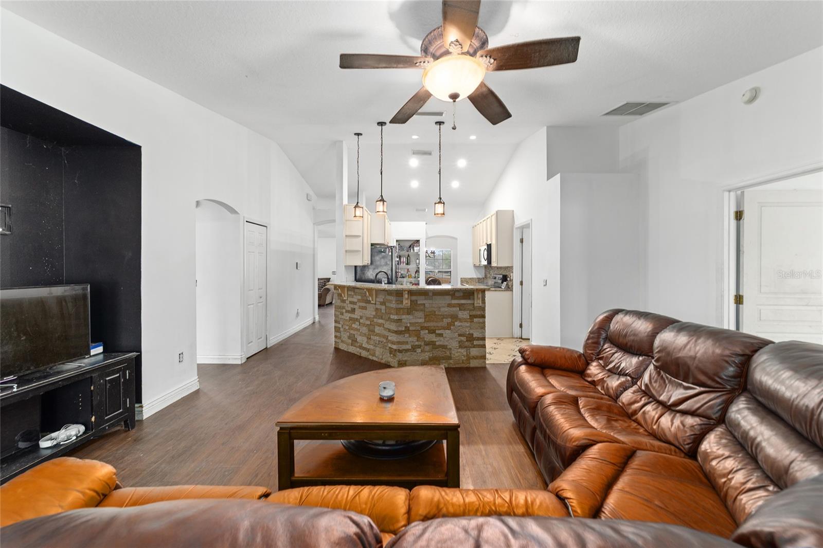 Welcome to this inviting 3-bedroom, 2-bath home offering a functional, open-concept layout designed for everyday comfort, entertaining, and future personalization. The spacious kitchen serves as the heart of the home, featuring generous counter space and ample cabinetry—ideal for hosting gatherings, meal prep, or bringing your own culinary vision to life. The adjoining living areas flow seamlessly, creating a warm and welcoming atmosphere with plenty of room to relax or entertain with ease. Step outside to the screened-in lanai, the perfect place to enjoy morning coffee or unwind in the evenings while taking in the outdoors year-round. Beyond the lanai, the large backyard provides abundant space for entertaining, gardening, pets, or future outdoor enhancements, offering endless possibilities to make the space your own. The primary bedroom includes an en-suite bath, while two additional bedrooms offer flexibility for guests, a home office, or additional living space. With solid bones a layout that supports modern living, and a location convenient to highly regarded schools, shopping, and dining, this home presents an excellent opportunity for buyers seeking space, comfort, and the ability to add value over time.