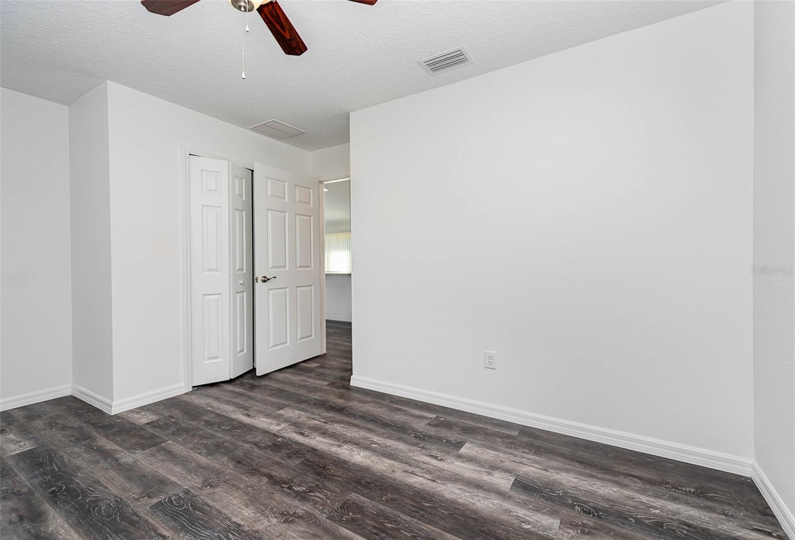 This charming single-family home is a fantastic investment, currently leased through July 15, 2025, at $1,390 per month. Boasting luxury vinyl wood flooring throughout, this home offers a stylish and low-maintenance living space. The modern kitchen features white cabinetry, granite countertops, and an open layout, perfect for entertaining. The split floorplan provides privacy, with the primary bedroom offering a walk-in closet and an en-suite bathroom for added convenience. Interior photos are of the model home and showcase a similar layout, though with darker flooring. Don't miss out on this turnkey investment with immediate rental income!