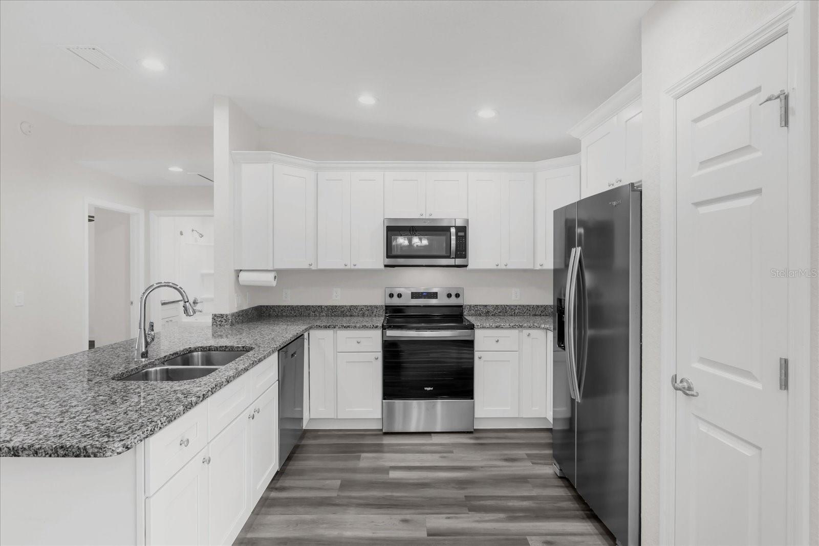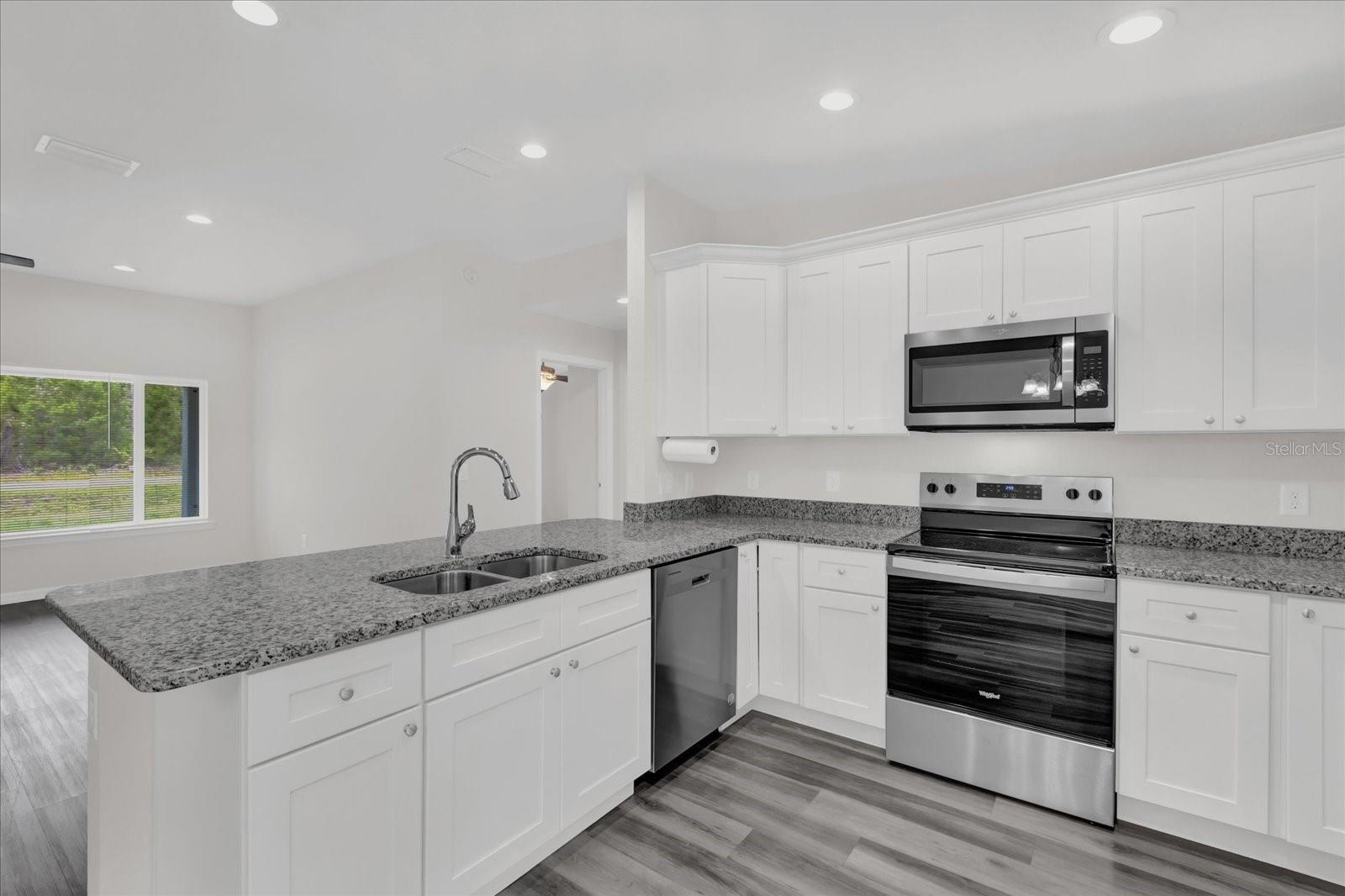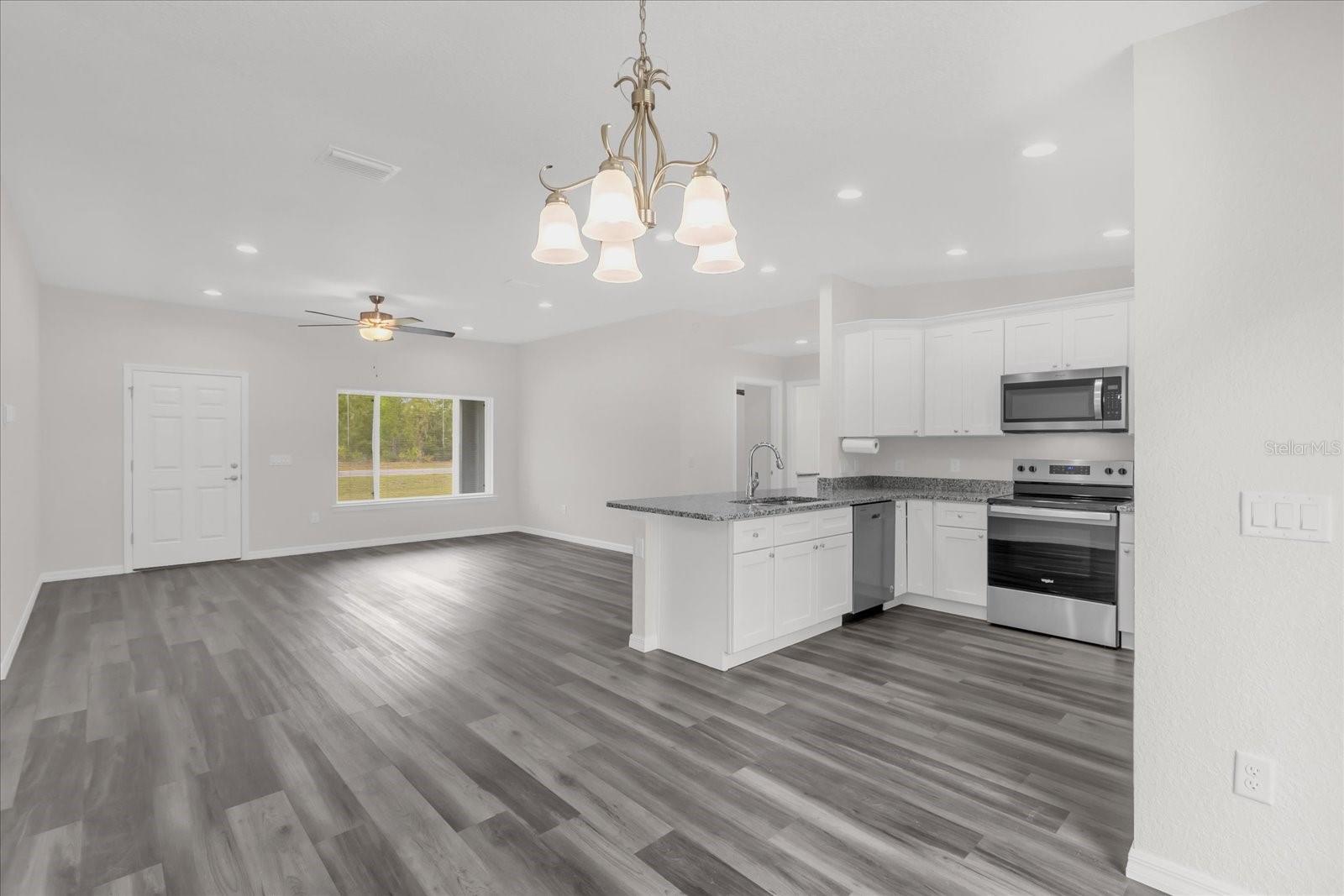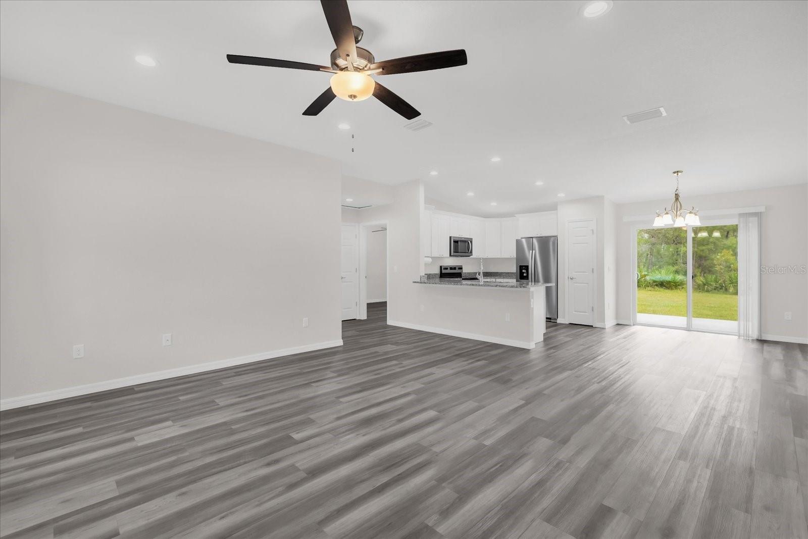 BUILT IN 2024! This recently built home in the desirable Silver Springs Shores community offers 3 bedrooms, 2 bathrooms, and a spacious backyard. The home boasts a split-bedroom floor plan with an open concept living room, dining area, and kitchen equipped granite countertops and stainless steel appliances. The spacious primary bedroom includes a walk-in closet and an en-suite bathroom with a dual sink vanity and a shower. The remaining bedrooms share a guest bathroom with a bathtub. Upgrades throughout the home include luxury vinyl plank flooring for easy maintenance, granite countertops in both bathrooms, and a laundry room with washer/dryer hookup. Located just minutes away from Lake Weir and The Villages with convenient access to I-75, US-441, 301, and HWY 25. NO HOA! Don’t miss out on this opportunity to make this home yours! Submit your offer today!