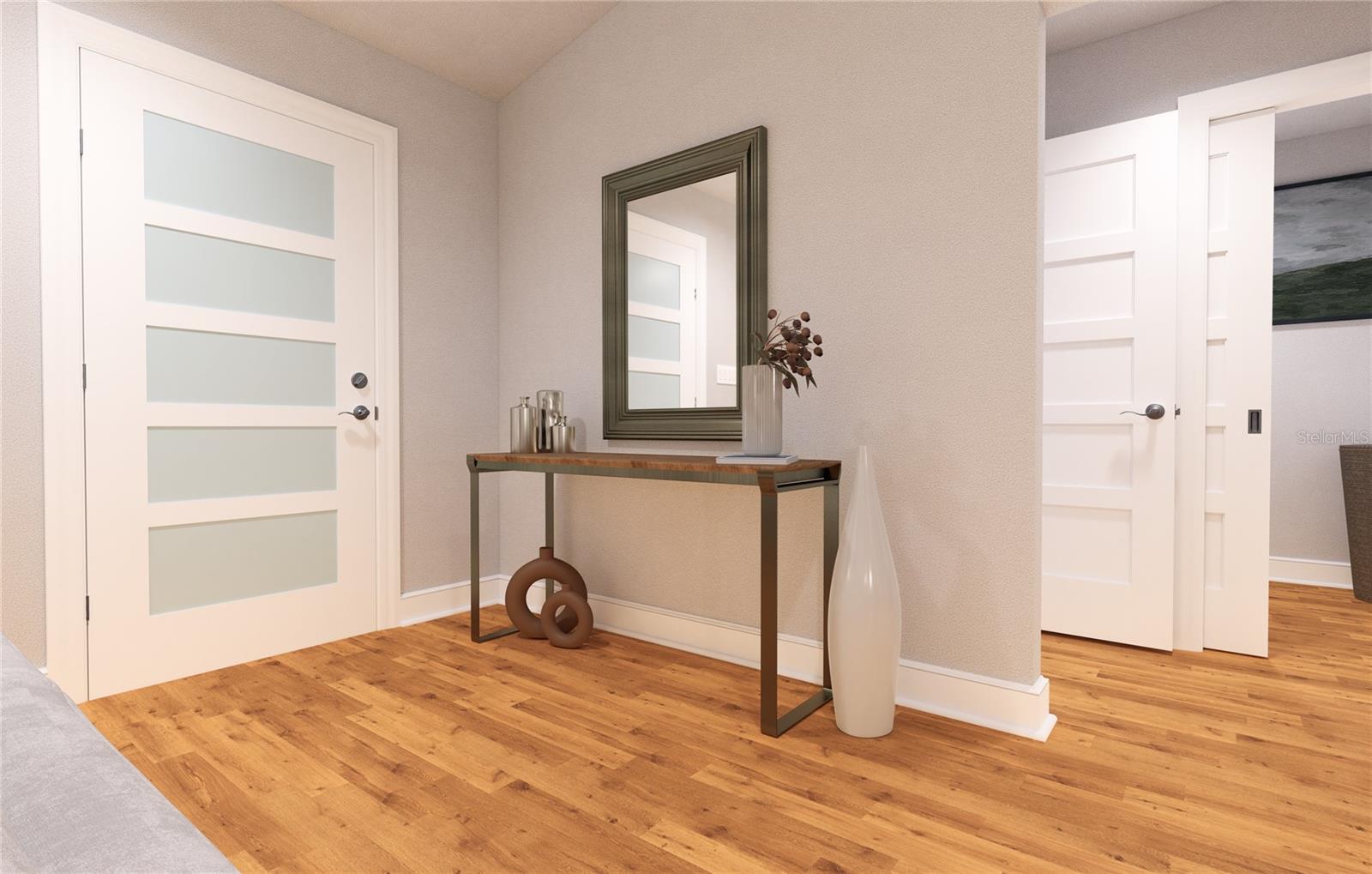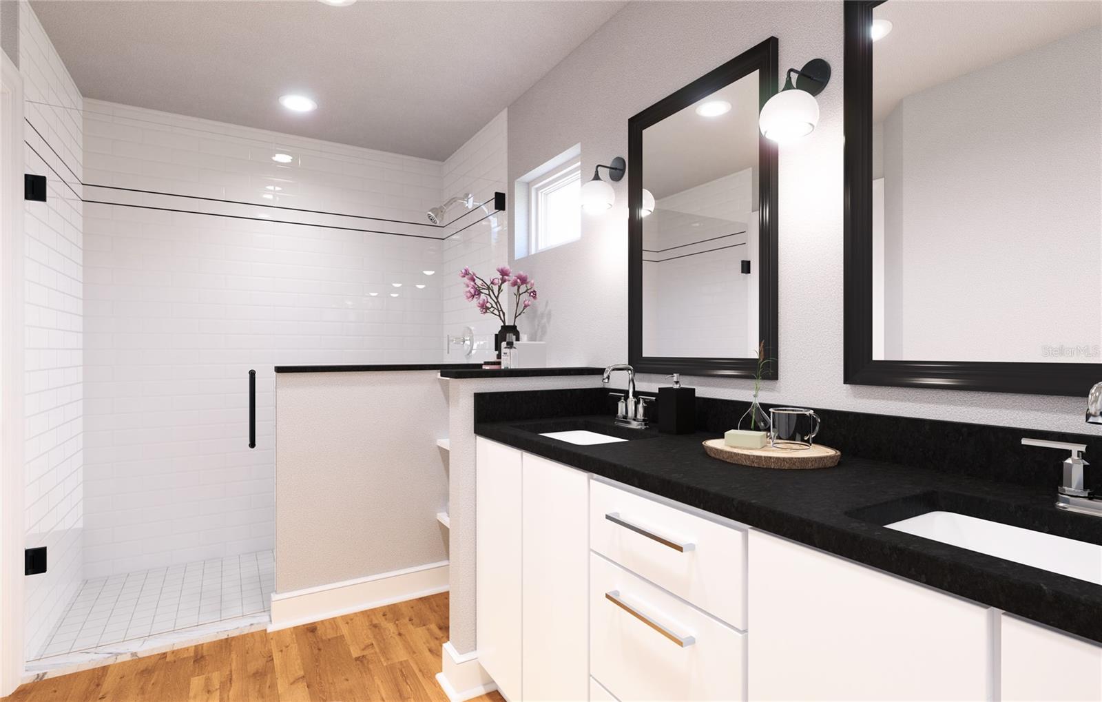 One or more photo(s) has been virtually staged. Pre-Construction. To be built. New construction on a private home site: In a non-HOA community. This rare find from a custom luxury homebuilder, is a 3/2/2 home featuring stunning upgrades throughout ON an Oversized Lot! Personalize your home your way: from your bathroom, cabinetry, flooring, countertops, interior and exterior paint colors, to extending your garage/lanai. Conveniently nestled between Ocala and The Villages in pristine Ocklawaha near Silver Spring Shores, Lake Weir, Gator Joe's, Eaton Beach, with ample shopping and medical facilities in The Villages. A bright, beautiful modern floor-plan features concrete block construction with a stucco finish and stack stone access. A distinct coastal design with three Gables adorned with shake or board-batten, and tapered columns on the front porch. The interior layout features envelope the living room, dining room, and kitchen. Vaulted ceilings, modern fan/light and pendant lighting, and a gorgeous kitchen featuring granite countertops, island, garbage disposal, luxury stainless steel appliance package, contemporary cabinetry, large pantry, under cabinet lighting, and stunning tiled backsplash. Throughout the home is luxury vinyl planking that mimics natural wood. Off of the kitchen are French Doors that lead to a covered lanai. The split home layout offers a large primary bedroom en suite with a tray ceiling and fan/light, oversized walk-in closet, dual vanity granite sinks in the en suite with a walk-in tile shower featuring a frameless glass door, and a private water closet. The home's stylish double barn doors provide entry to the en suite and walk-in closet. Pricing and features are subject to change without notice. Renderings are for illustration purposes only, and features and sizes may vary from the home as built.