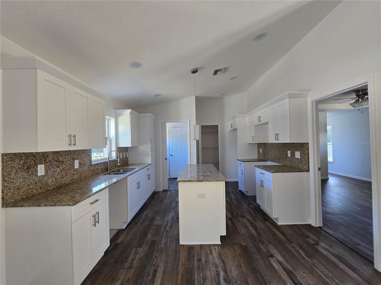 Under Construction. Step into luxury with this expansive 3-bedroom, 2-bathroomhaven, featuring a 2-car garage, a charming open lanai. The split plan design effortlessly guides you through a residence adorned with elegant granite countertops in the kitchen and bathrooms, complemented by resilient lifetime tough vinyl flooring. Guest rooms, generously proportioned, offer flexible furnishing options, while the main bedroom boasts a tray ceiling and separate closets for an added touch of luxury. A well-appointed kitchen, complete with an island and ample storage with whisper quiet cabinetry throughout, your home will come fully equipped with a stove, fridge, dishwasher & microwave. The adjacent laundry room ensures practicality with easy access to the garage. Double doors open to an expansive back lanai, a perfect space for relaxation or entertaining. Situated a generous .24-acre yard. This home, is not bound by HOA restrictions. You are free to bring all of your toys, build a workshop, install a pool, fence, and still have some grass to mow! Equipped with a well and septic system, it offers convenience of no utility bills. Situated within 20 minutes to major grocery stores like Walmart & Publix, diverse dining options, medical facilities, a post office, and general stores, this property seamlessly blends comfort with accessibility. The finishing touches are underway, and almost complete. You can be moved in and looking at the beautiful sunset on the Lanai by the end of the year! Seize the opportunity to make this extraordinary property yours!