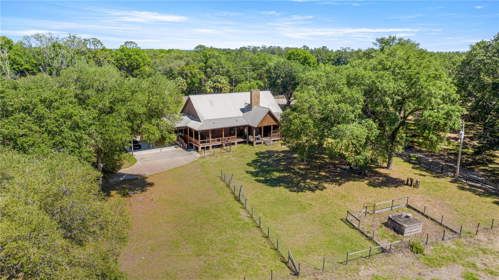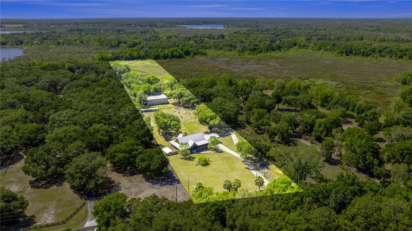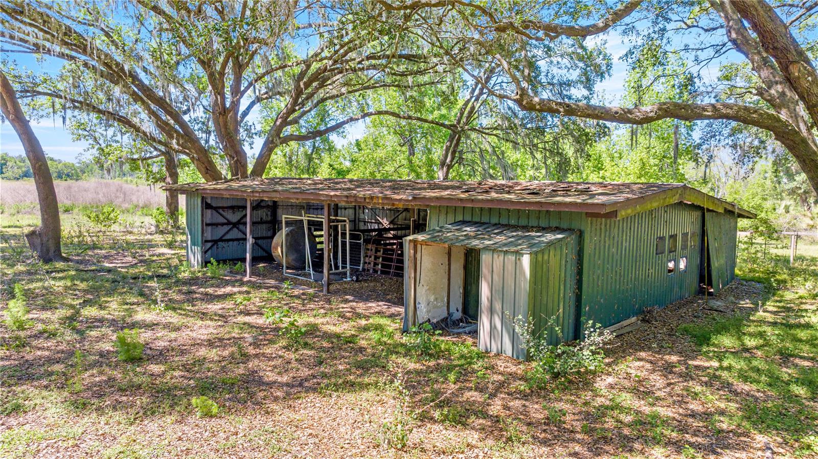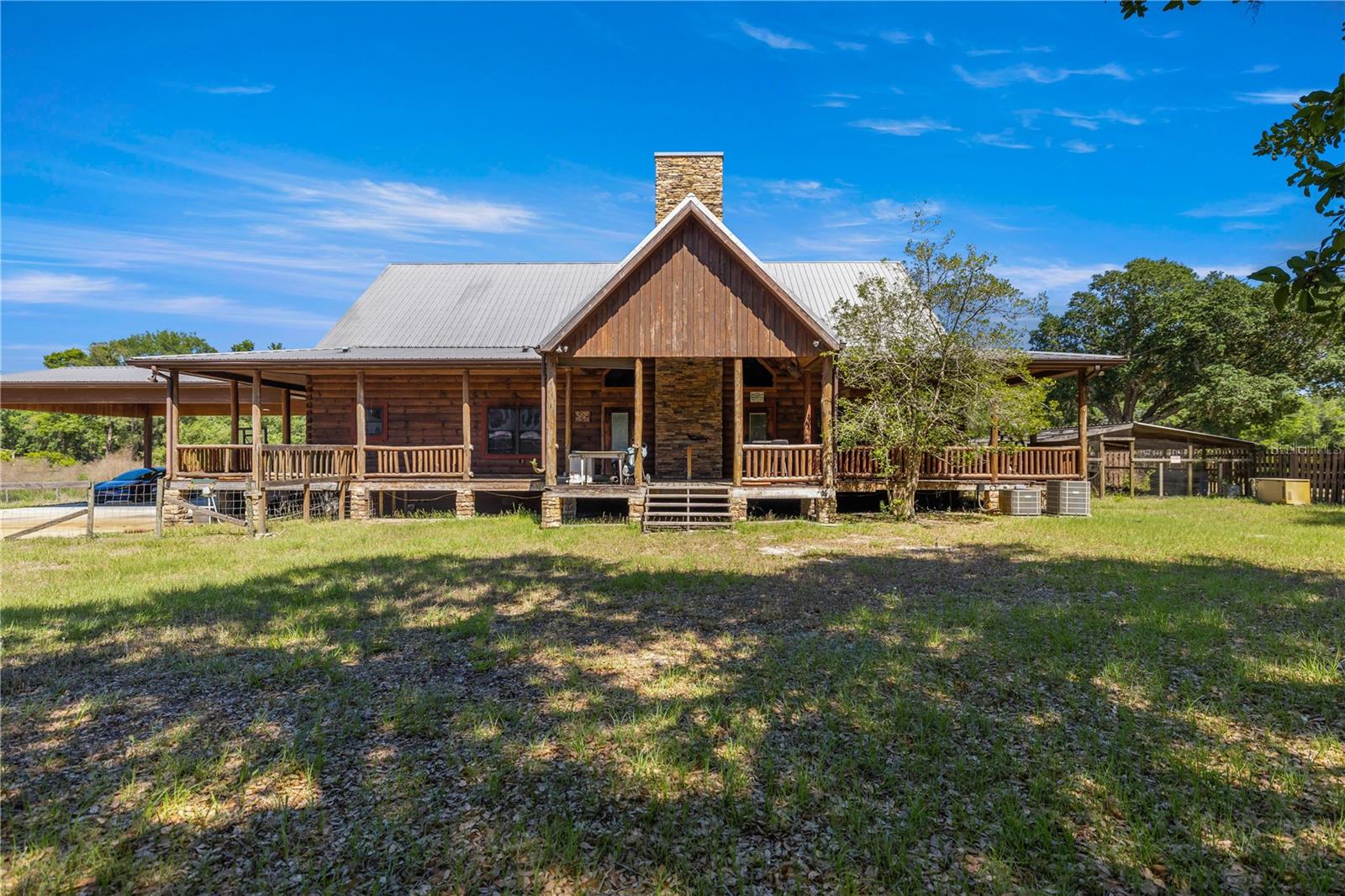 **MORE PICTURES COMING SOON** Incredible opportunity near Lake Bryant!! This sprawling 15+ acre property hosts a 3358 square foot log cabin and a massive 60'x70' METAL BUILDING. The cabin had a stove fire in the kitchen which caused smoke damage in the home and kitchen damage, but the home is very sturdy. The kitchen has been gutted and is ready to be replaced with your dream chef's kitchen. It has a 1900 square foot wrap around porch for those gorgeous Florida nights. The metal building has a 2 bedroom apartment and 2 full baths as well as a massive area for a shop, a garage or whatever you can dream up. It has six stall horse barn, a pig pen, a goat pen and a chicken coop. The property also backs up to the canal that leads to Lake Bryant. Property can be subdivided into 2 lots. Don't miss this amazing opportunity!!