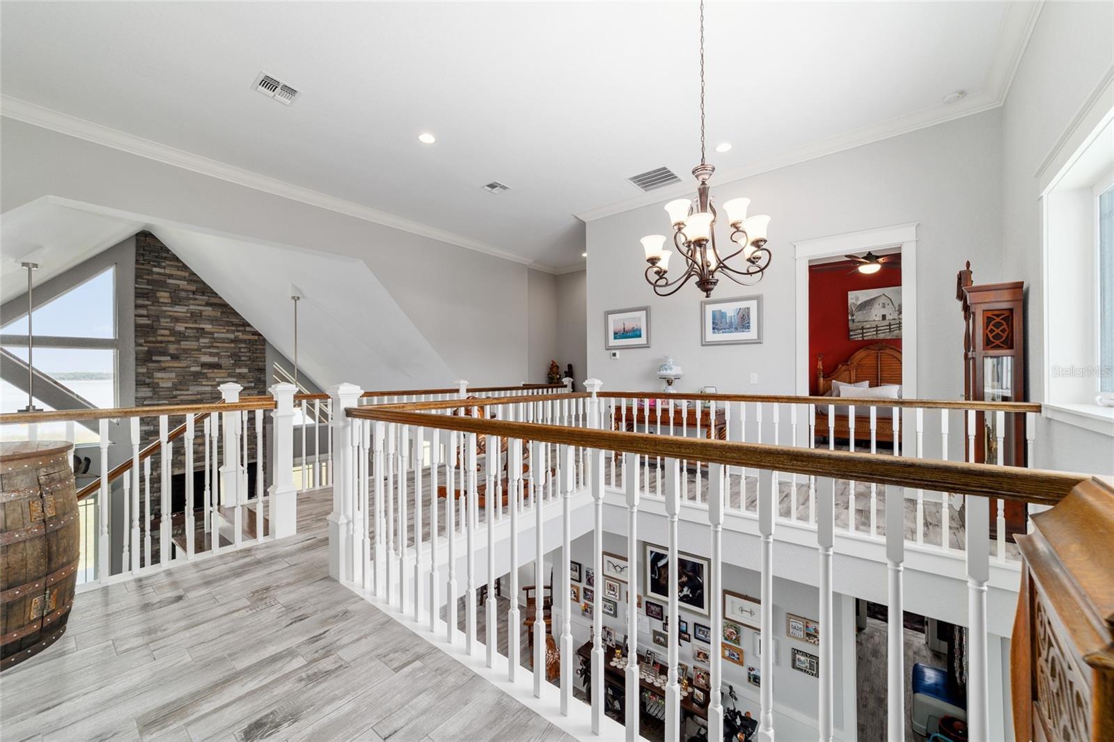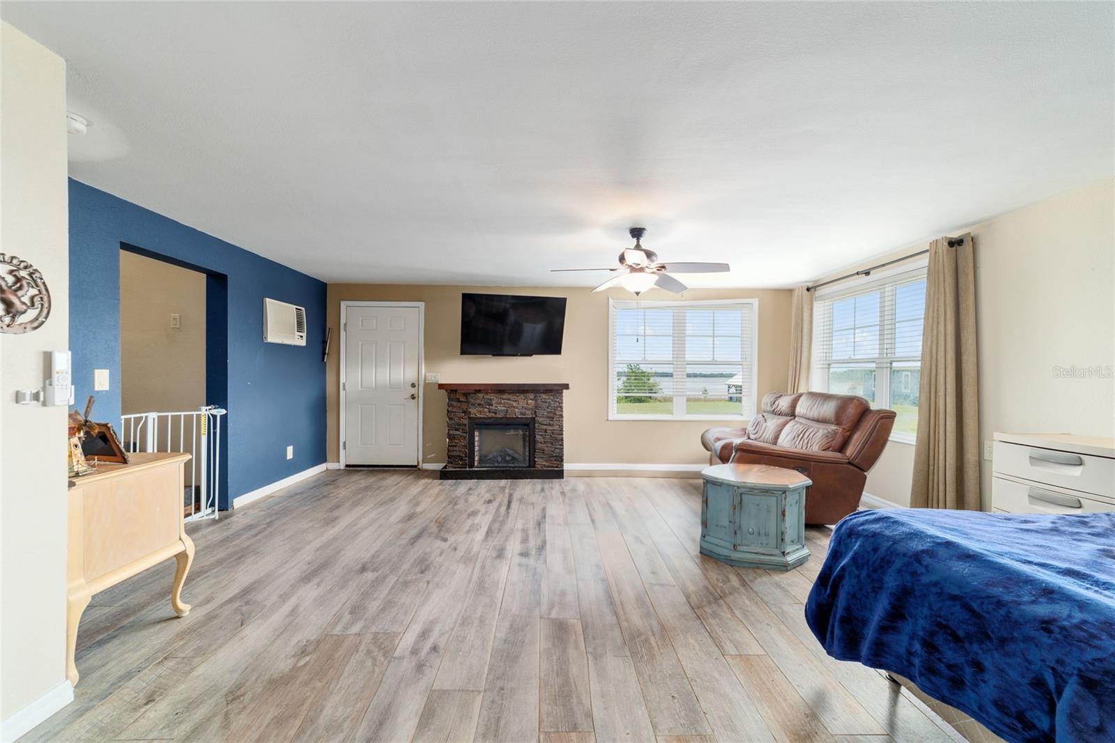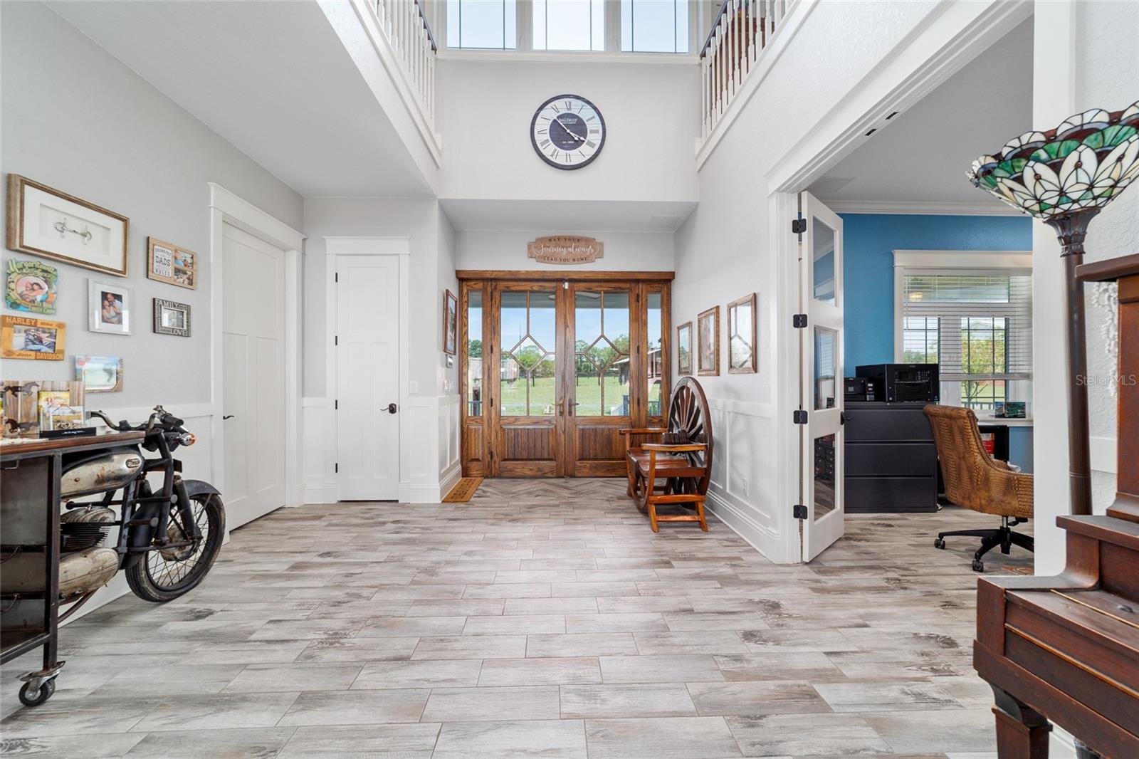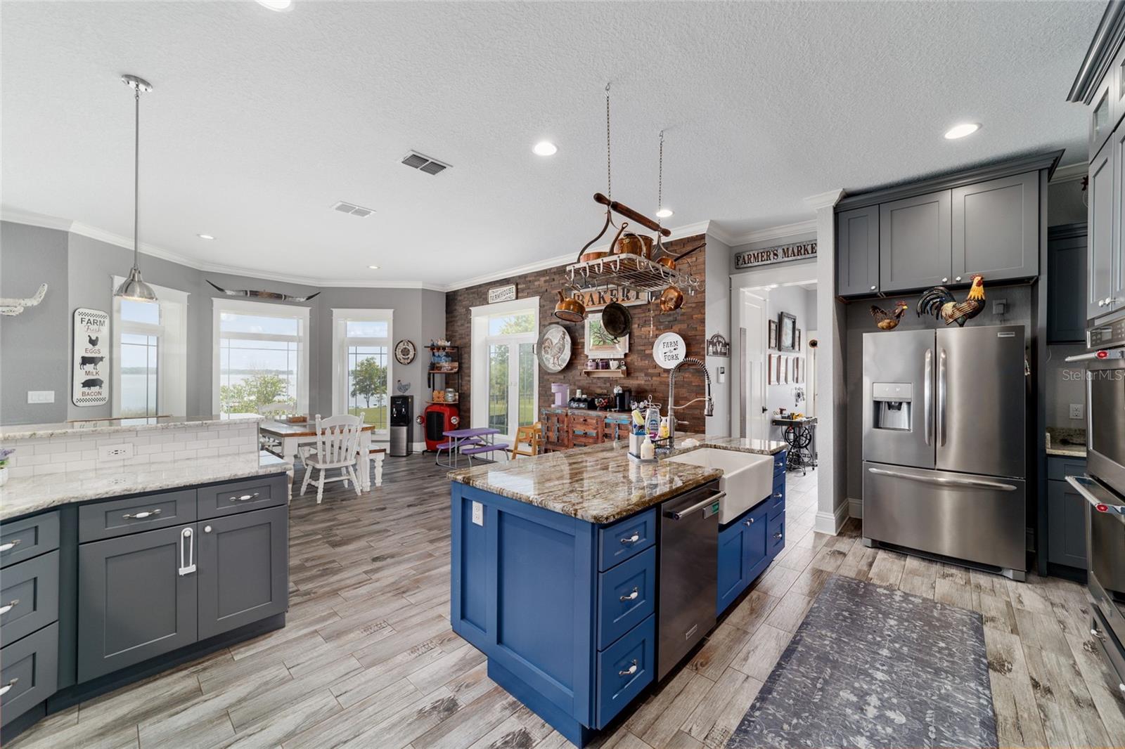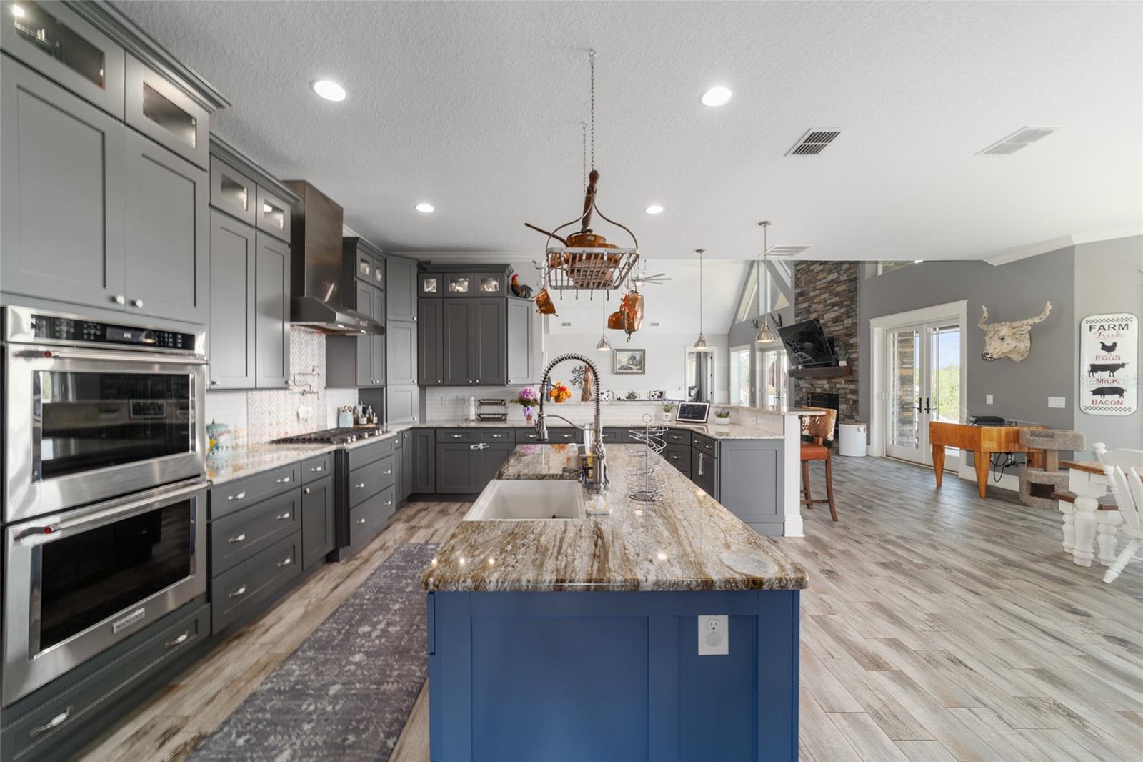 Welcome to a rare opportunity to enjoy the best of both worlds—lakefront living and equestrian comfort—all on one remarkable 8.71-acre property. Tucked beneath a canopy of oaks, this gated estate is located on the shores of Lake Bryant, one of Central Florida’s most sought-after lakes. With over 5,500 square feet of living space in the main home, a detached two-story guest apartment, multiple garages, barns, and an outdoor entertaining cabana, this property offers space, serenity, and versatility unlike anything else in Ocklawaha. From the moment you enter through the electric iron gates and travel the winding asphalt drive, you’ll feel the peaceful seclusion this estate offers. The main home is country-style charm blended with thoughtful upgrades, designed for both family life and entertaining. Downstairs, the expansive master suite features a massive walk-in closet and a spa-inspired bathroom with a clawfoot tub, walk-through tiled shower, and double vanities. An office with French doors and custom built-ins provides the perfect work-from-home space, while the laundry room impresses with its built-in Murphy bed, utility sink, and extra storage. A separate storage room is also attached for added convenience. The heart of the home is the stunning kitchen, where warm cabinetry and abundant counter space are complemented by an island with a ceramic double farmhouse sink, gas cooktop, double ovens, and bar seating—perfect for morning coffee. A huge walk-in pantry completes this highly functional space. The dining area, lined with oversized windows, offers breathtaking views of the backyard and sparkling lake beyond. Up the staircase, a spacious loft overlooks the living room and entryway. One side of the upstairs hosts a bedroom with an oversized bathroom and walk-in closet. The other side features a bedroom with a full bath and an attached game room, offering flexible space for guests. Wood-look tile runs throughout the home, blending rustic elegance with low-maintenance durability. Outdoor living is just as impressive. The backyard includes a covered cabana with a hot tub, granite outdoor kitchen, gas grill, TV, dining area, and wood-burning fireplace—an entertainer’s dream. Just beyond, the private sandy beach and dock offer easy access to Lake Bryant, where you can fish, water ski, and tube. The dock features a charming gazebo and a covered sitting area with a swing that gazes out across the lake. For horse lovers, the property includes a 2-stall wooden barn with a wash rack, a feed/hay storage building, a 2-stall lean-to in the pasture, a round pen, and a large open pasture. The layout is ideal for personal equestrian use with room to expand. There’s also a detached 2-car garage with a carport, another large equipment shed, and a dream 4-car metal garage with a full-length carport—perfect for a car enthusiast. Attached to the metal building is a 2-story guest apartment featuring two bedrooms, two bathrooms, a full kitchen, living room, and a large upstairs window that overlooks the garage. The apartment even has its own front patio, making it perfect for guests, extended family, or rental income. Just 20 minutes to shopping, restaurants, and services, and under 90 minutes to the beaches of Daytona, this unique property offers a lifestyle of adventure, privacy, and possibility. Whether you're soaking in the hot tub under the stars, riding horses through your pasture, or spending the day on the lake, this estate is truly one-of-a-kind.