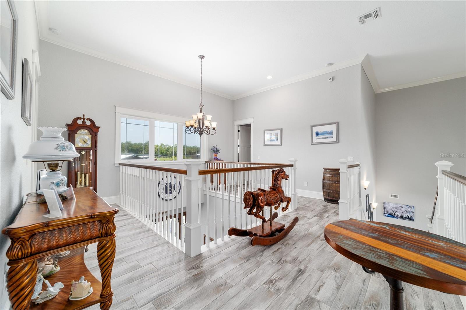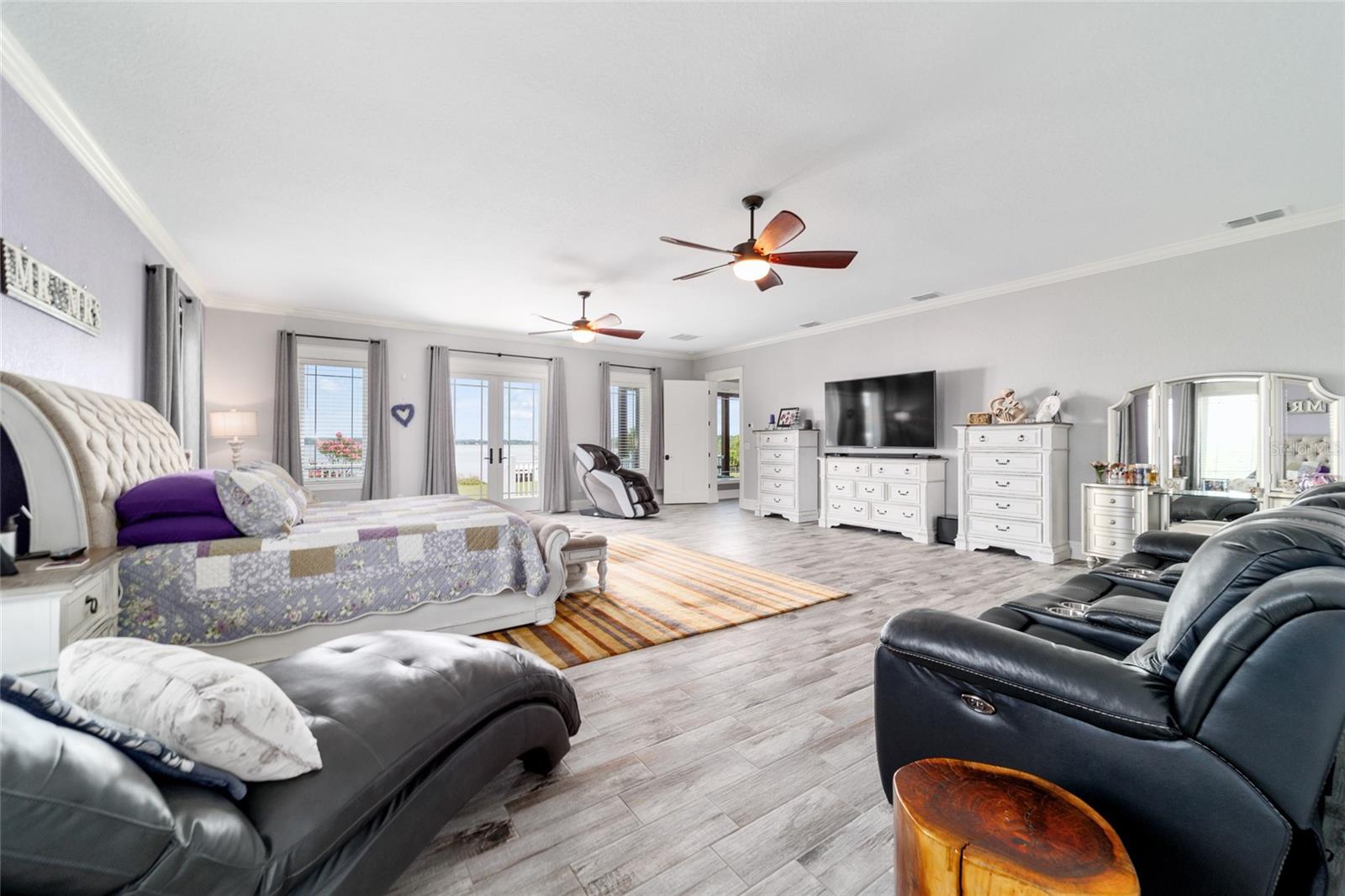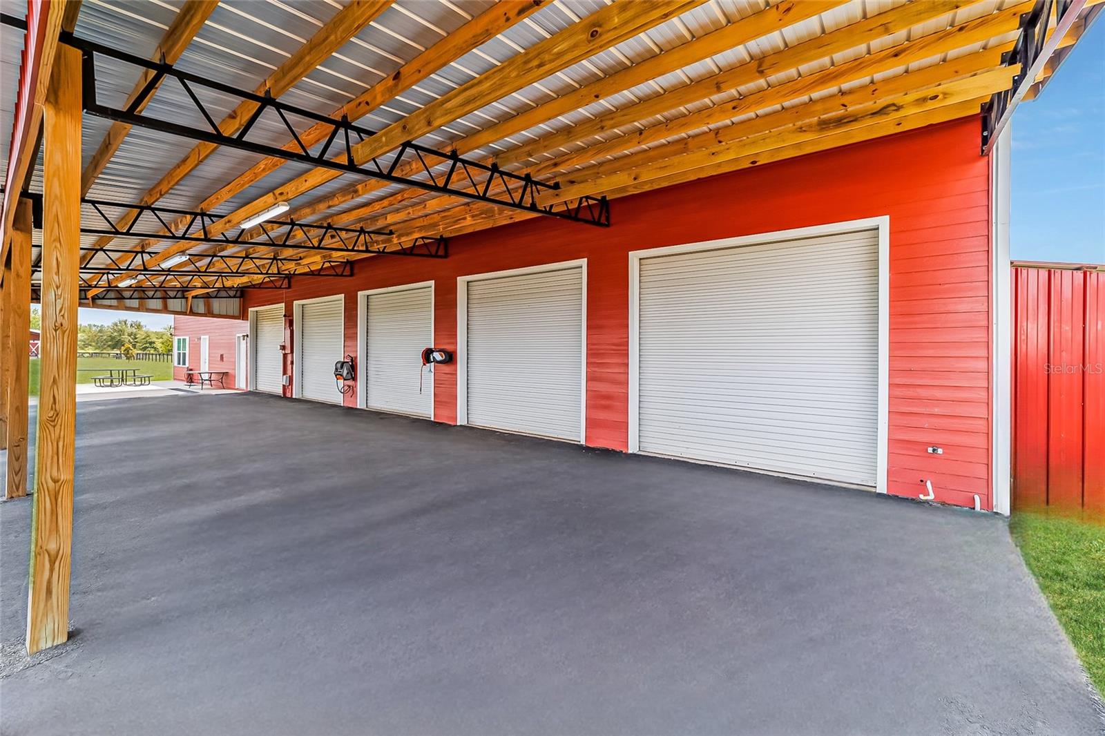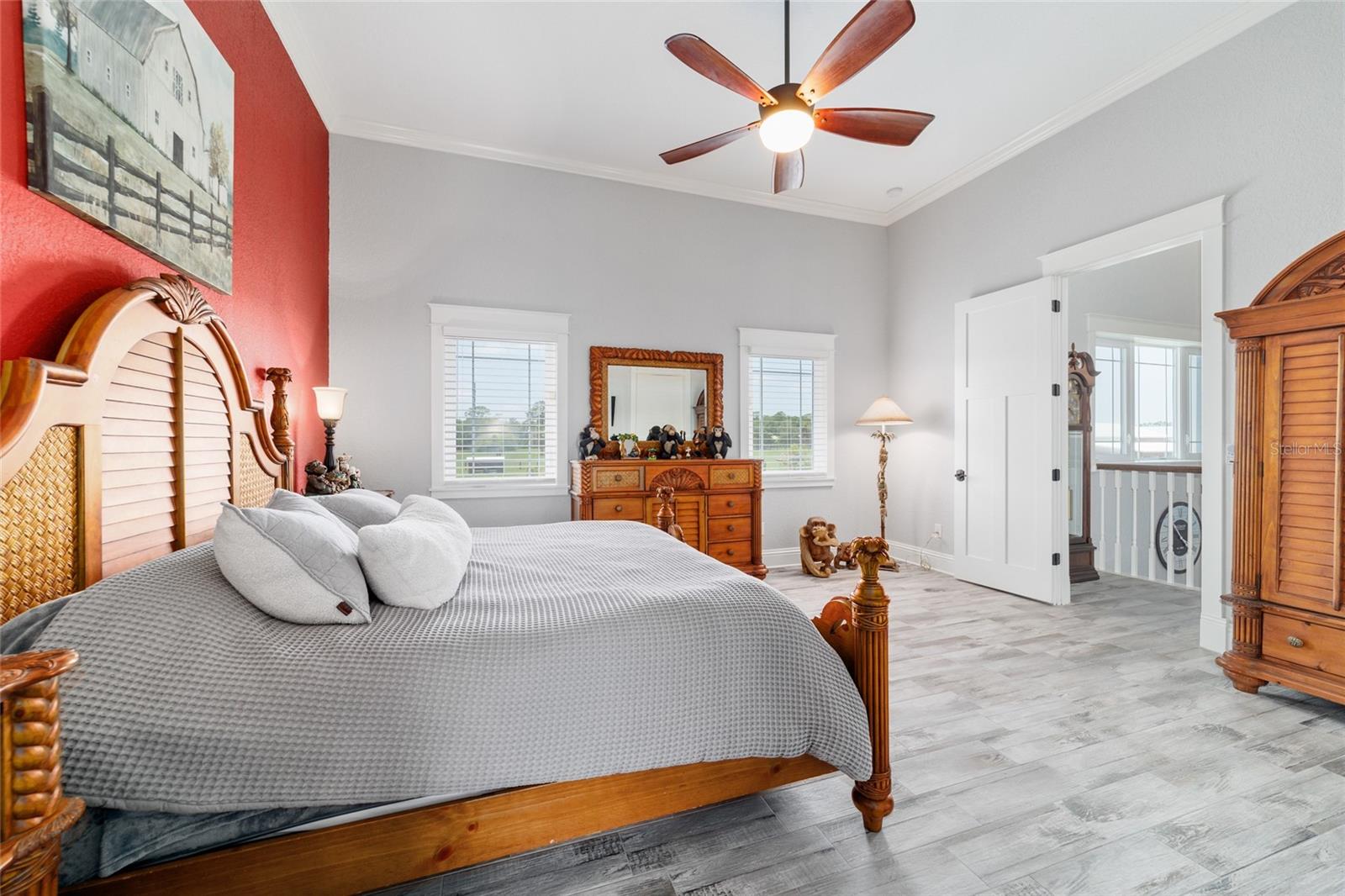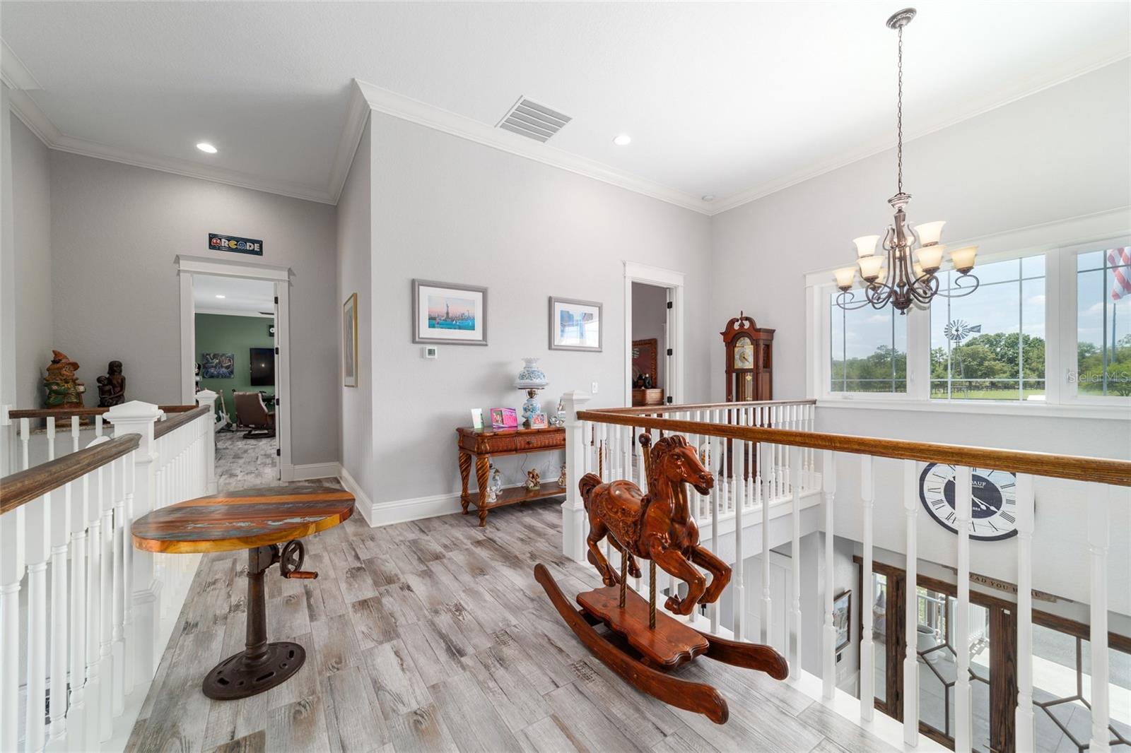 Welcome to a rare opportunity to enjoy the best of both worlds—lakefront living and equestrian comfort—all on one remarkable 8.71-acre property. Tucked beneath a canopy of oaks, this gated estate is located on the shores of Lake Bryant, one of Central Florida’s most sought-after lakes. With over 5,500 square feet of living space in the main home, a detached two-story guest apartment, multiple garages, barns, and an outdoor entertaining cabana, this property offers space, serenity, and versatility unlike anything else in Ocklawaha. From the moment you enter through the electric iron gates and travel the winding asphalt drive, you’ll feel the peaceful seclusion this estate offers. The main home is country-style charm blended with thoughtful upgrades, designed for both family life and entertaining. Downstairs, the expansive master suite features a massive walk-in closet and a spa-inspired bathroom with a clawfoot tub, walk-through tiled shower, and double vanities. An office with French doors and custom built-ins provides the perfect work-from-home space, while the laundry room impresses with its built-in Murphy bed, utility sink, and extra storage. A separate storage room is also attached for added convenience. The heart of the home is the stunning kitchen, where warm cabinetry and abundant counter space are complemented by an island with a ceramic double farmhouse sink, gas cooktop, double ovens, and bar seating—perfect for morning coffee. A huge walk-in pantry completes this highly functional space. The dining area, lined with oversized windows, offers breathtaking views of the backyard and sparkling lake beyond. Up the staircase, a spacious loft overlooks the living room and entryway. One side of the upstairs hosts a bedroom with an oversized bathroom and walk-in closet. The other side features a bedroom with a full bath and an attached game room, offering flexible space for guests. Wood-look tile runs throughout the home, blending rustic elegance with low-maintenance durability. Outdoor living is just as impressive. The backyard includes a covered cabana with a hot tub, granite outdoor kitchen, gas grill, TV, dining area, and wood-burning fireplace—an entertainer’s dream. Just beyond, the private sandy beach and dock offer easy access to Lake Bryant, where you can fish, water ski, and tube. The dock features a charming gazebo and a covered sitting area with a swing that gazes out across the lake. For horse lovers, the property includes a 2-stall wooden barn with a wash rack, a feed/hay storage building, a 2-stall lean-to in the pasture, a round pen, and a large open pasture. The layout is ideal for personal equestrian use with room to expand. There’s also a detached 2-car garage with a carport, another large equipment shed, and a dream 4-car metal garage with a full-length carport—perfect for a car enthusiast. Attached to the metal building is a 2-story guest apartment featuring two bedrooms, two bathrooms, a full kitchen, living room, and a large upstairs window that overlooks the garage. The apartment even has its own front patio, making it perfect for guests, extended family, or rental income. Just 20 minutes to shopping, restaurants, and services, and under 90 minutes to the beaches of Daytona, this unique property offers a lifestyle of adventure, privacy, and possibility. Whether you're soaking in the hot tub under the stars, riding horses through your pasture, or spending the day on the lake, this estate is truly one-of-a-kind.