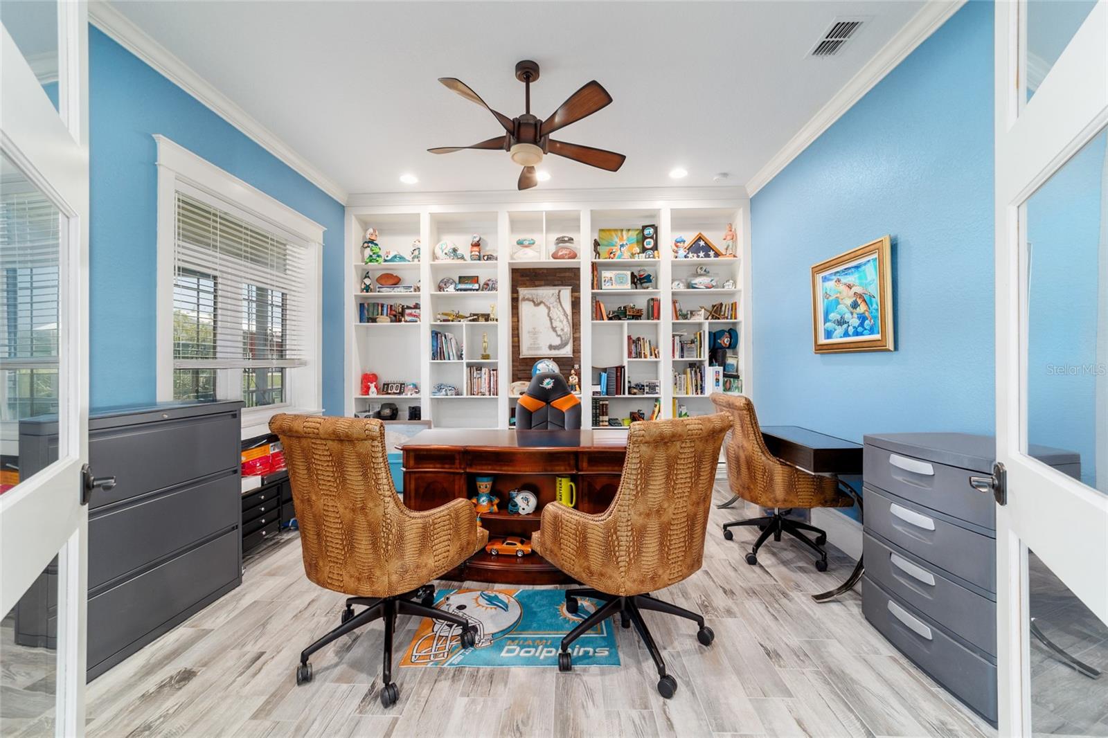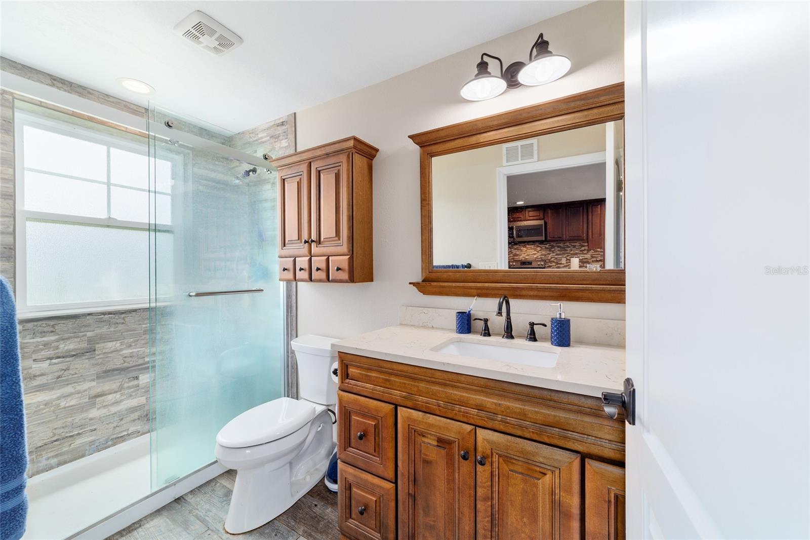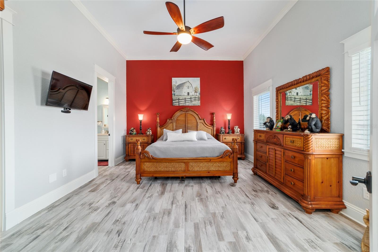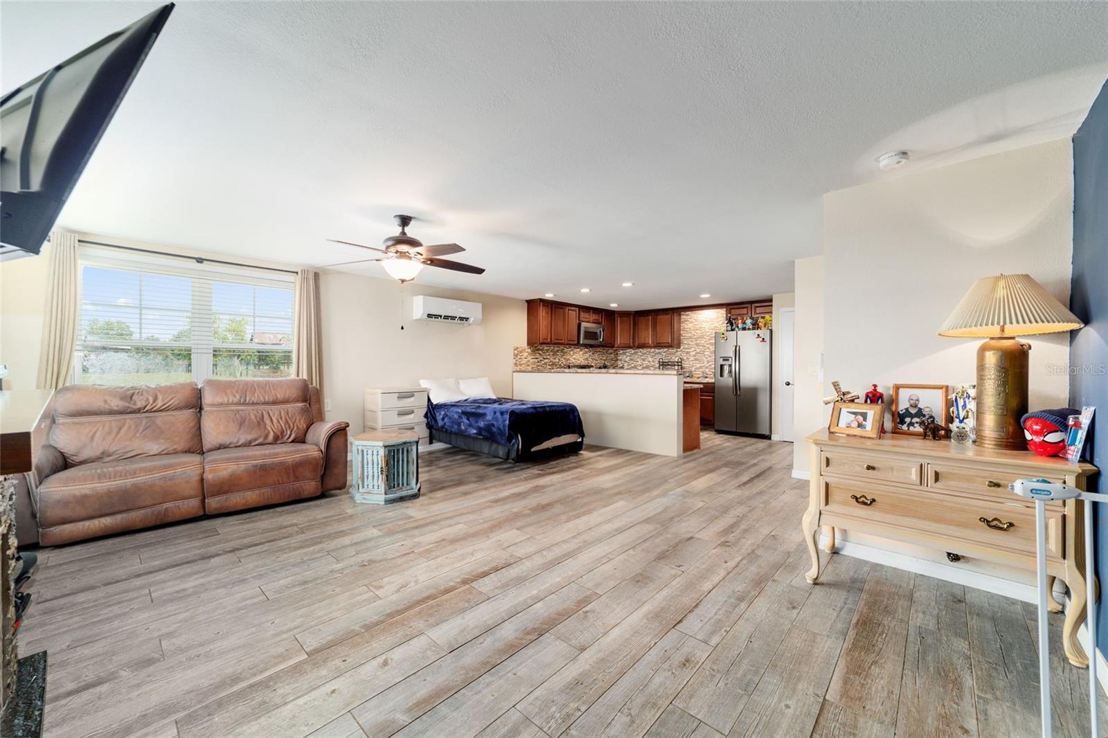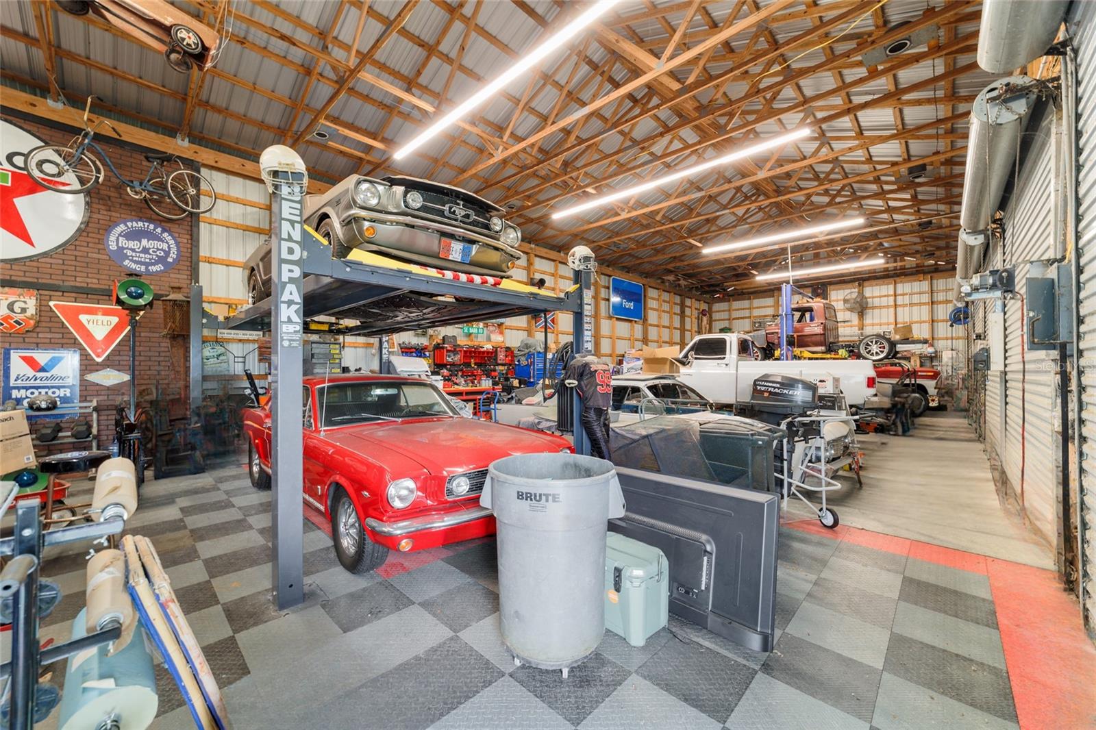 Welcome to a rare opportunity to enjoy the best of both worlds—lakefront living and equestrian comfort—all on one remarkable 8.71-acre property. Tucked beneath a canopy of oaks, this gated estate is located on the shores of Lake Bryant, one of Central Florida’s most sought-after lakes. With over 5,500 square feet of living space in the main home, a detached two-story guest apartment, multiple garages, barns, and an outdoor entertaining cabana, this property offers space, serenity, and versatility unlike anything else in Ocklawaha. From the moment you enter through the electric iron gates and travel the winding asphalt drive, you’ll feel the peaceful seclusion this estate offers. The main home is country-style charm blended with thoughtful upgrades, designed for both family life and entertaining. Downstairs, the expansive master suite features a massive walk-in closet and a spa-inspired bathroom with a clawfoot tub, walk-through tiled shower, and double vanities. An office with French doors and custom built-ins provides the perfect work-from-home space, while the laundry room impresses with its built-in Murphy bed, utility sink, and extra storage. A separate storage room is also attached for added convenience. The heart of the home is the stunning kitchen, where warm cabinetry and abundant counter space are complemented by an island with a ceramic double farmhouse sink, gas cooktop, double ovens, and bar seating—perfect for morning coffee. A huge walk-in pantry completes this highly functional space. The dining area, lined with oversized windows, offers breathtaking views of the backyard and sparkling lake beyond. Up the staircase, a spacious loft overlooks the living room and entryway. One side of the upstairs hosts a bedroom with an oversized bathroom and walk-in closet. The other side features a bedroom with a full bath and an attached game room, offering flexible space for guests. Wood-look tile runs throughout the home, blending rustic elegance with low-maintenance durability. Outdoor living is just as impressive. The backyard includes a covered cabana with a hot tub, granite outdoor kitchen, gas grill, TV, dining area, and wood-burning fireplace—an entertainer’s dream. Just beyond, the private sandy beach and dock offer easy access to Lake Bryant, where you can fish, water ski, and tube. The dock features a charming gazebo and a covered sitting area with a swing that gazes out across the lake. For horse lovers, the property includes a 2-stall wooden barn with a wash rack, a feed/hay storage building, a 2-stall lean-to in the pasture, a round pen, and a large open pasture. The layout is ideal for personal equestrian use with room to expand. There’s also a detached 2-car garage with a carport, another large equipment shed, and a dream 4-car metal garage with a full-length carport—perfect for a car enthusiast. Attached to the metal building is a 2-story guest apartment featuring two bedrooms, two bathrooms, a full kitchen, living room, and a large upstairs window that overlooks the garage. The apartment even has its own front patio, making it perfect for guests, extended family, or rental income. Just 20 minutes to shopping, restaurants, and services, and under 90 minutes to the beaches of Daytona, this unique property offers a lifestyle of adventure, privacy, and possibility. Whether you're soaking in the hot tub under the stars, riding horses through your pasture, or spending the day on the lake, this estate is truly one-of-a-kind.
